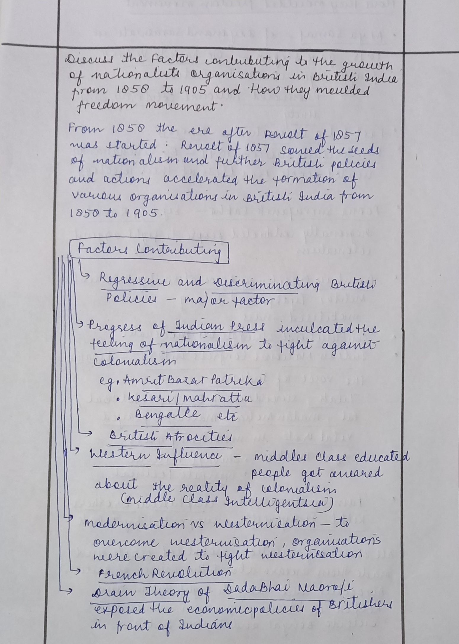 - Write about the factors contributing to the growth of nationalist organizations in British India from 1858 to 1905.