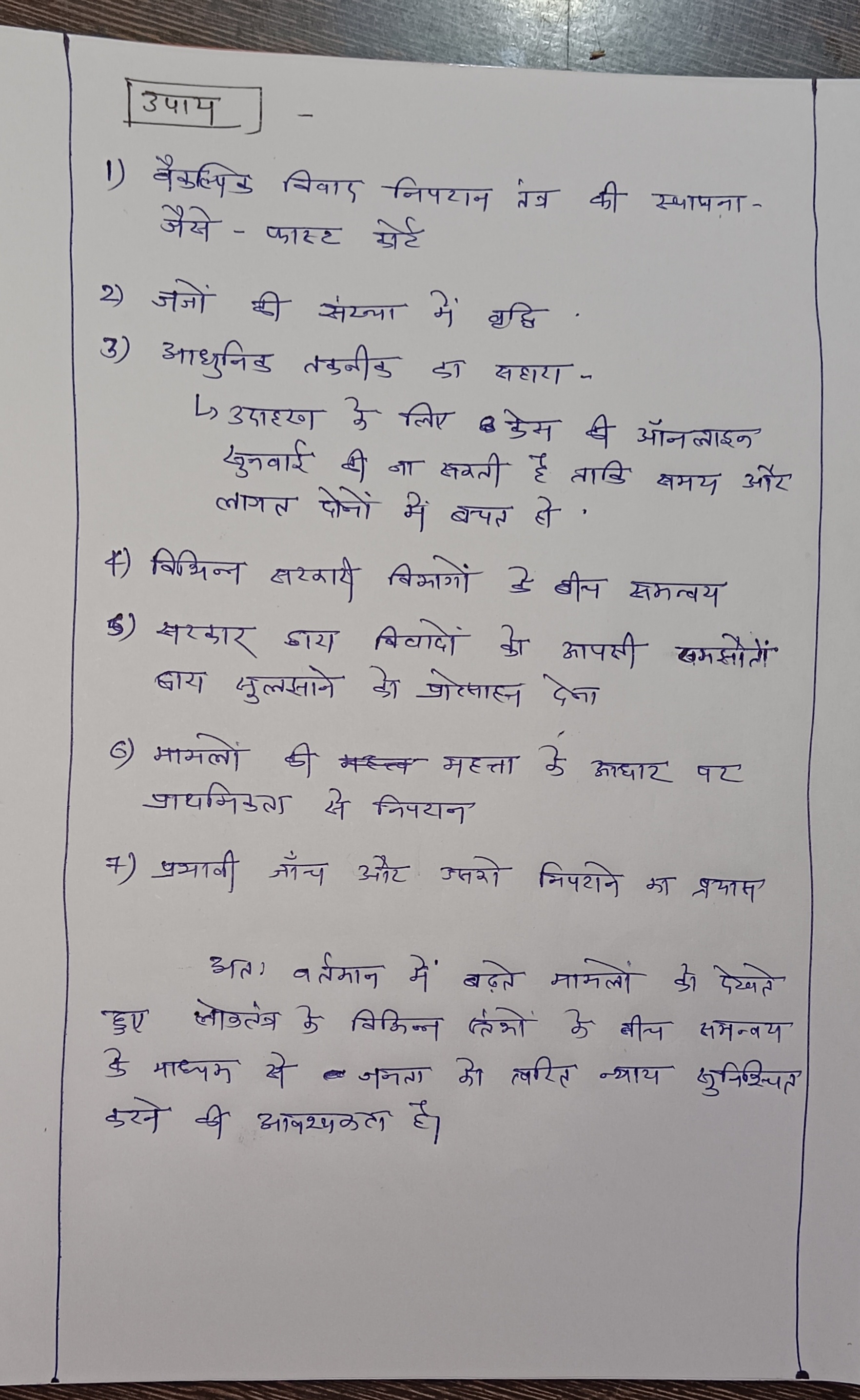 - न्यायिक बुनियादी ढांचे को मजबूत करना: न्यायालयों की संख्या बढ़ाना और सुनिश्चित करना कि वे अच्छी तरह से सुसज्जित हों, जिससे अधिक मामलों को संभालने की उनकी क्षमता बढ़ जाएगी।