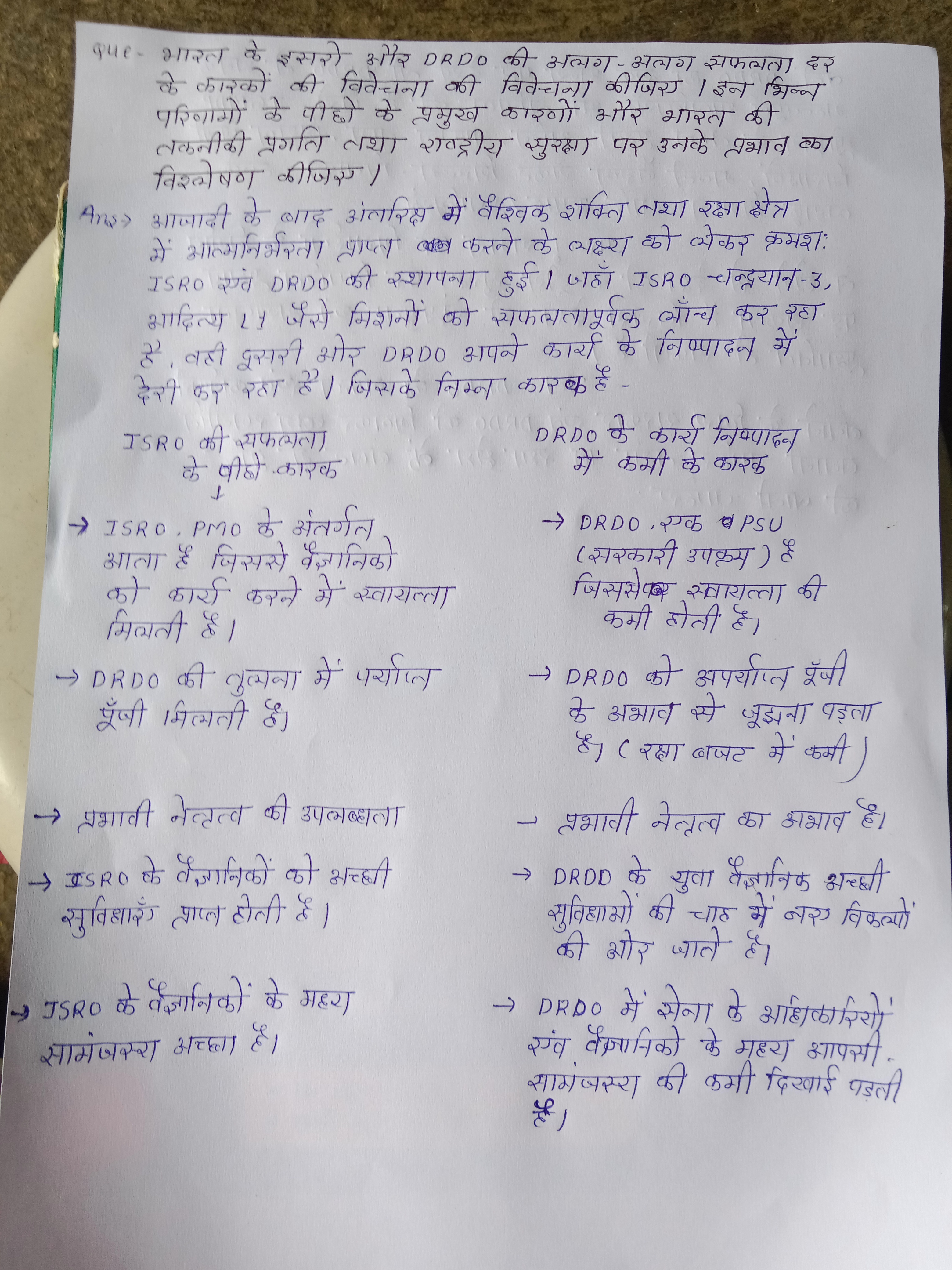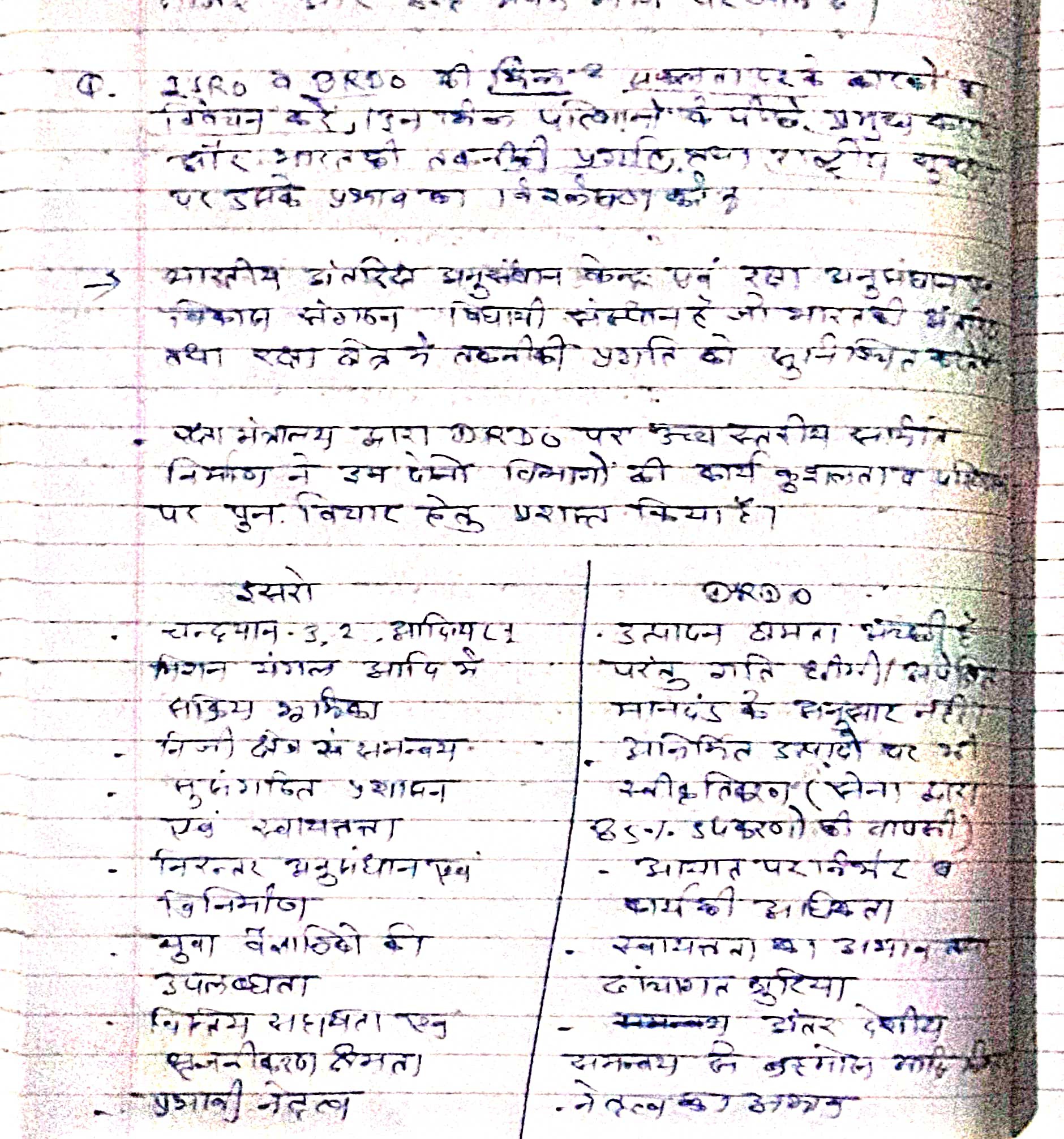 - डीआरडीओ के विशिष्ट रक्षा अधिदेश पर ध्यान केंद्रित करें और बताएं कि यह कैसे इसरो से अलग है।
