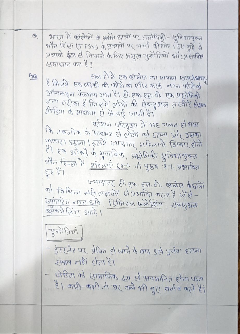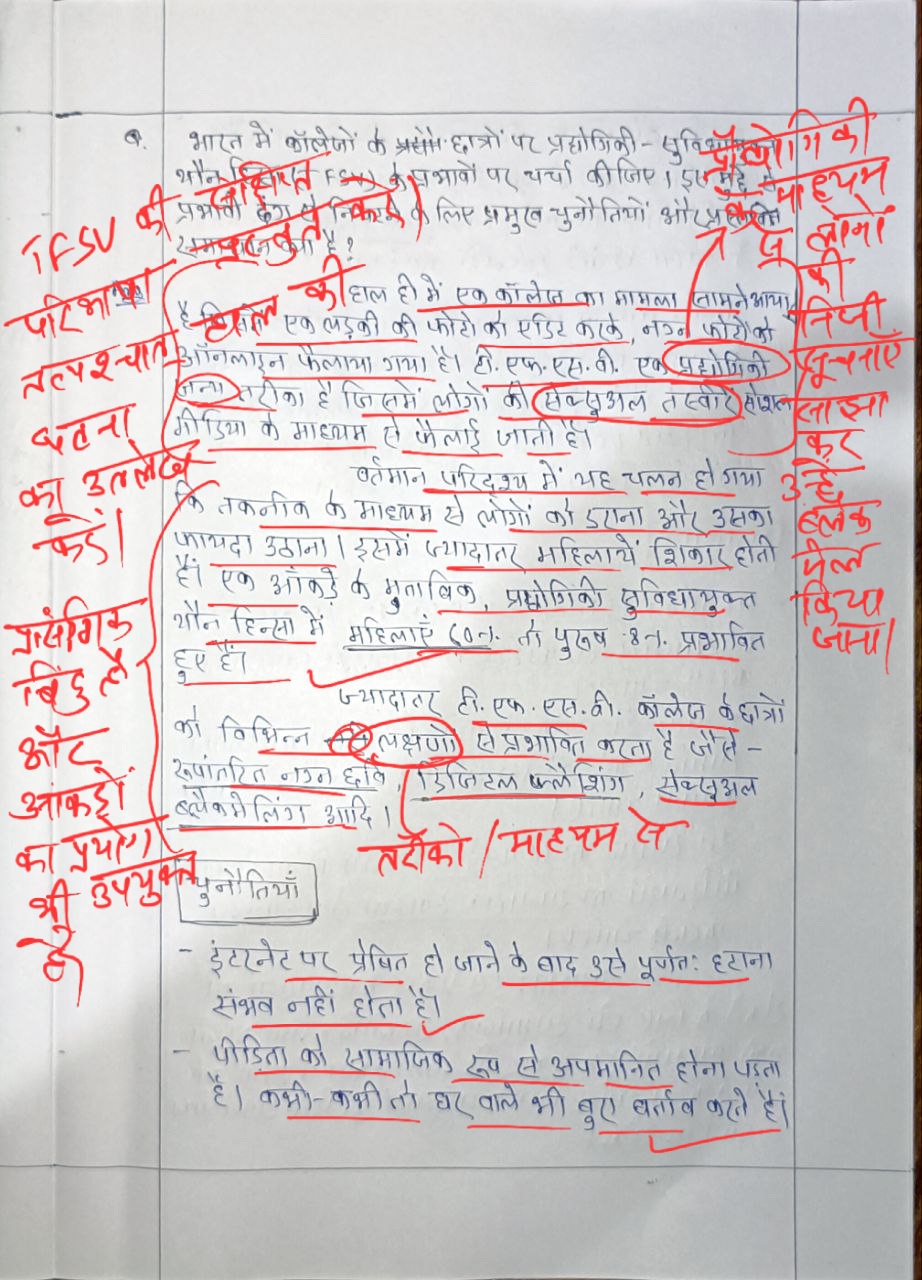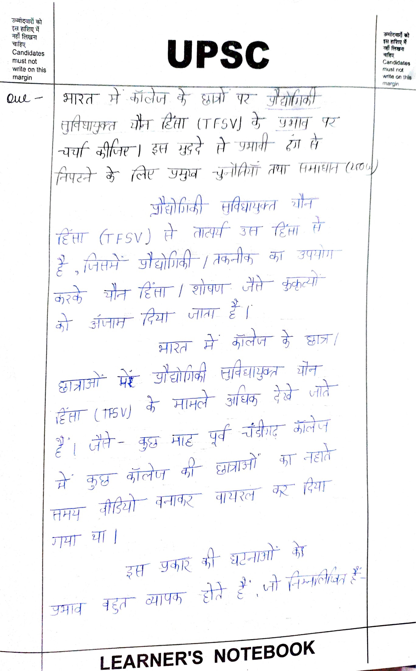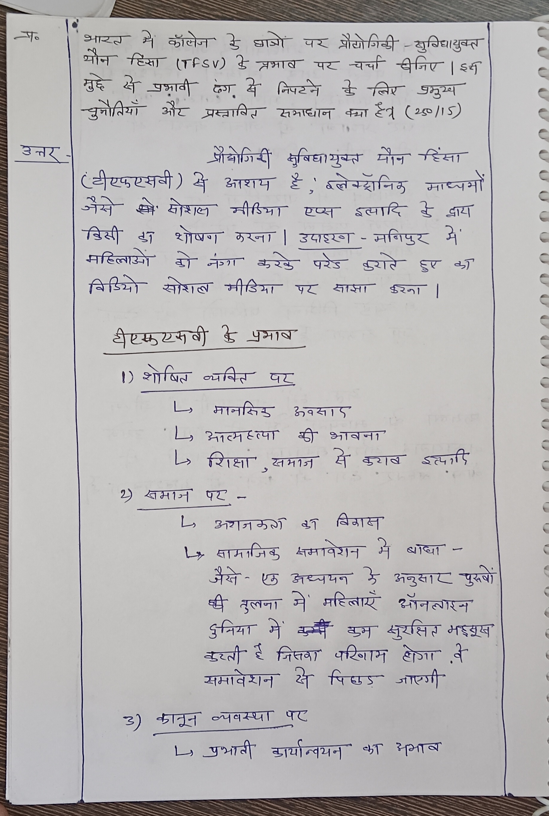 - परिचय: प्रौद्योगिकी-सुविधायुक्त यौन हिंसा (Technology-Facilitated Sexual Violence-TFSV) की अवधारणा का परिचय दें। साथ ही भारतीय उच्च शिक्षण संस्थानों में युवा महिलाओं के बीच इसकी व्यापकता पर प्रकाश डालिए।