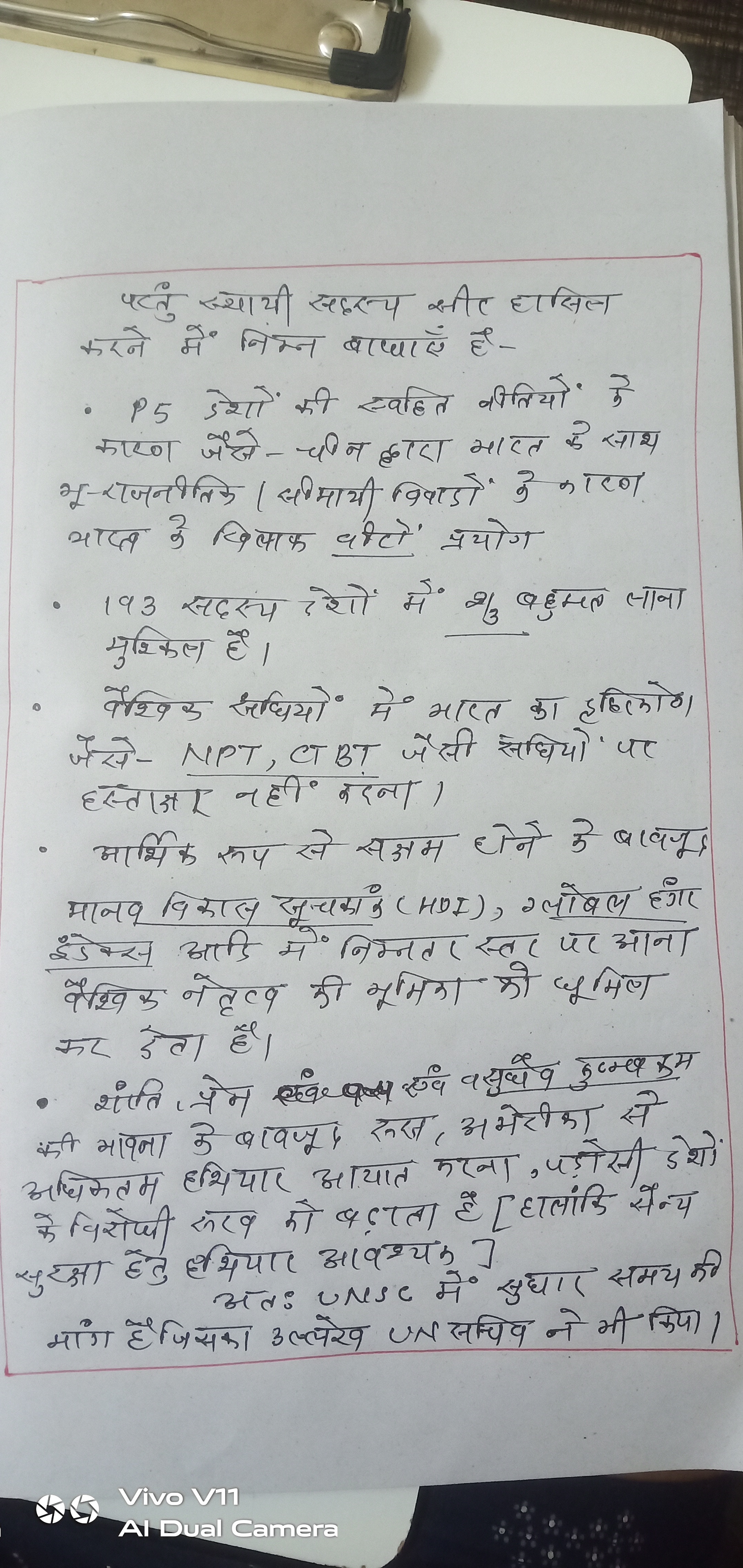 - चीन के विरोध, कुछ अंतरराष्ट्रीय संधियों पर भारत की अनिच्छा और यूएनएससी में वीटो शक्ति का विवादास्पद मुद्दा सहित भारत के सामने आने वाली प्रमुख बाधाओं पर विस्तार से प्रकाश डालें।