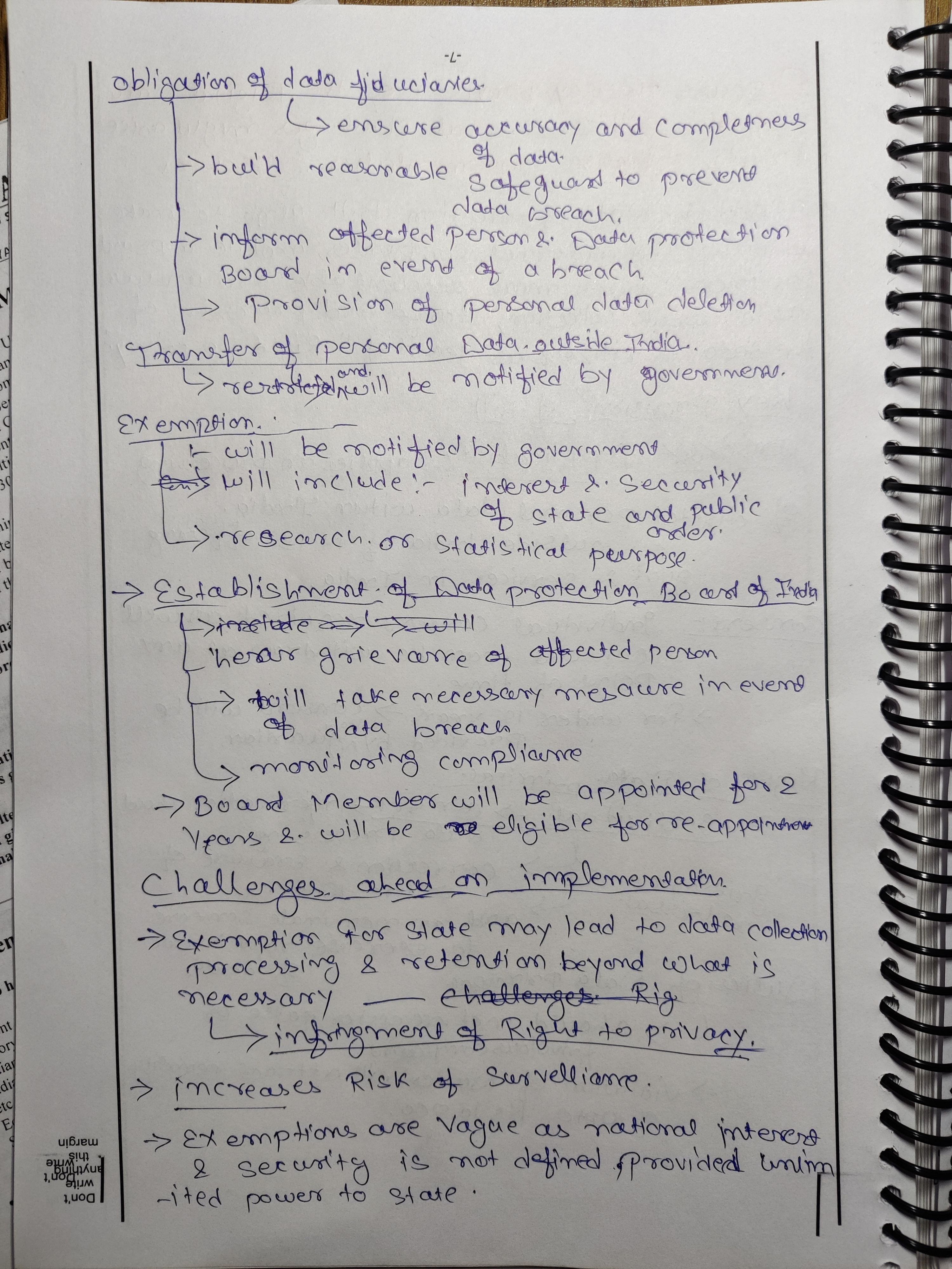 - Obligations of Data Fiduciary: