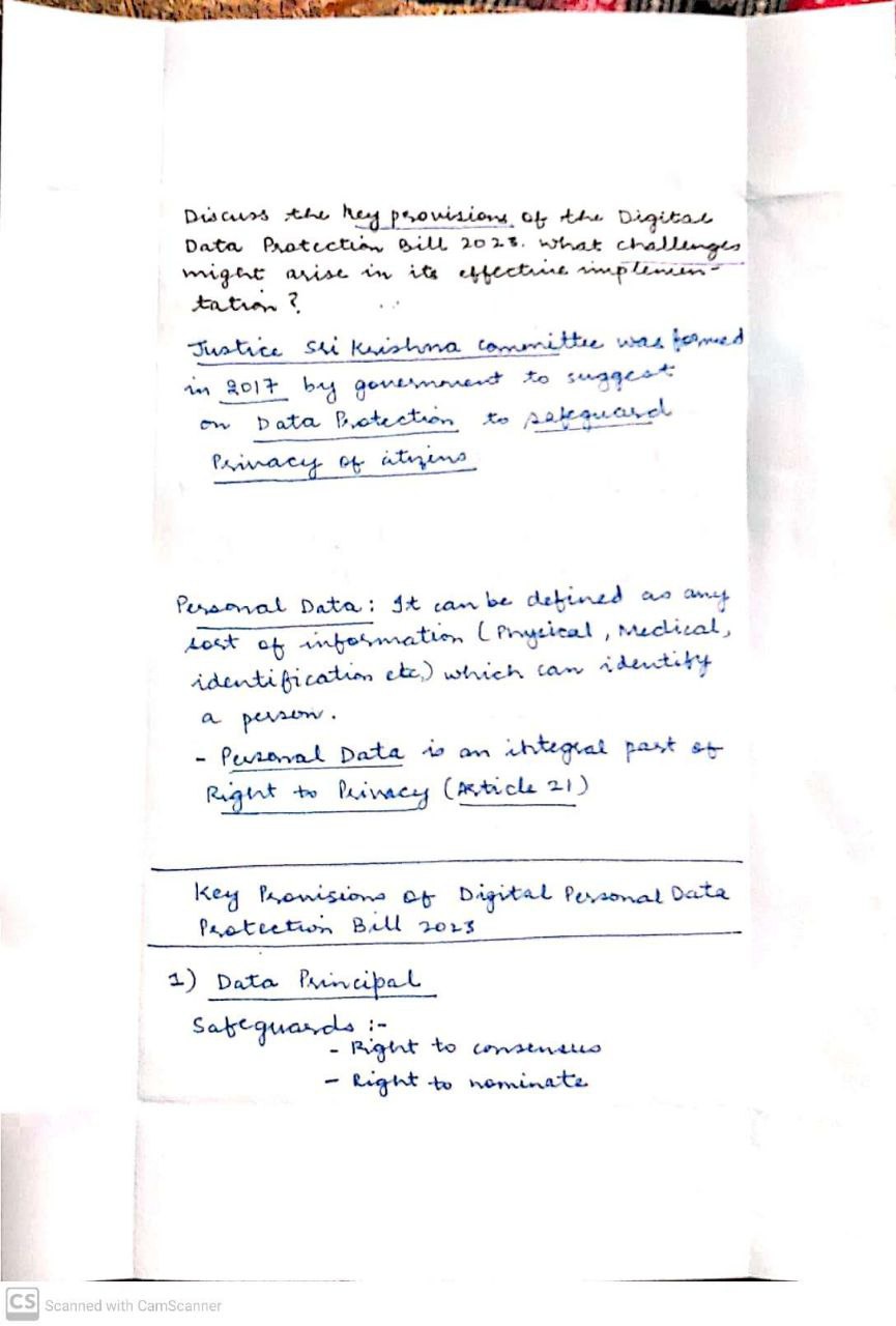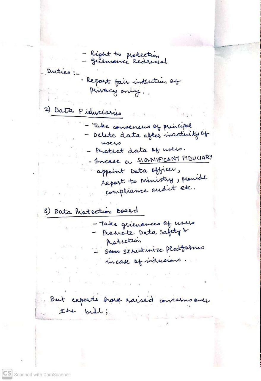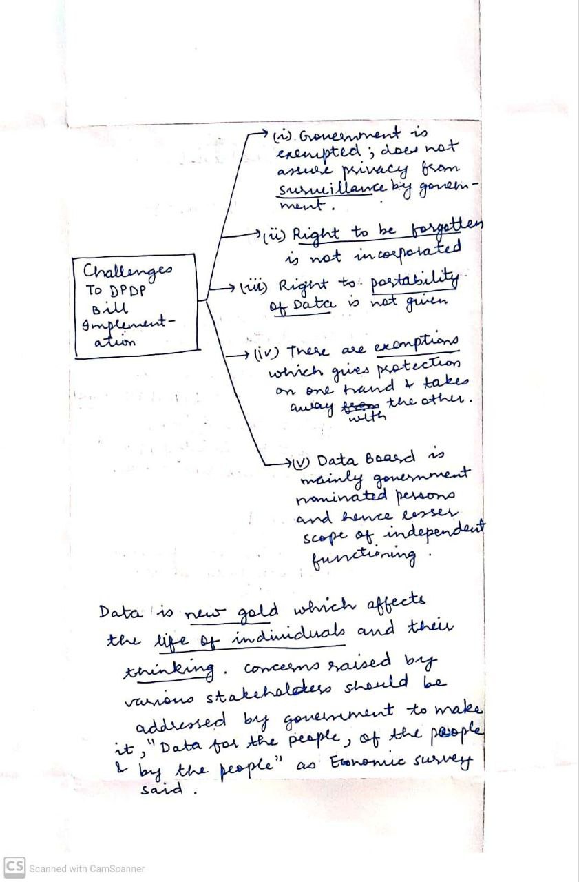 - Specifically, the potential erosion of public interest safeguards when sharing personal information of government officials and the shift from compensation to ex-gratia payments can complicate redressal for data breaches.