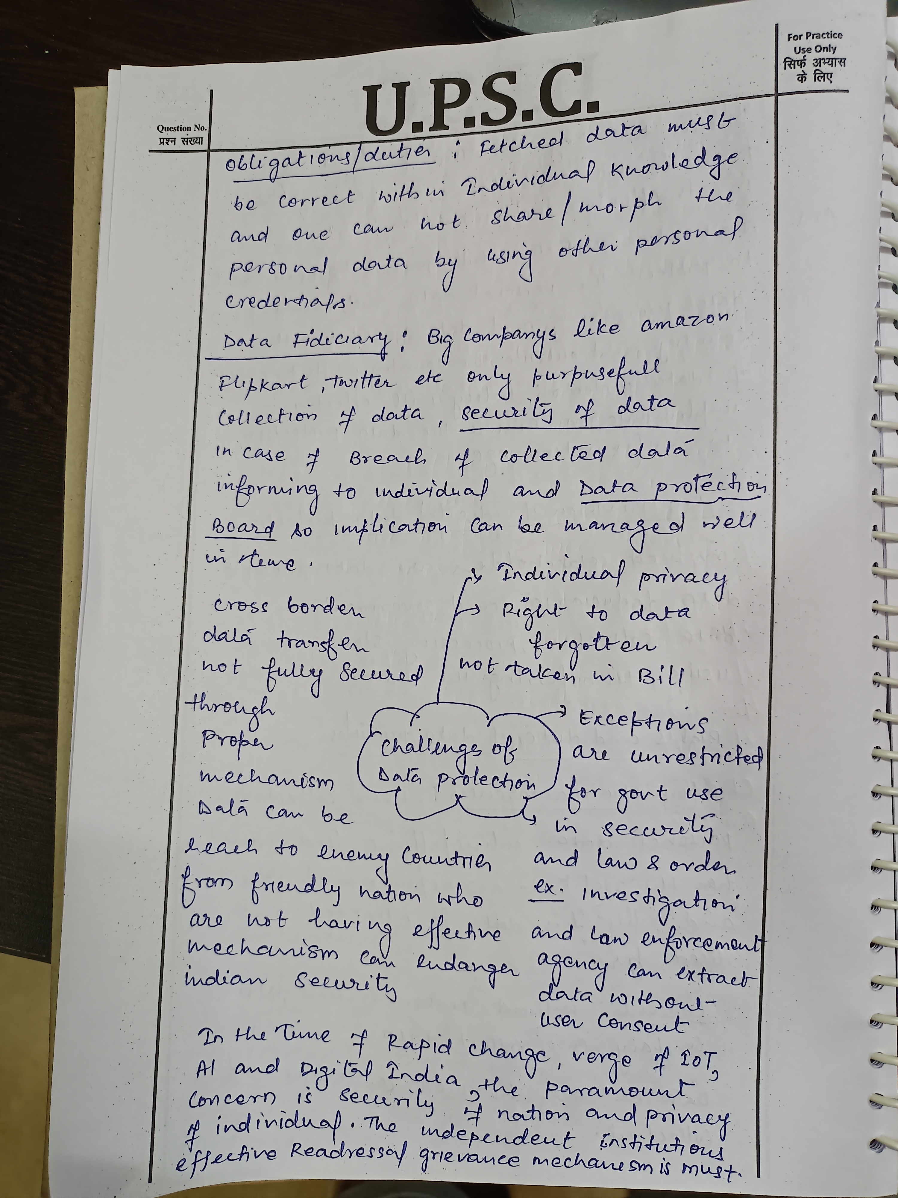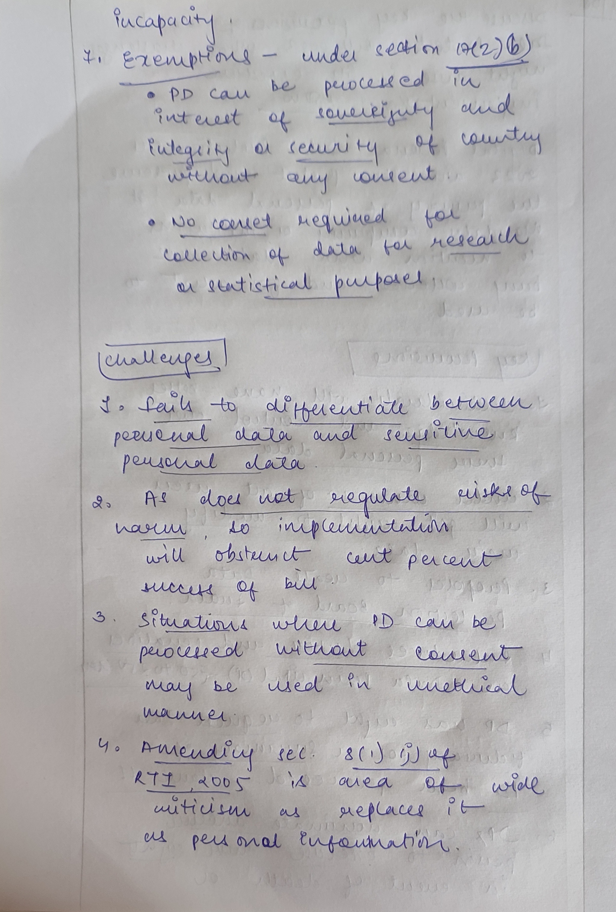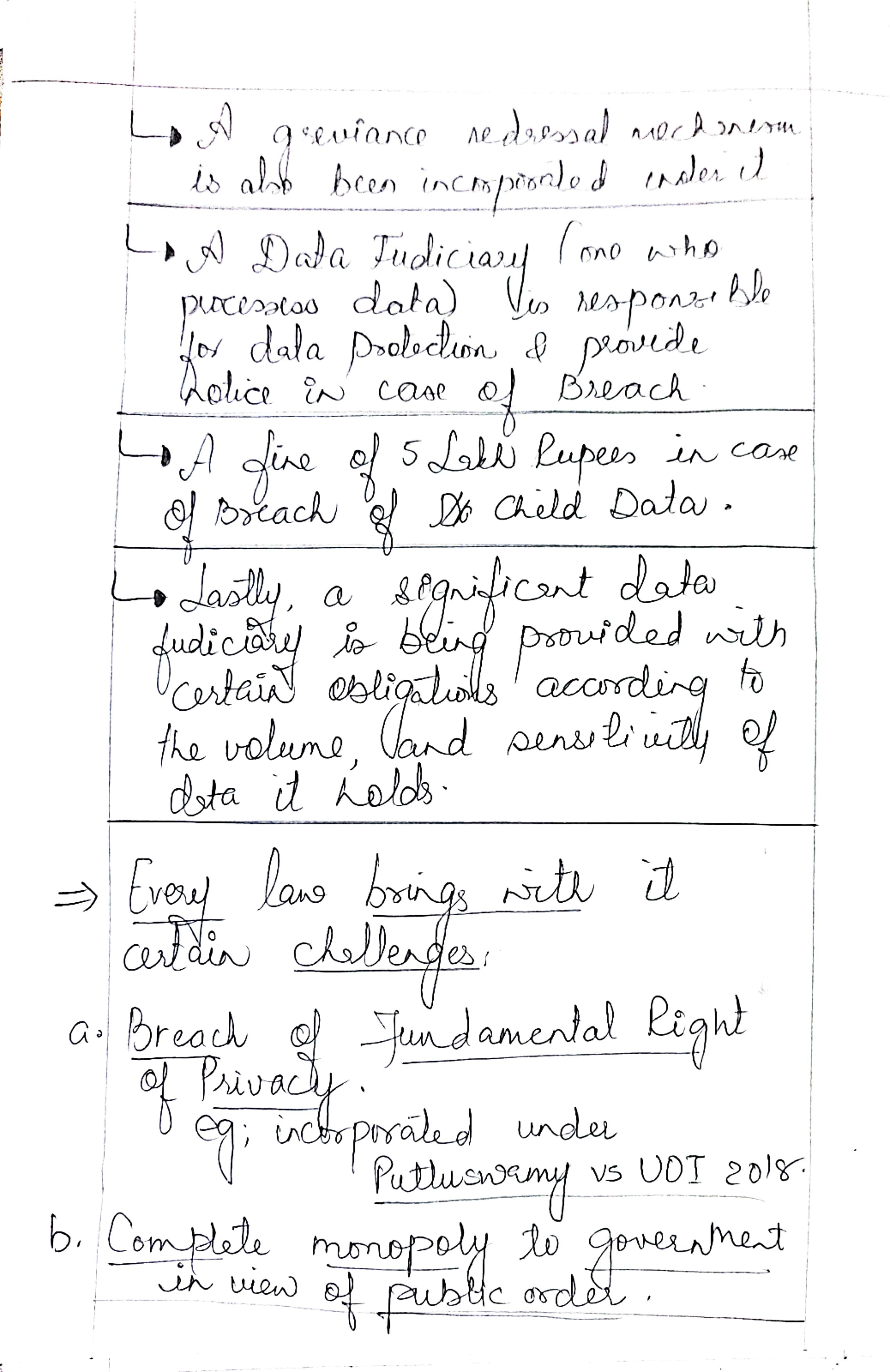 - Specifically, the potential erosion of public interest safeguards when sharing personal information of government officials and the shift from compensation to ex-gratia payments can complicate redressal for data breaches.