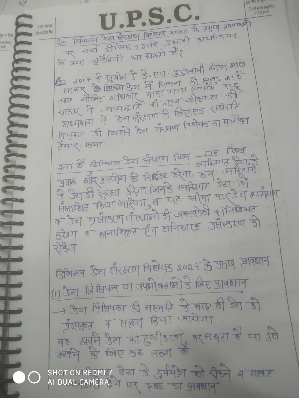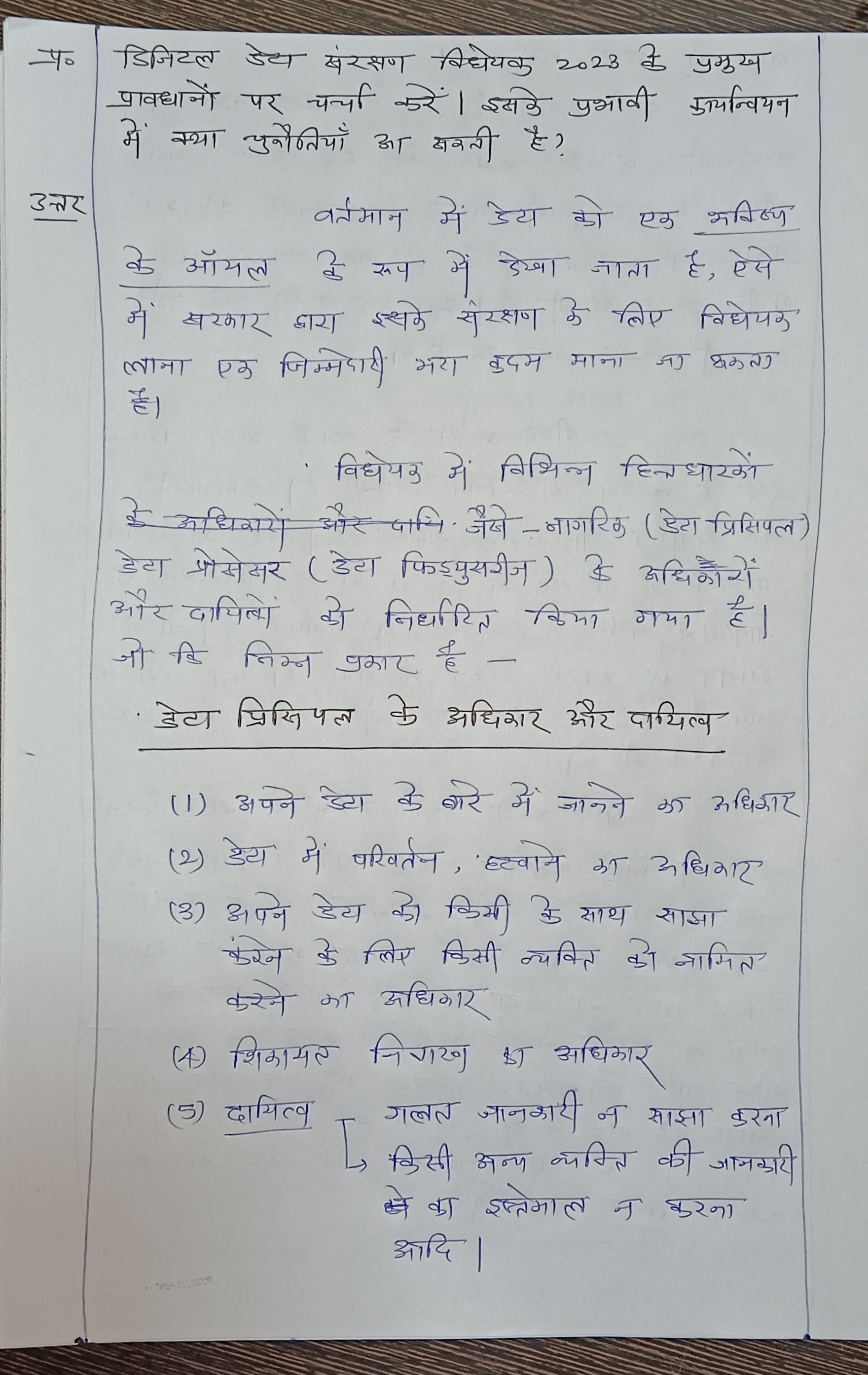 - परिचय: बढ़ते डिजिटल इंटरैक्शन और व्यक्तिगत डेटा की सुरक्षा की आवश्यकता एवं महत्व पर जोर देते हुए, डिजिटल व्यक्तिगत डेटा संरक्षण विधेयक, 2023 को संक्षेप में बताइये।