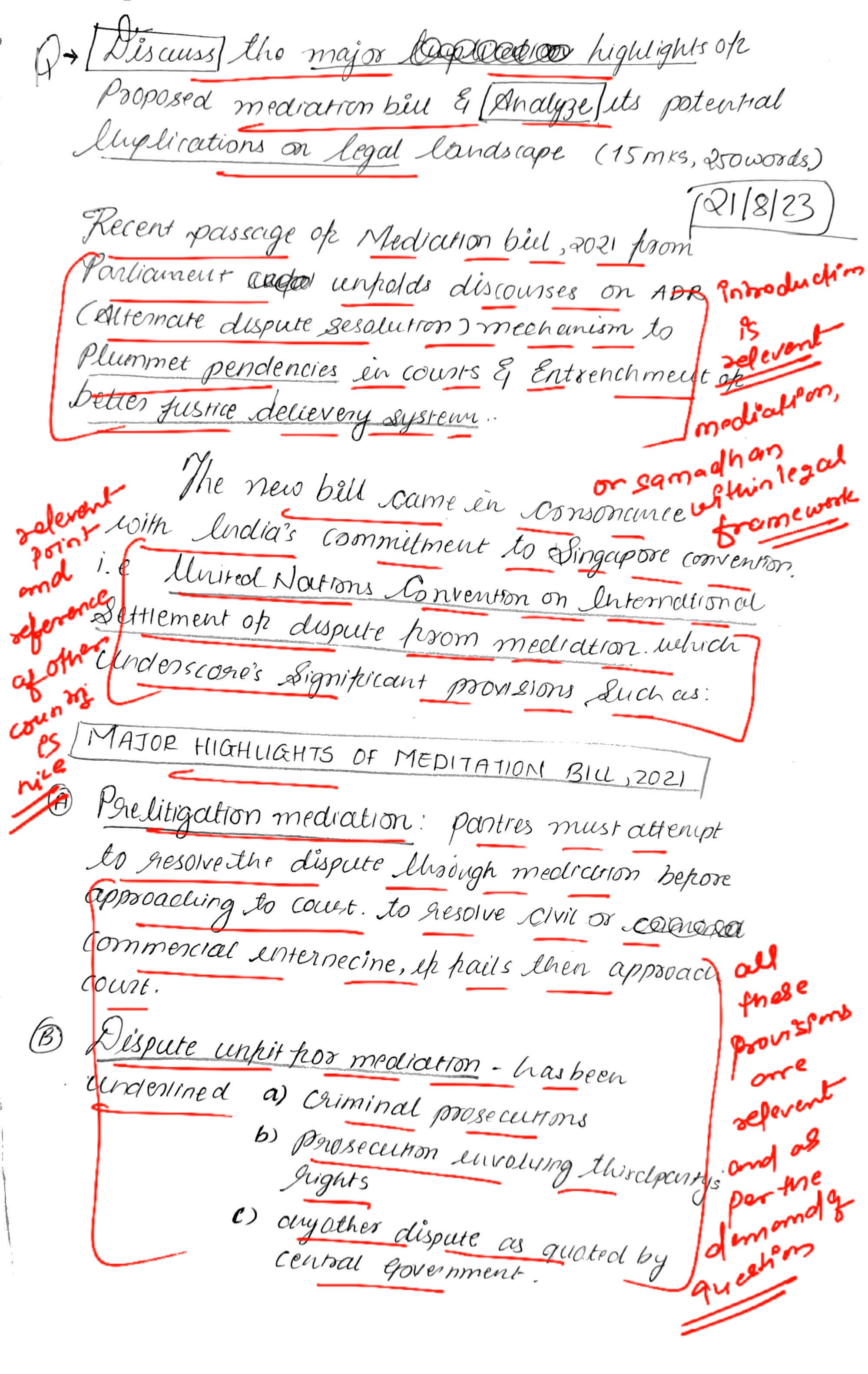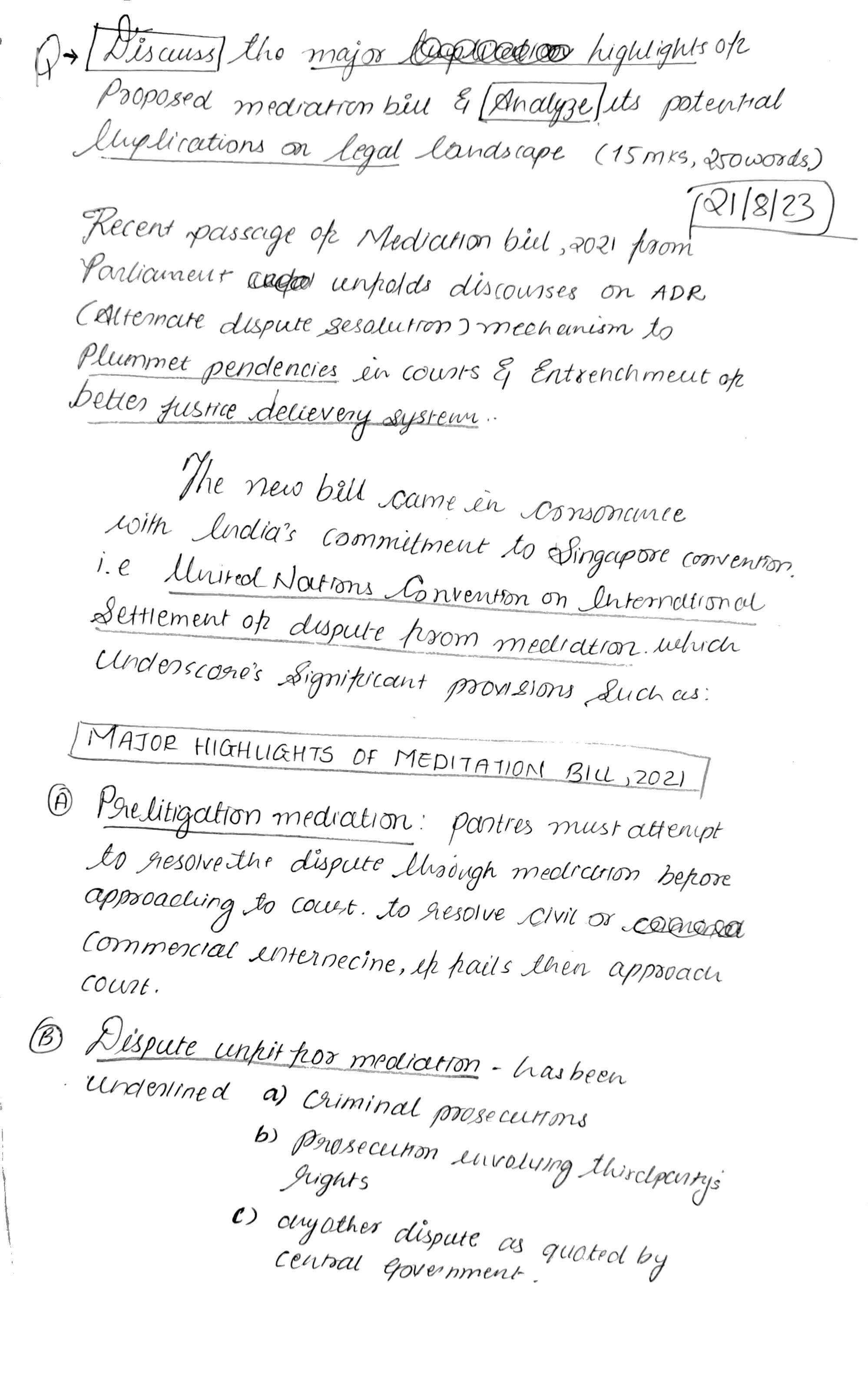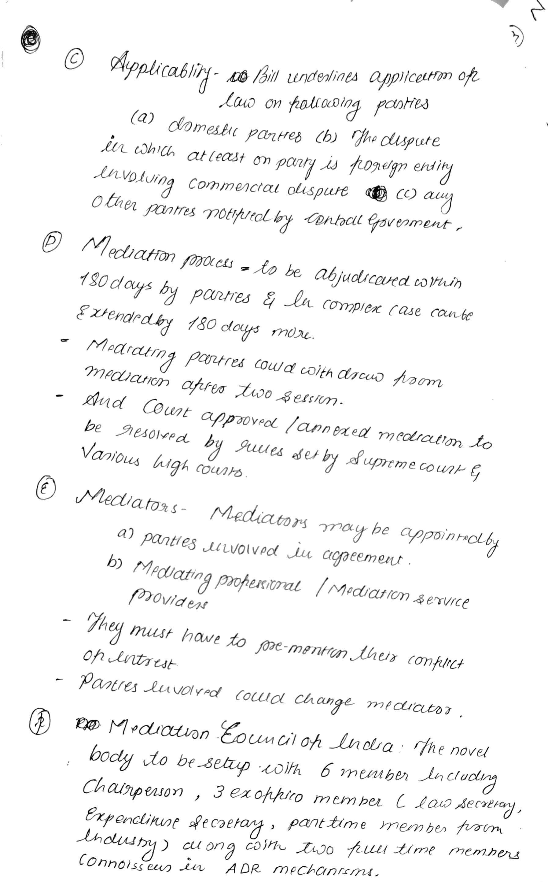 - Introduction: Begin with the significance of the Mediation Bill, 2021 in establishing an institutionalized framework for mediation in India.