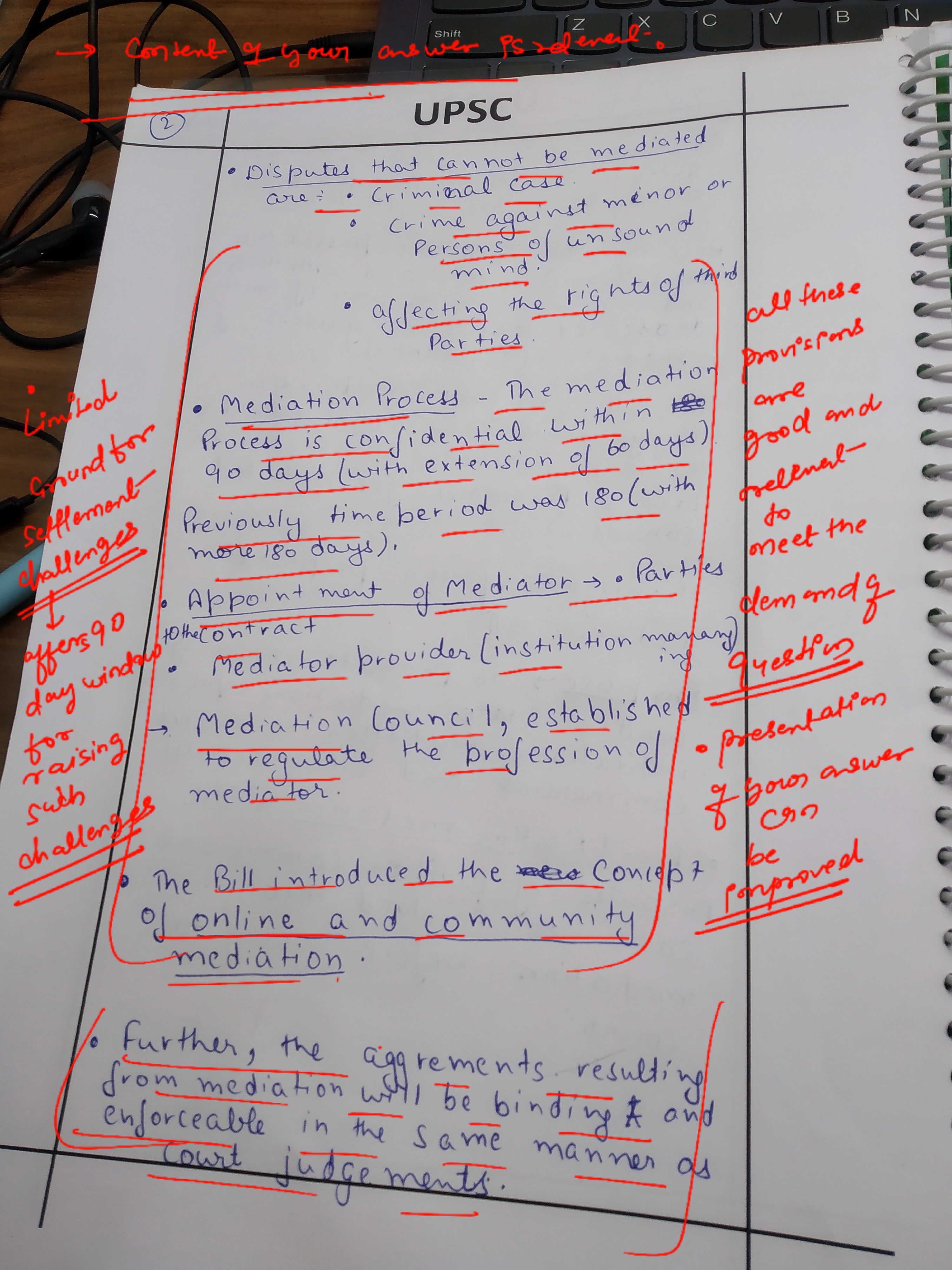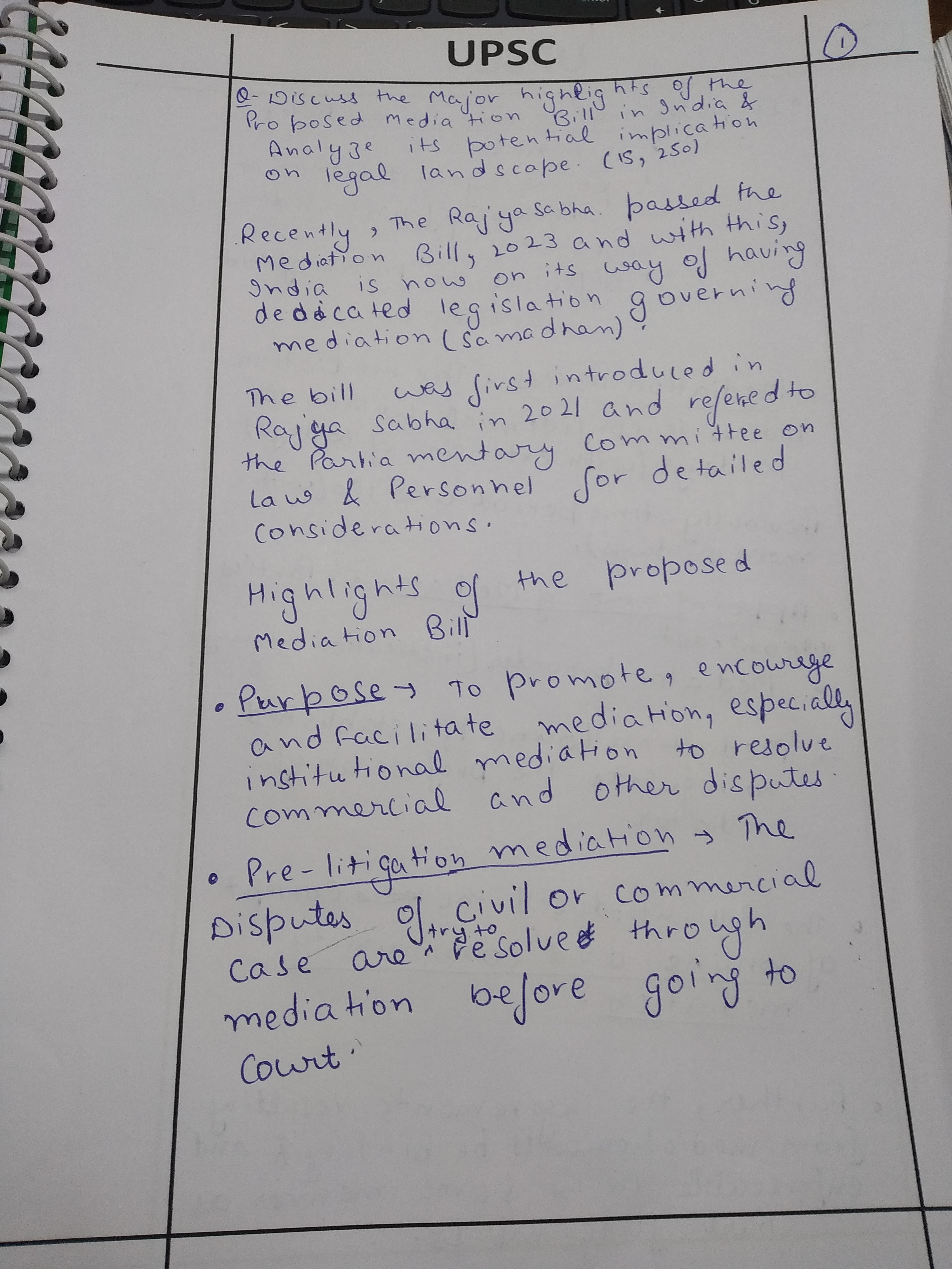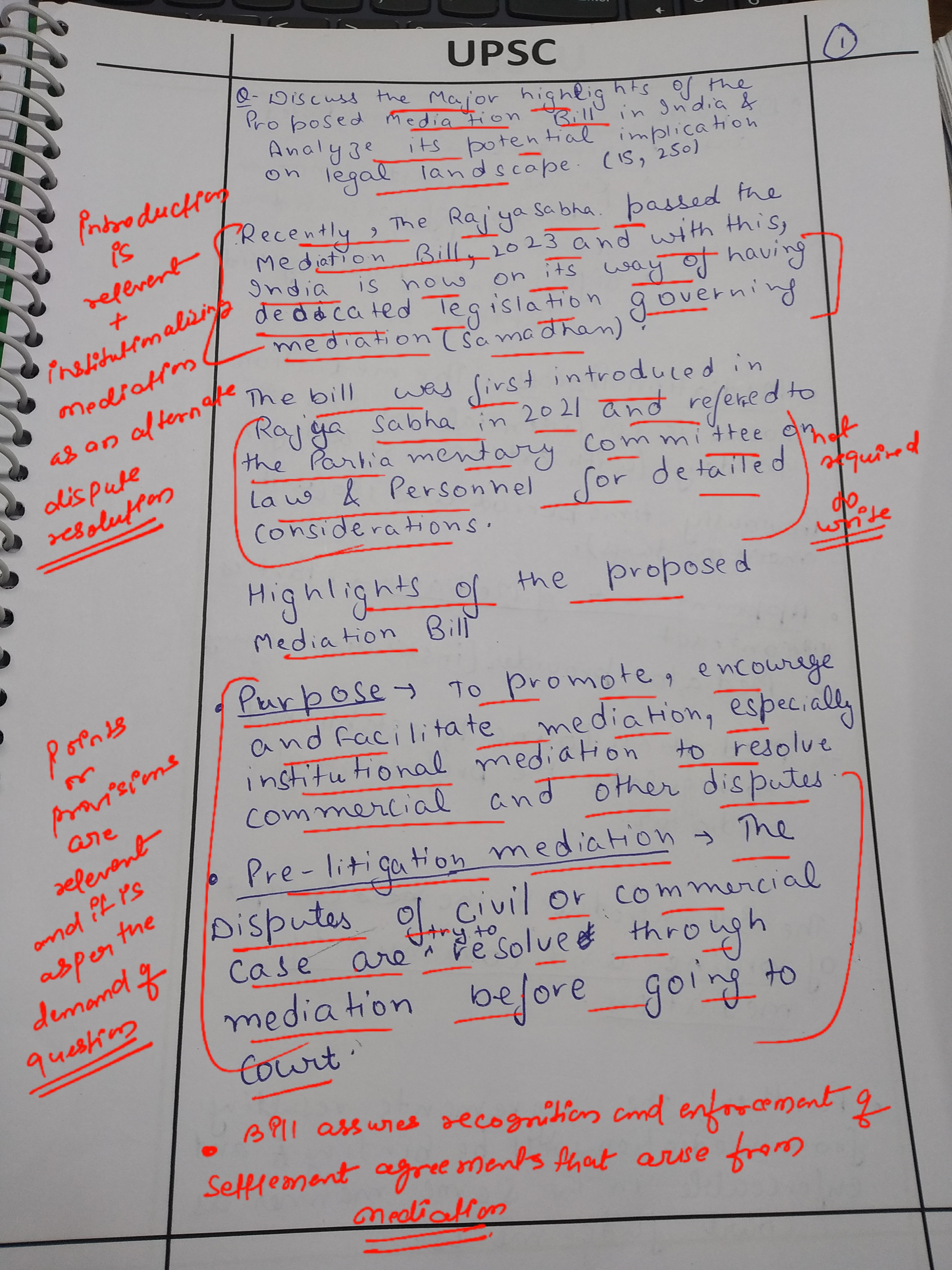 - Introduction: Begin with the significance of the Mediation Bill, 2021 in establishing an institutionalized framework for mediation in India.