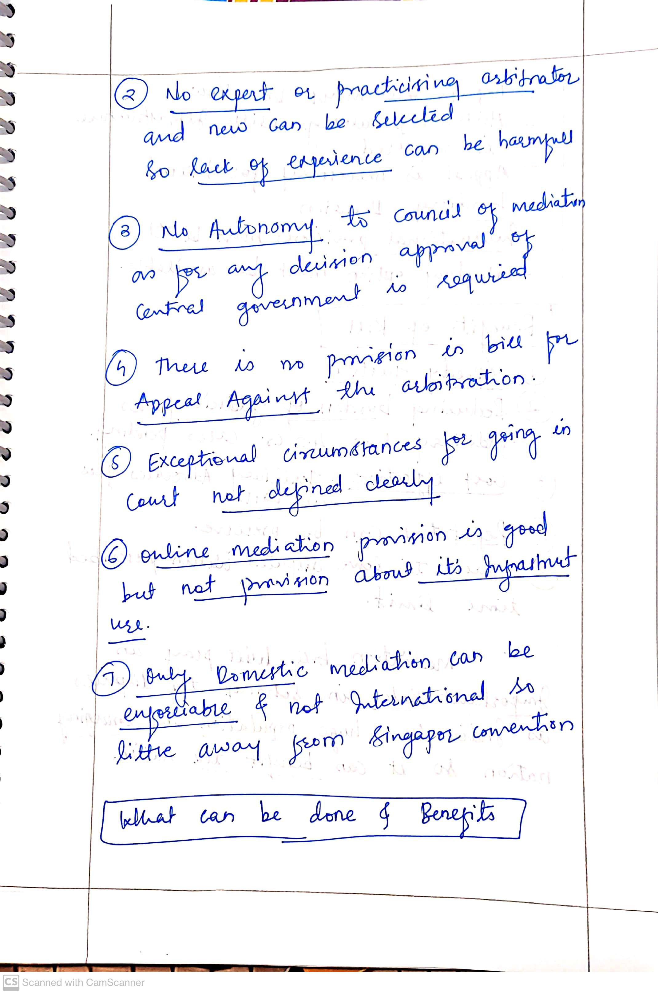 - The Bill assures recognition and enforcement of settlement agreements that arise from mediation. This aligns with India’s obligations as a signatory to the Singapore Convention.