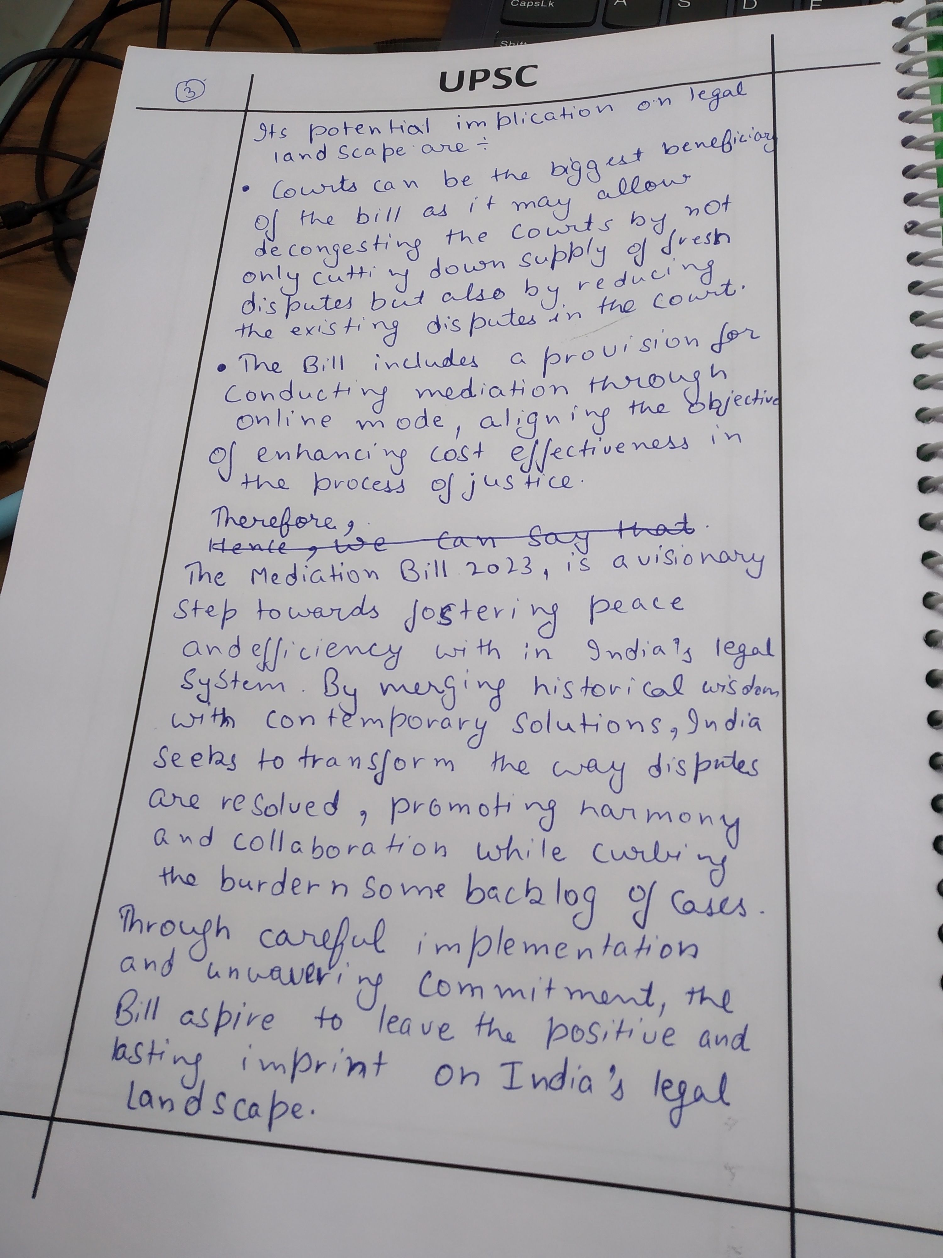 - Conclusion: Conclude, summarizing the potential of the Mediation Bill in reshaping the Indian legal landscape.