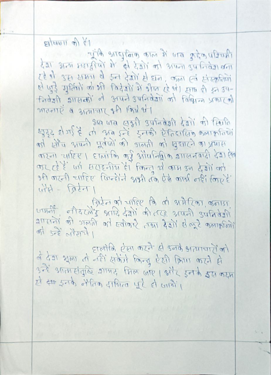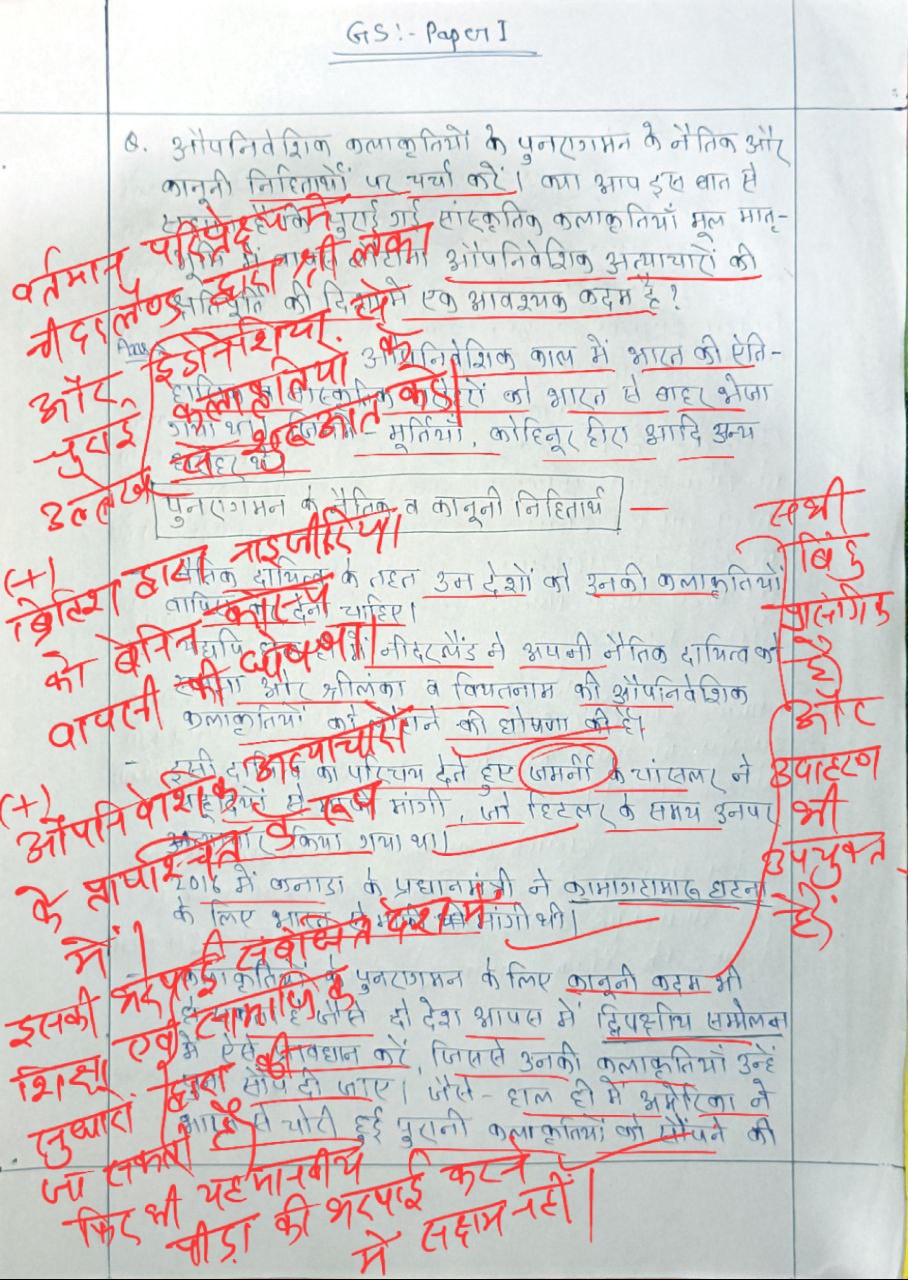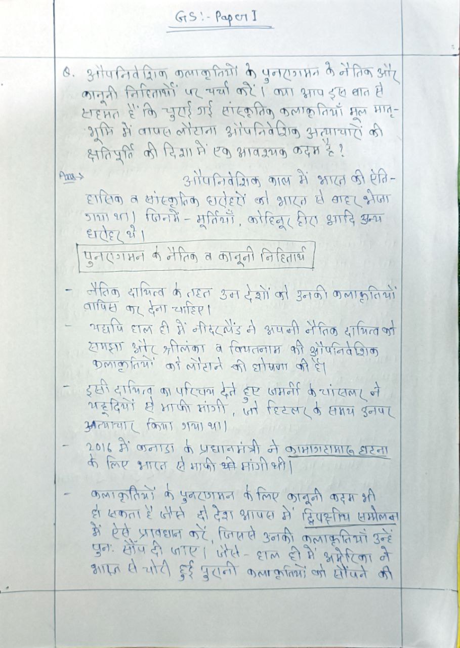 - परिचय: हाल की घटनाओं जैसे नीदरलैंड द्वारा इंडोनेशिया और श्रीलंका से चुराई गई कलाकृतियाँ वापस करने के निर्णय को ध्यान में रखते हुए परिचय लिखें।