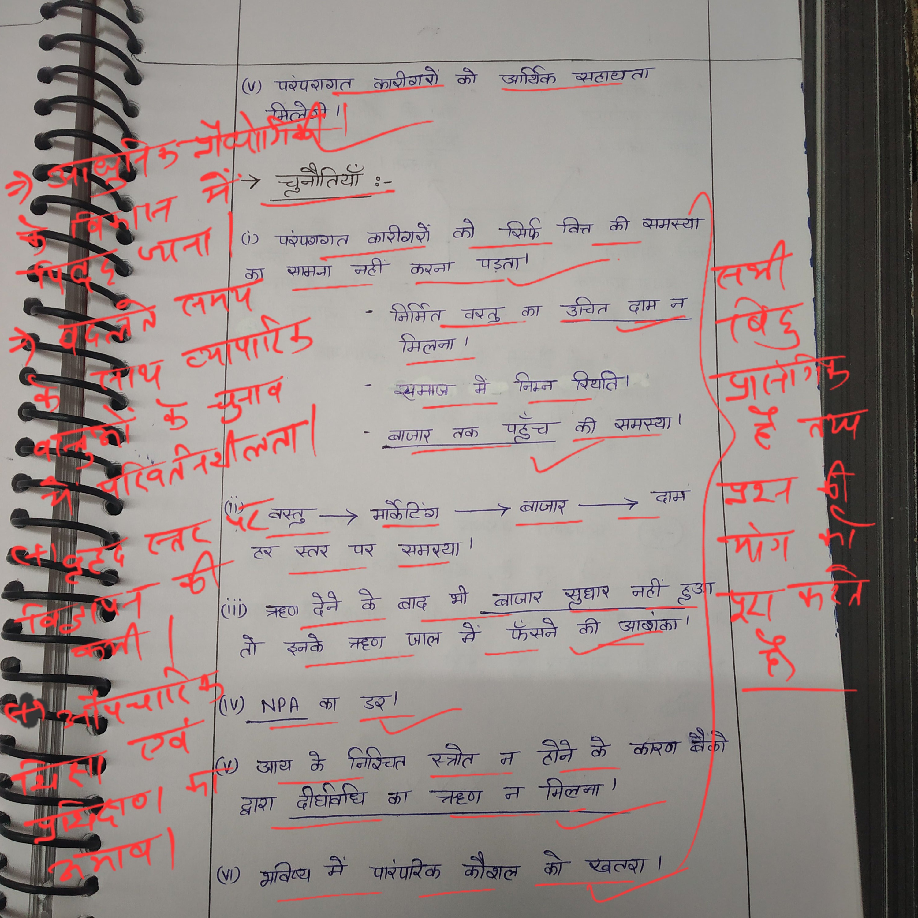 - क्रेडिट पहुंच से परे, आधुनिक तकनीक, बदलती उपभोक्ता प्राथमिकताएं, विपणन कमियां, कच्चे माल की कमी, औपचारिक शिक्षा की कमी और शहरीकरण के प्रभाव जैसे मुद्दों पर भी गौर कीजिए।