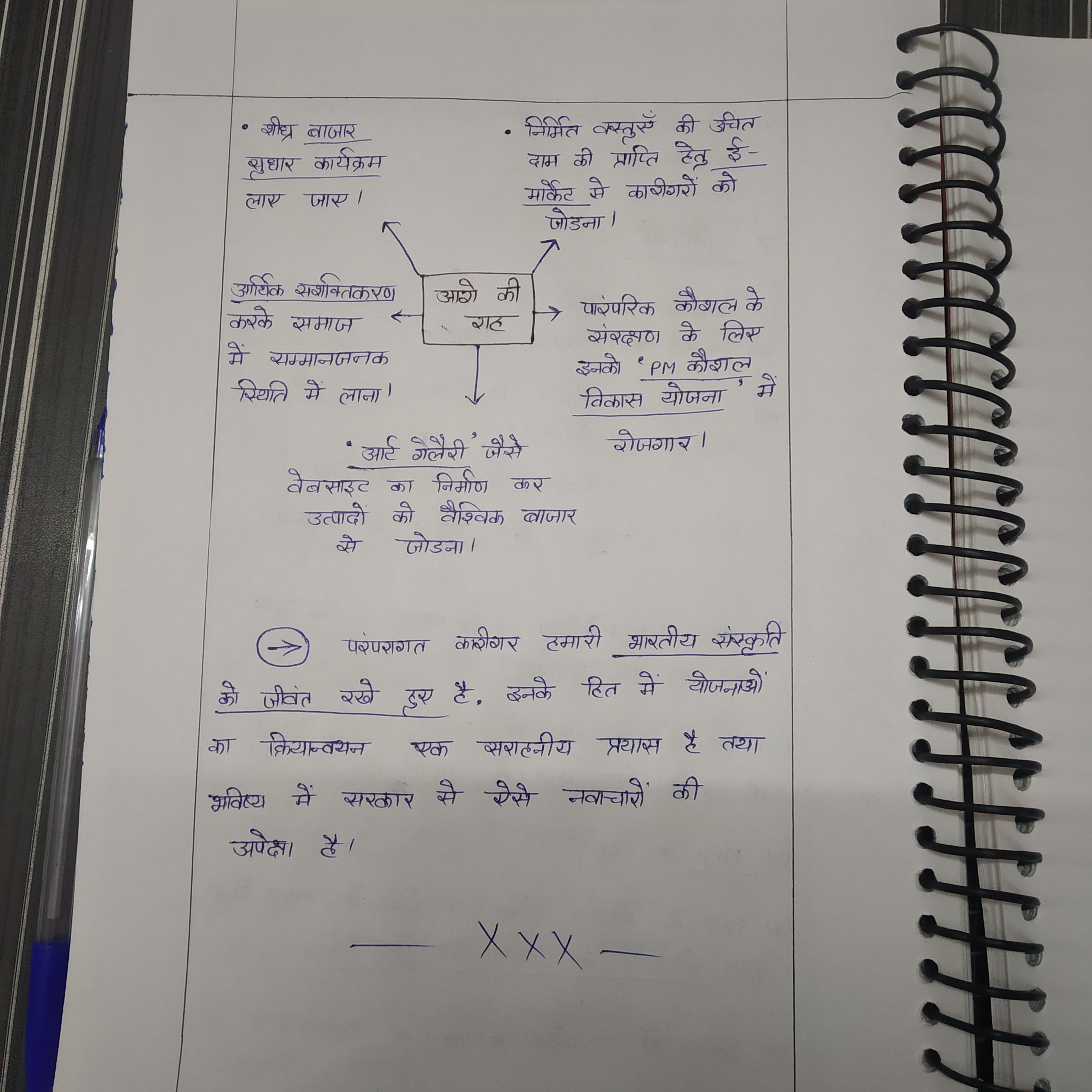- निष्कर्ष: एक समग्र दृष्टिकोण की आवश्यकता पर जोर देते हुए निष्कर्ष निकालिए जो कारीगर समुदाय की स्थिरता के लिए वित्तीय और गैर-वित्तीय दोनों चुनौतियों का समाधान करता हो।