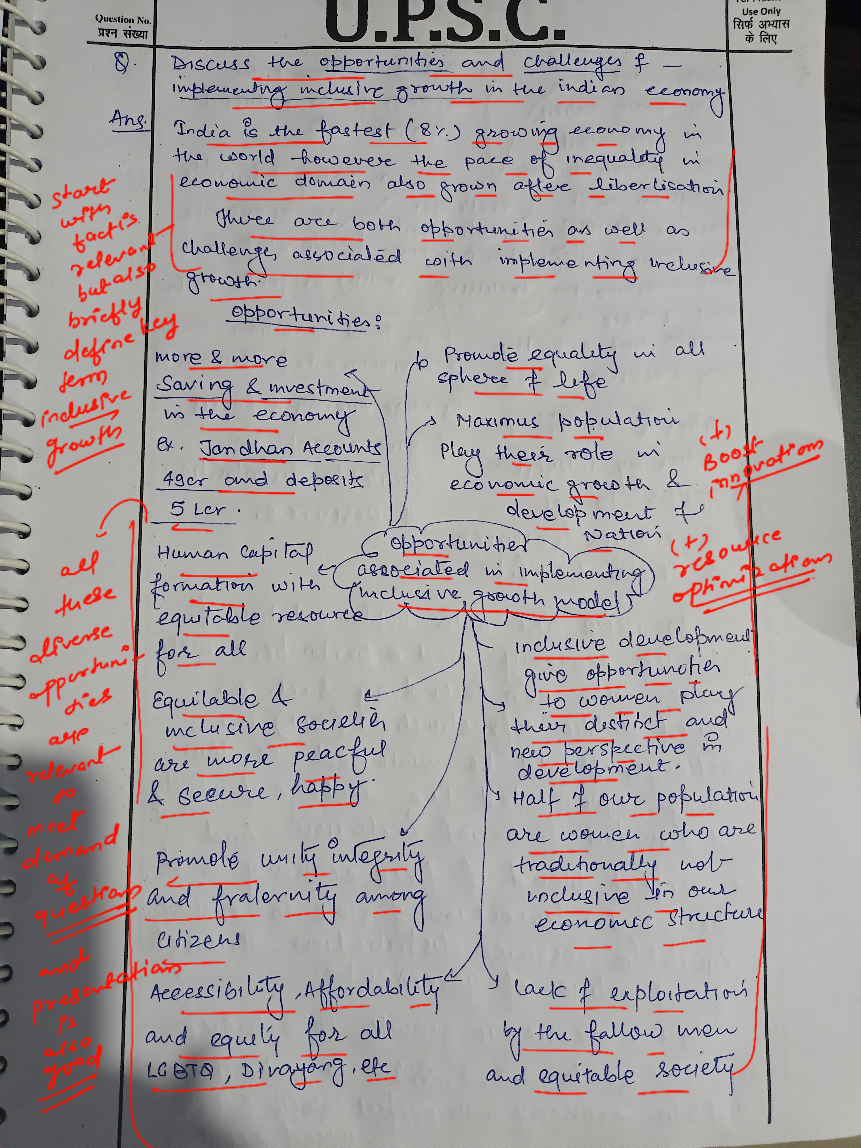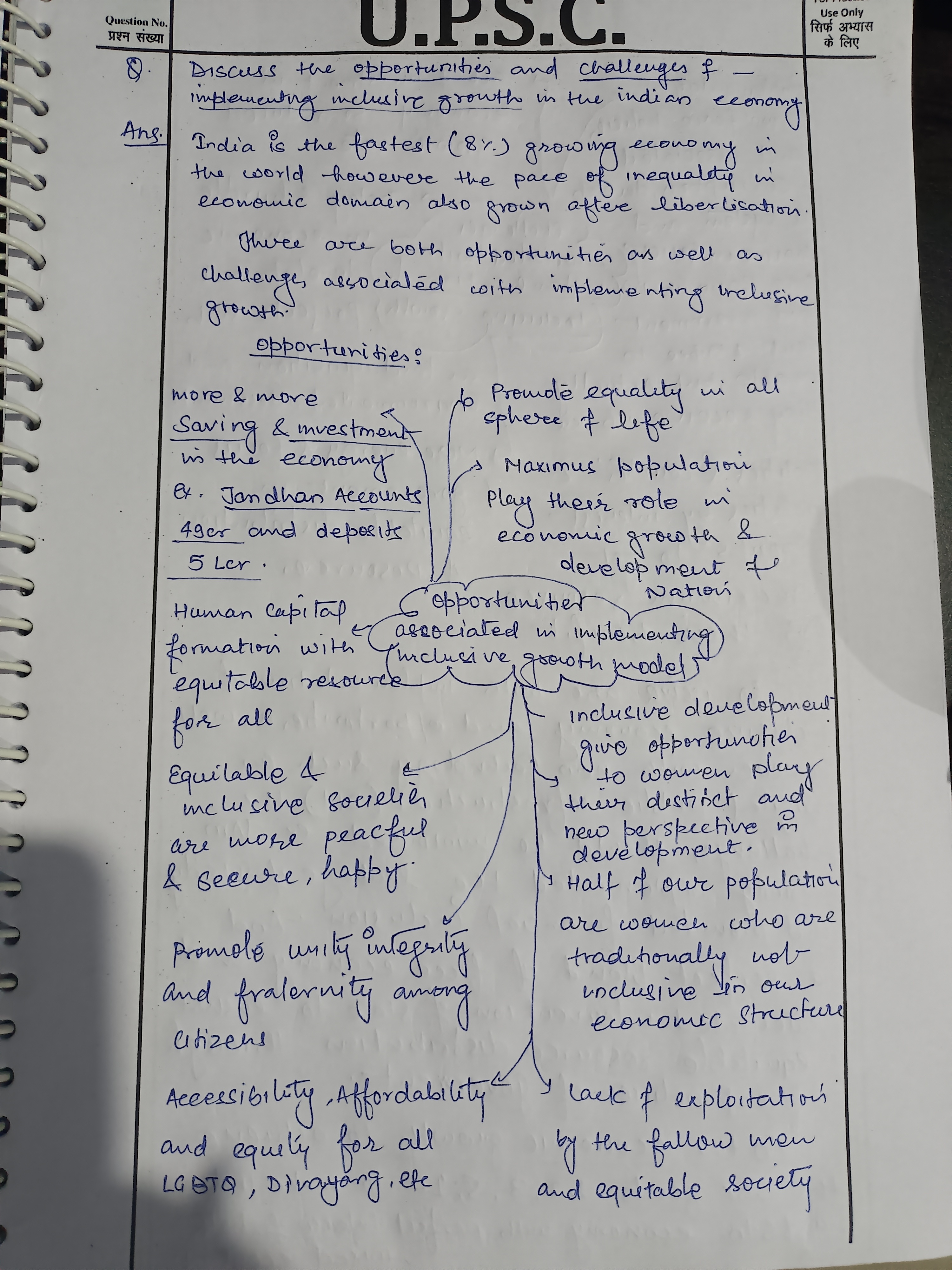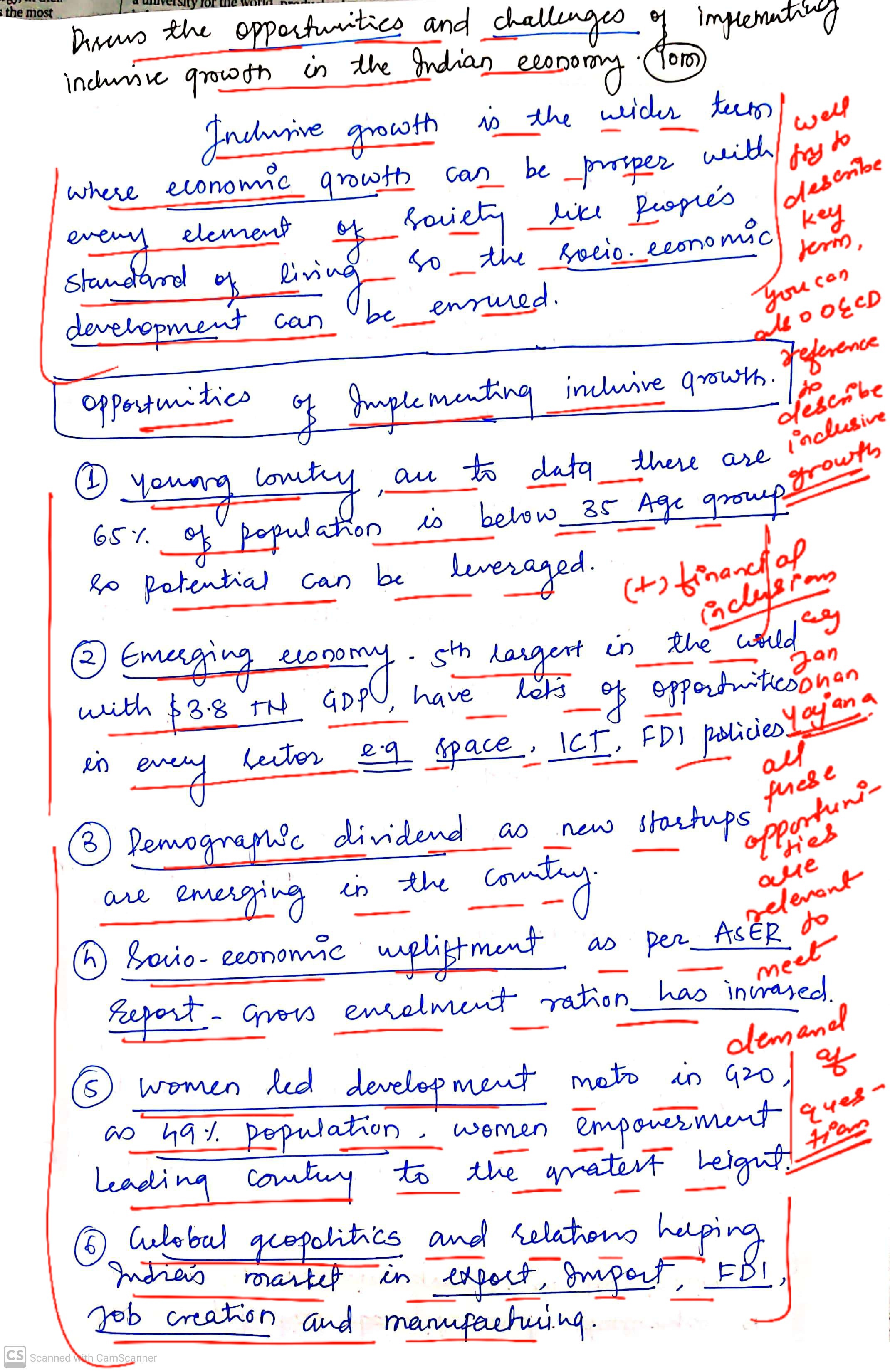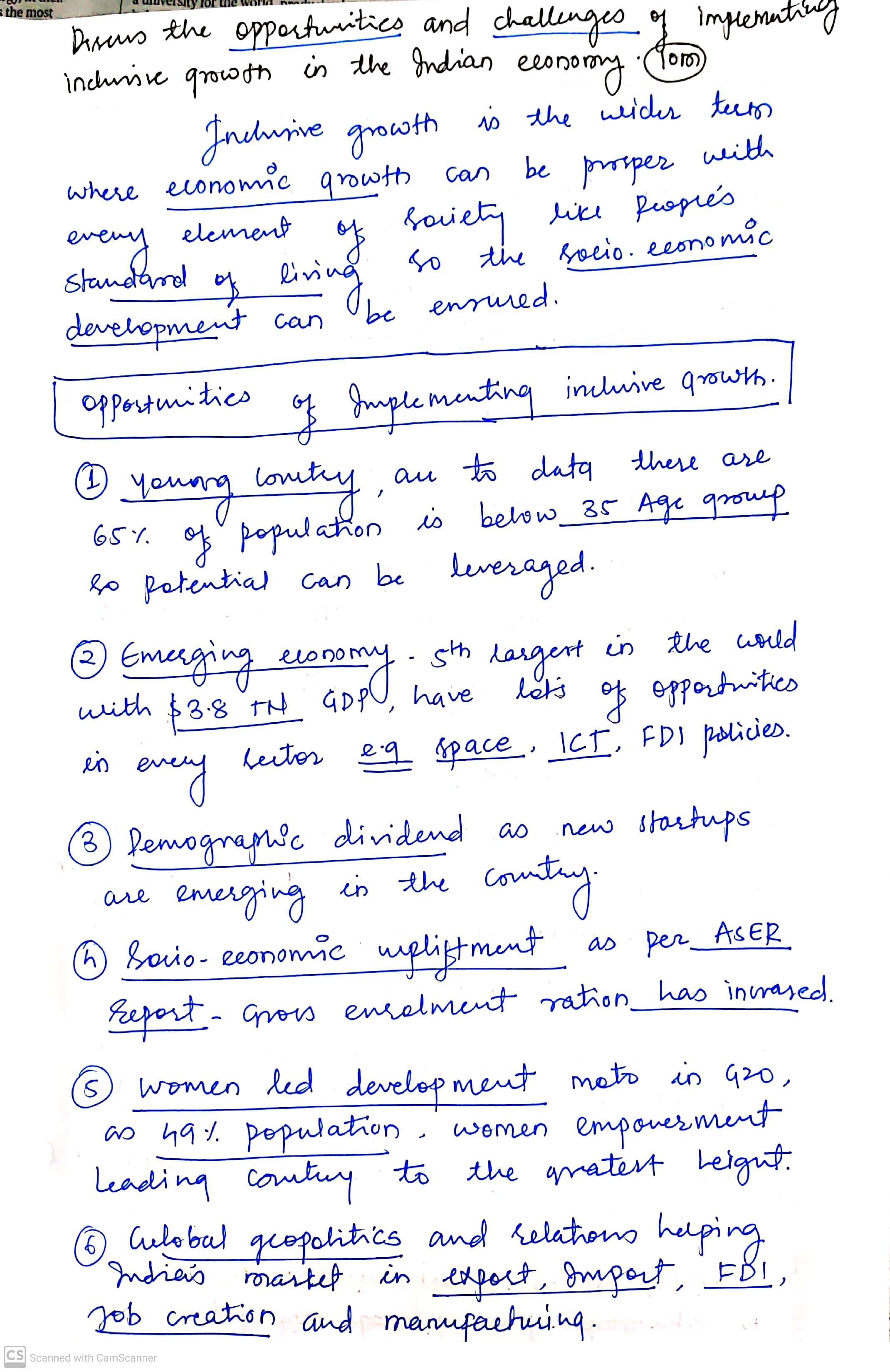 - Write opportunities of implementing inclusive growth in the Indian economy