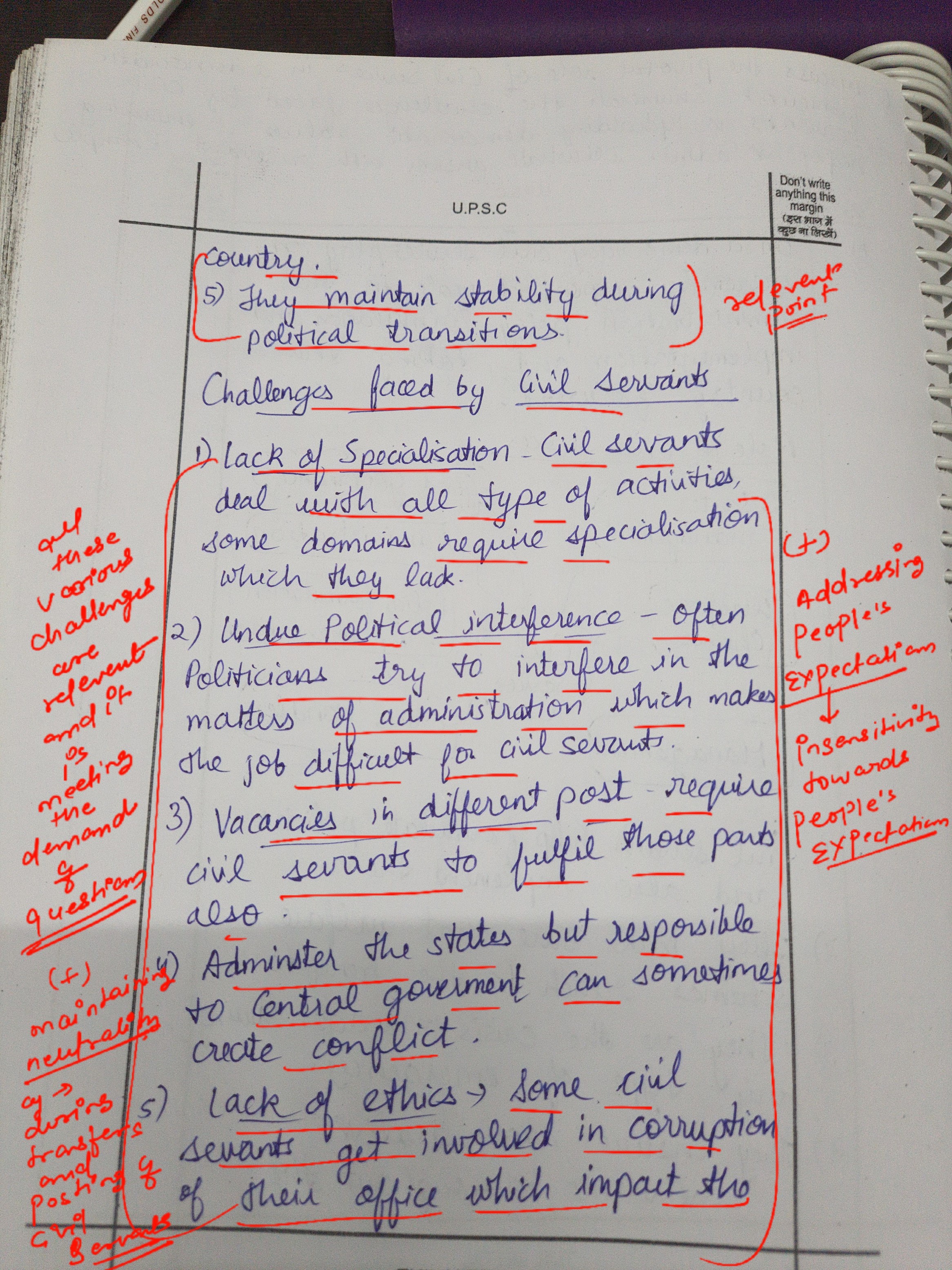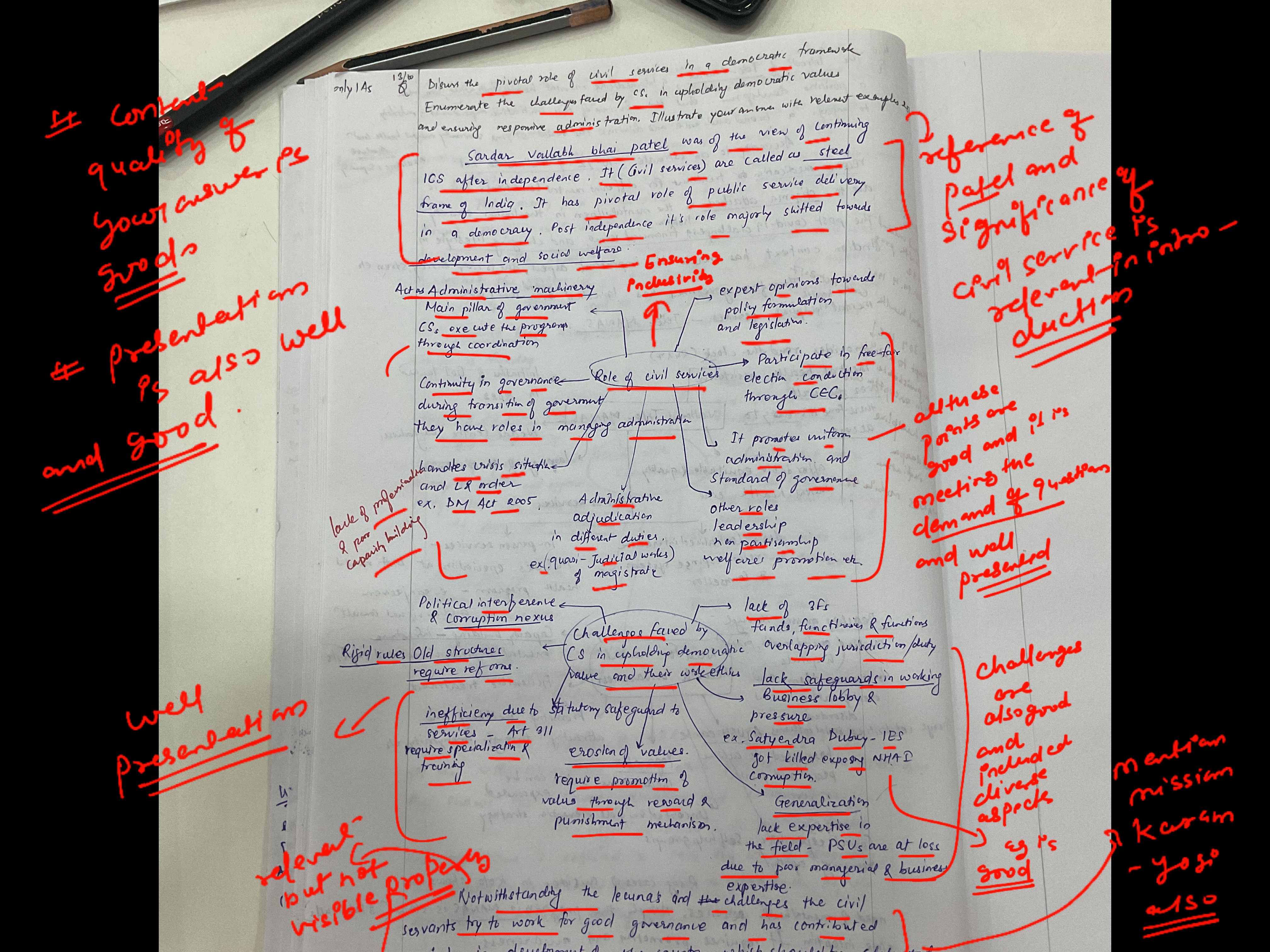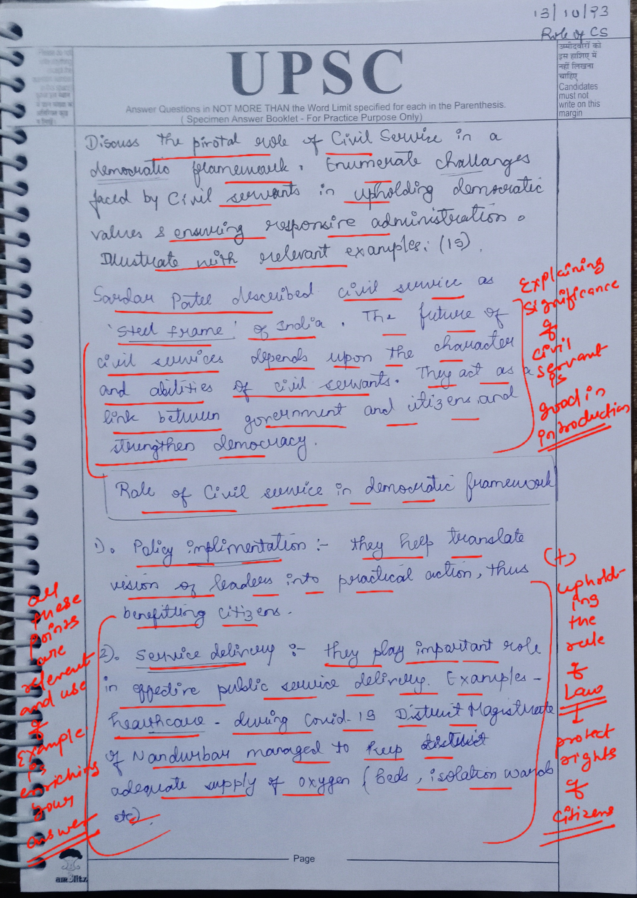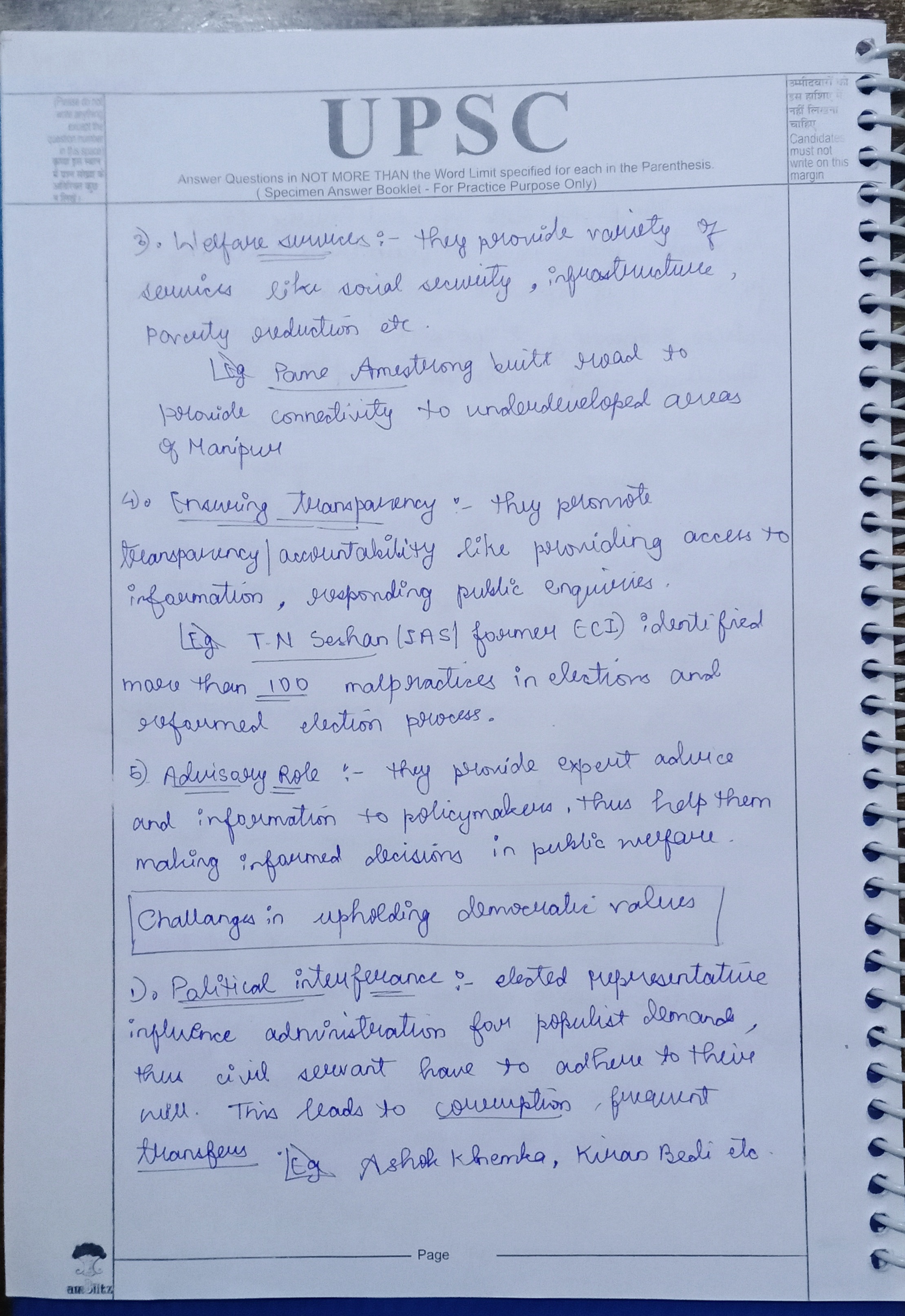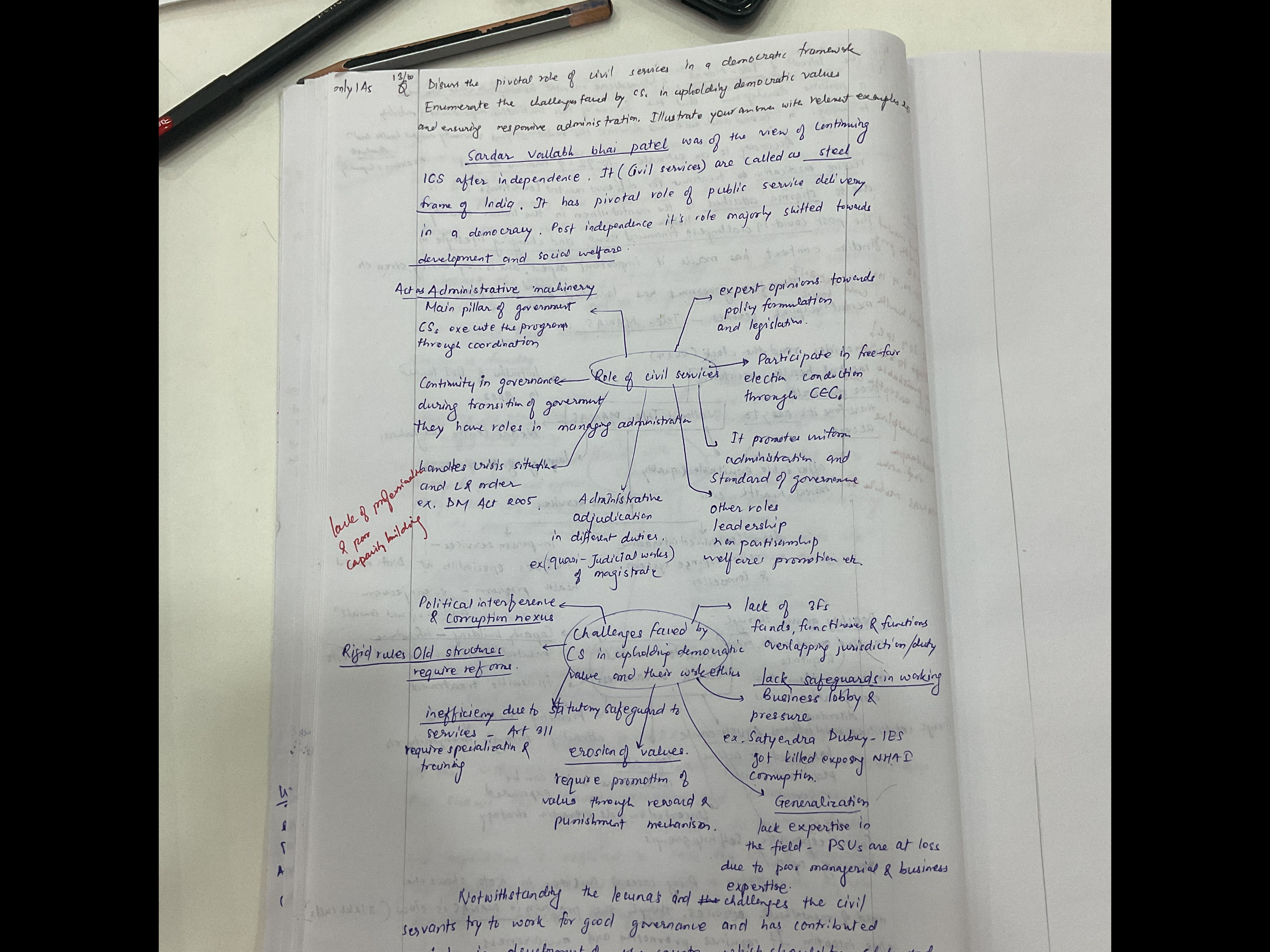 Q. Discuss the pivotal role of civil services in a democratic framework. Enumerate the challenges faced by civil servants in upholding democratic values and ensuring responsive administration. Illustrate your answer with relevant examples (250 words, 15 Marks)