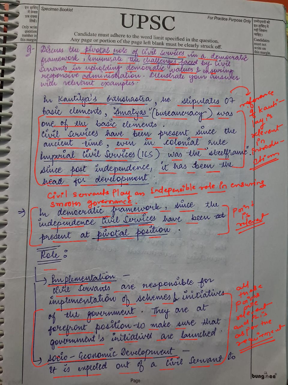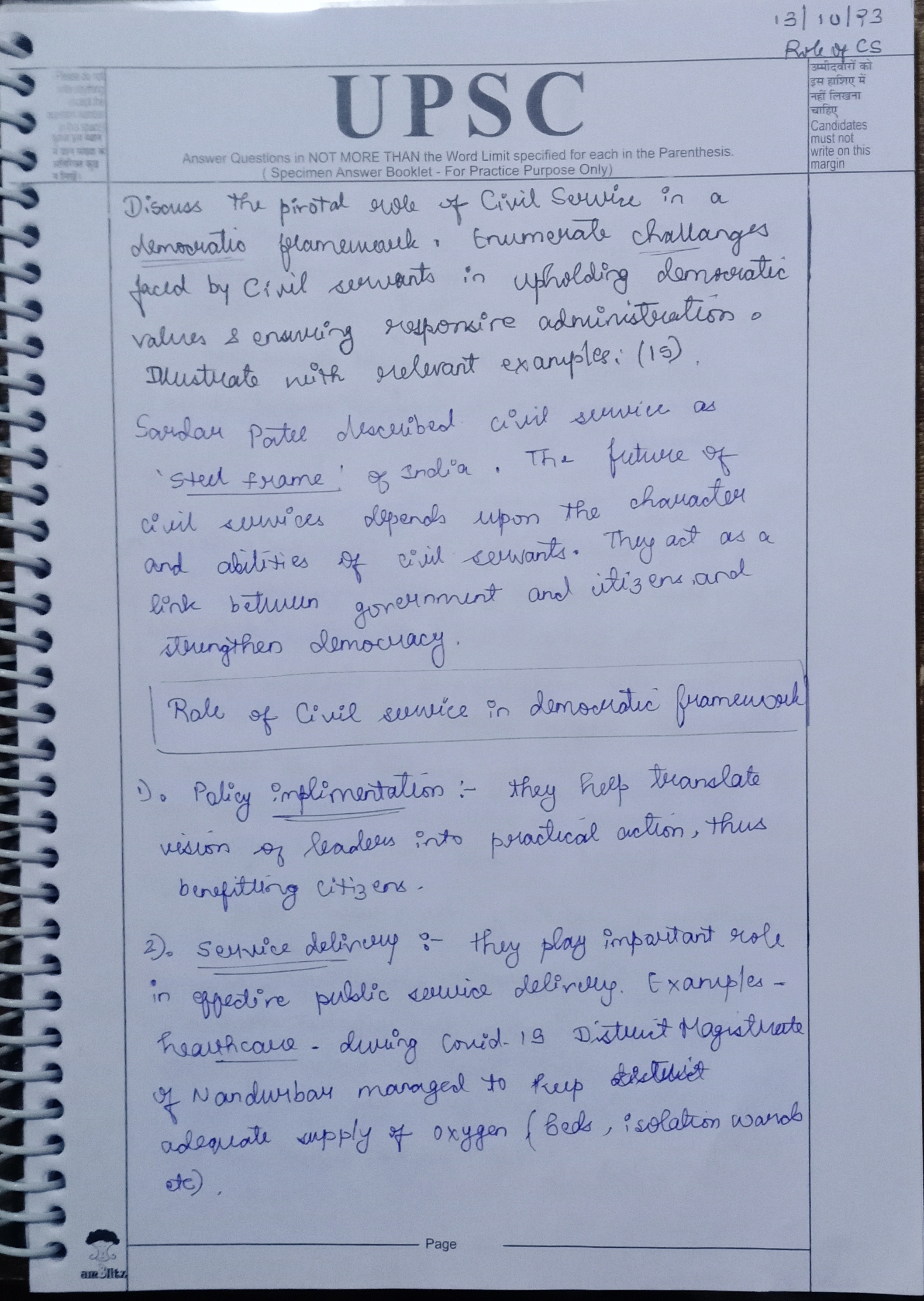 • Introduction: Begin by highlighting the indispensable role of civil services in a democracy. Set the context by emphasizing the need for an efficient civil service to implement democratic ideals.