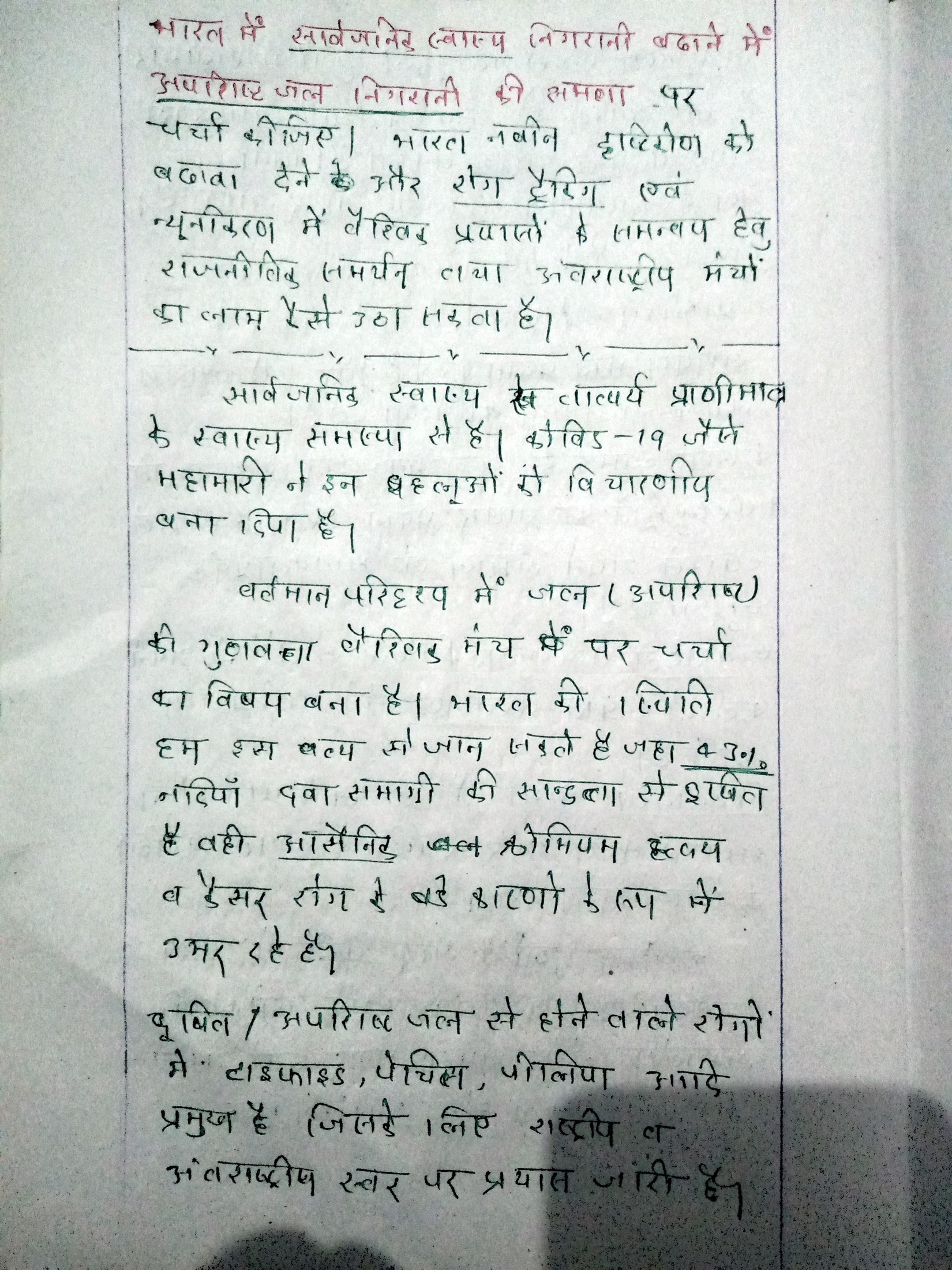 - परिचय: भारत में सार्वजनिक स्वास्थ्य चुनौतियों के लिए अपशिष्ट जल निगरानी जैसे नवीन समाधानों के महत्व पर प्रकाश डालते हुए चर्चा का संदर्भ स्थापित करें।