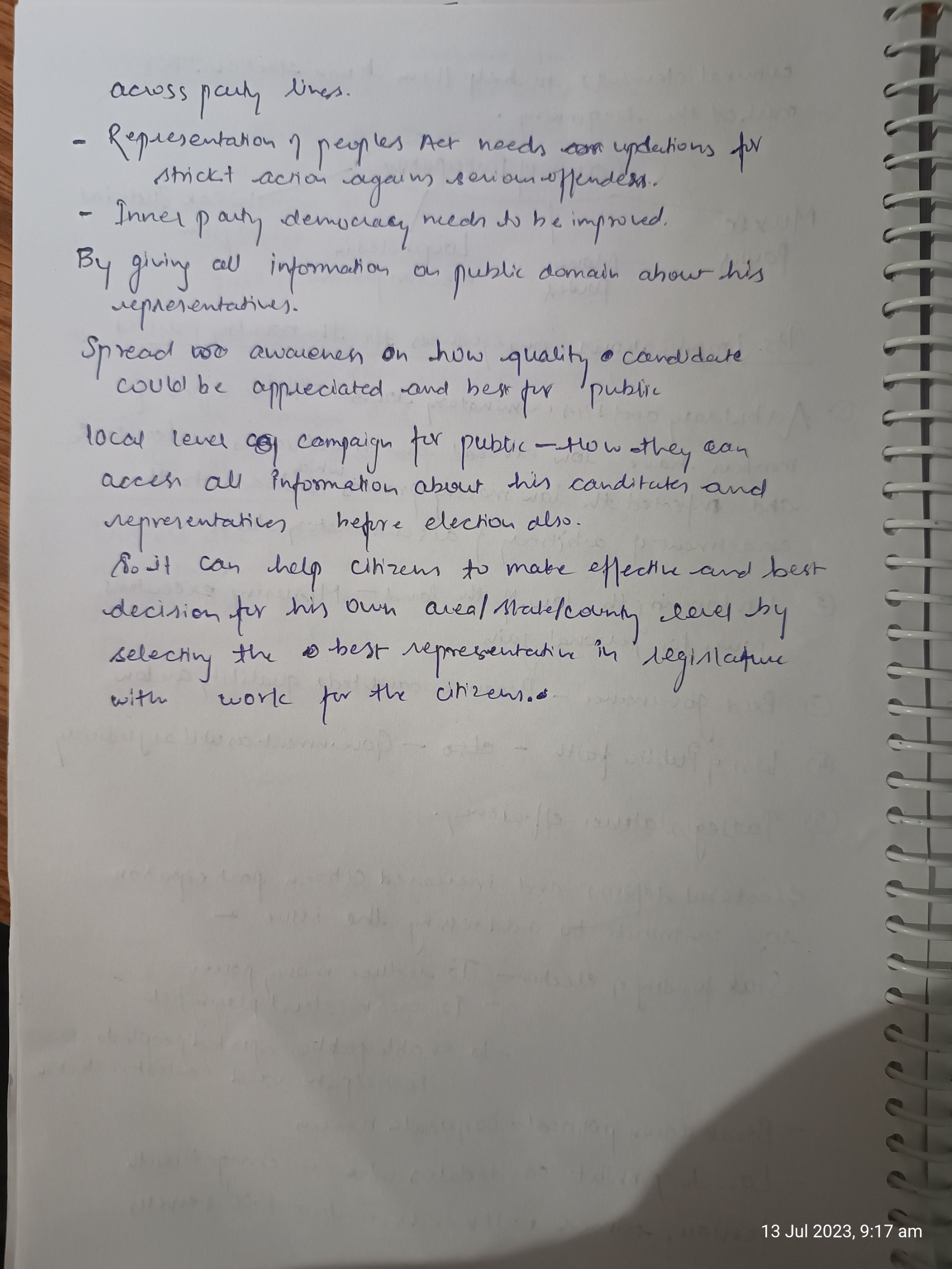 - Faith of people in electoral processes deter, which is not good for vibrant democracy.