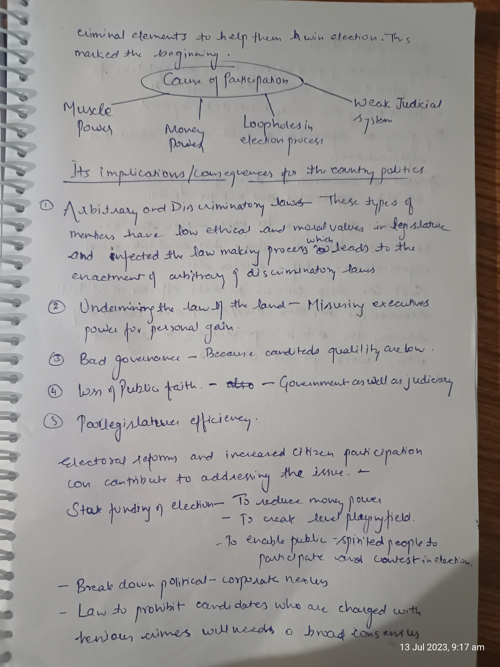 - Socio-political Impact: It also raises concerns about the influence of money and muscle power in elections, thereby threatening the democratic process.