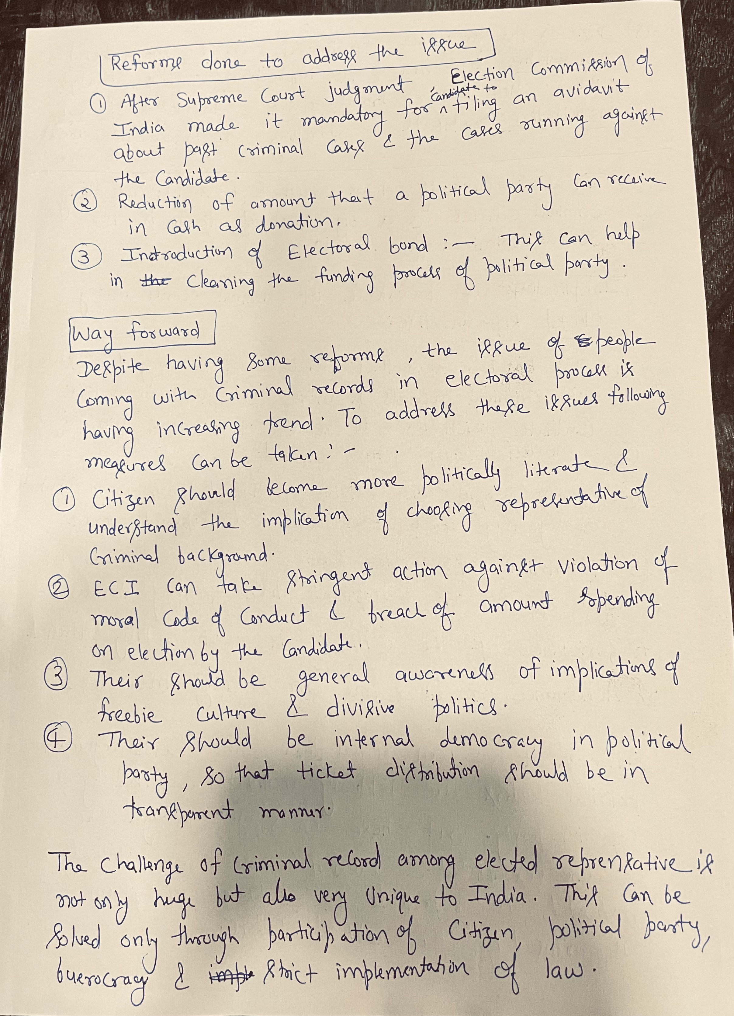 - Fast Track Courts: Establishing fast-track courts for swift disposal of cases against lawmakers could prevent criminally charged politicians from contesting elections.