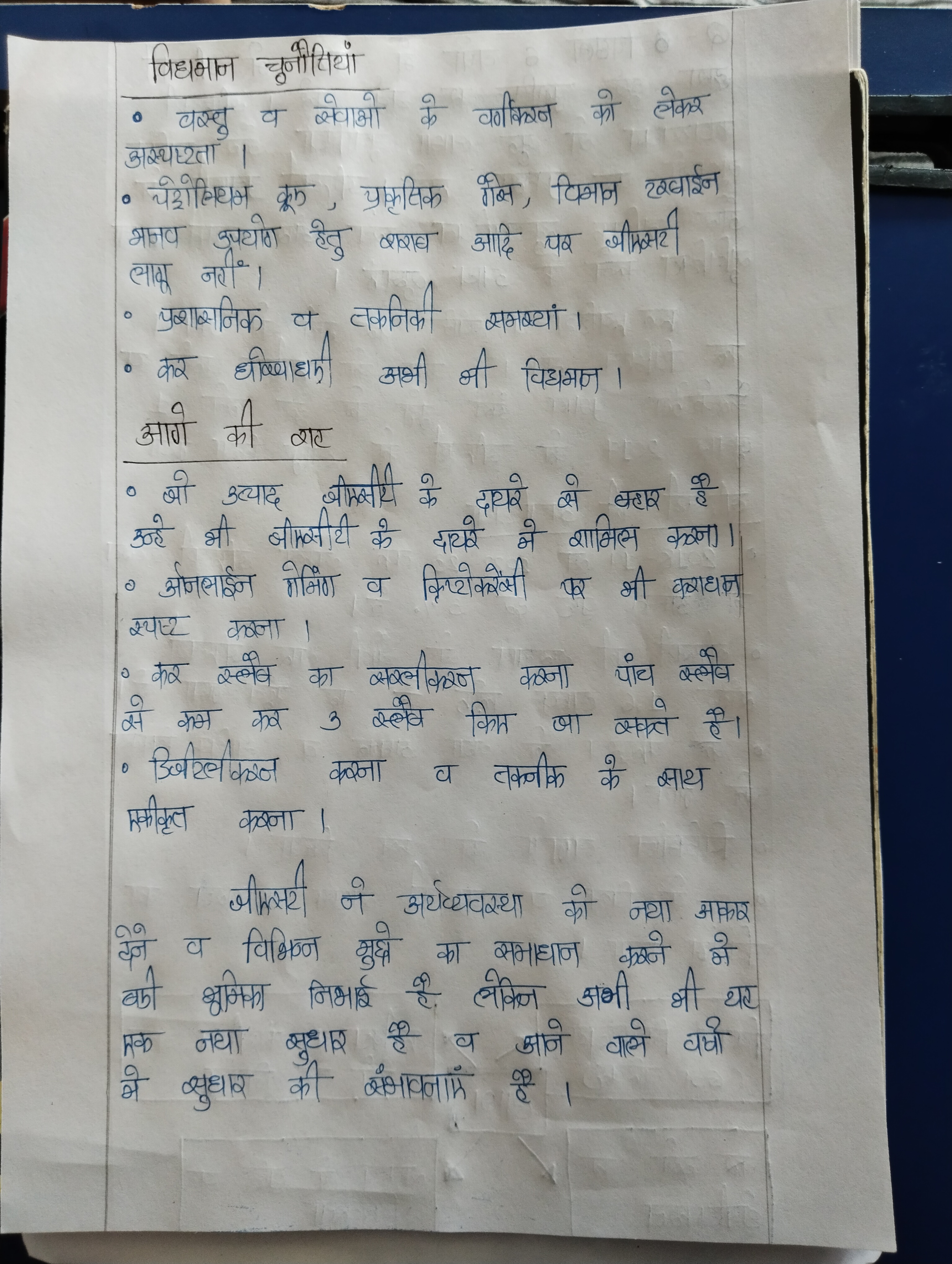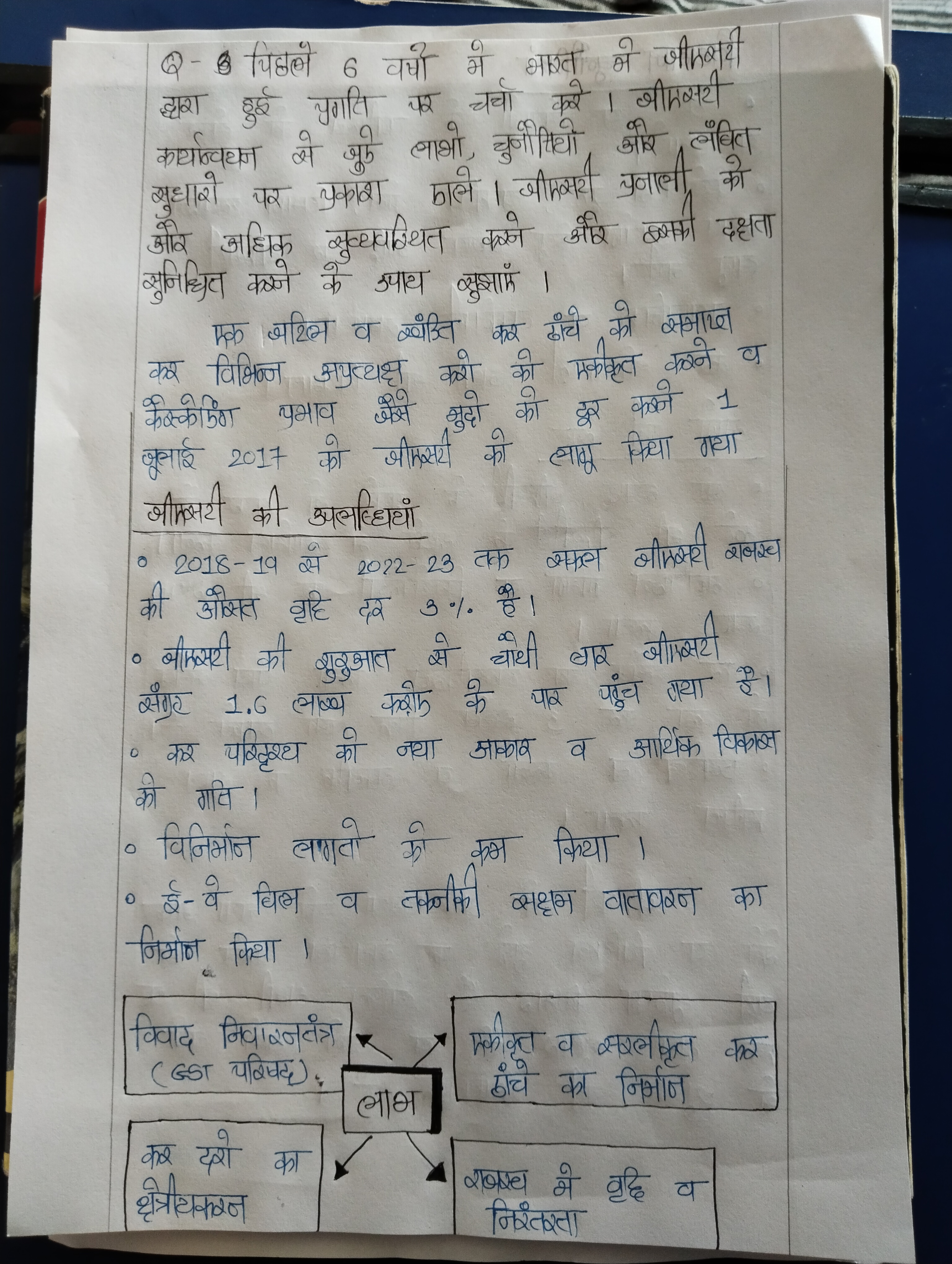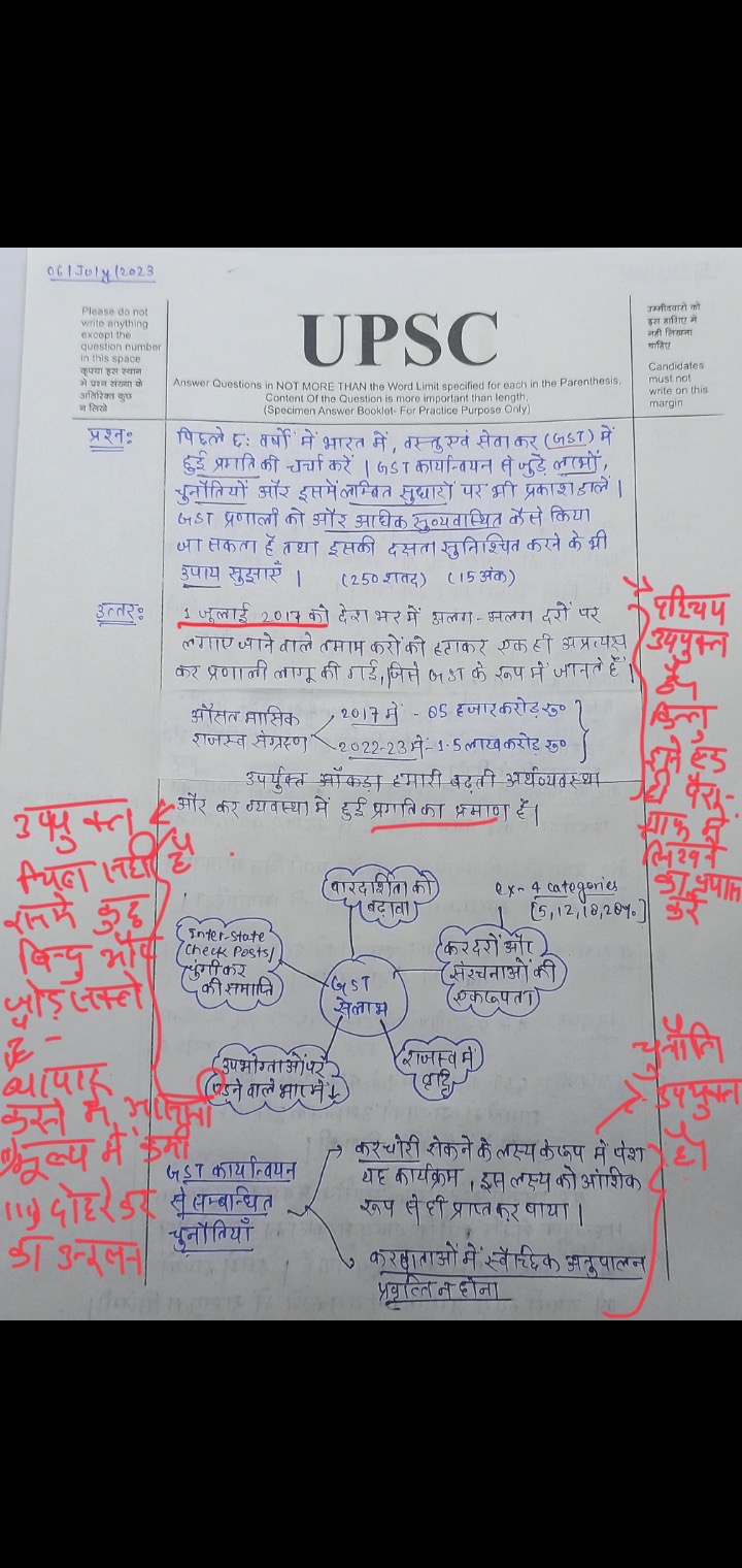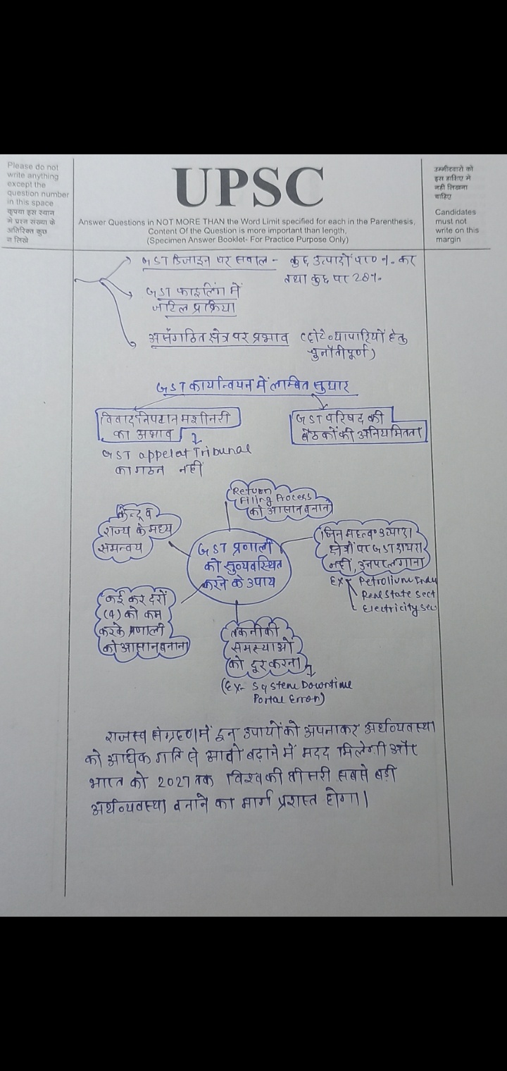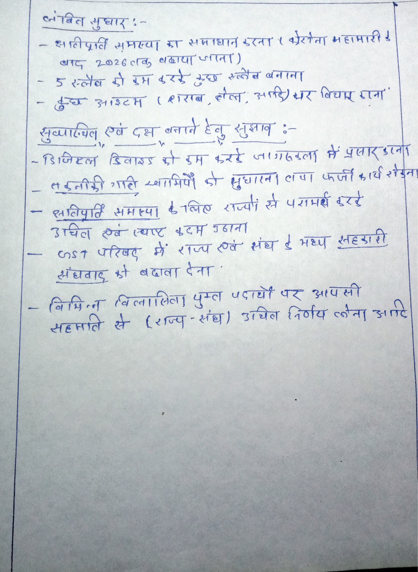 - निष्कर्ष: पिछले छह वर्षों में जीएसटी की प्रगति का सारांश देते हुए, इसके लाभों, चुनौतियों और आगे के सुधारों की आवश्यकता बताते हुए निष्कर्ष लिखें।