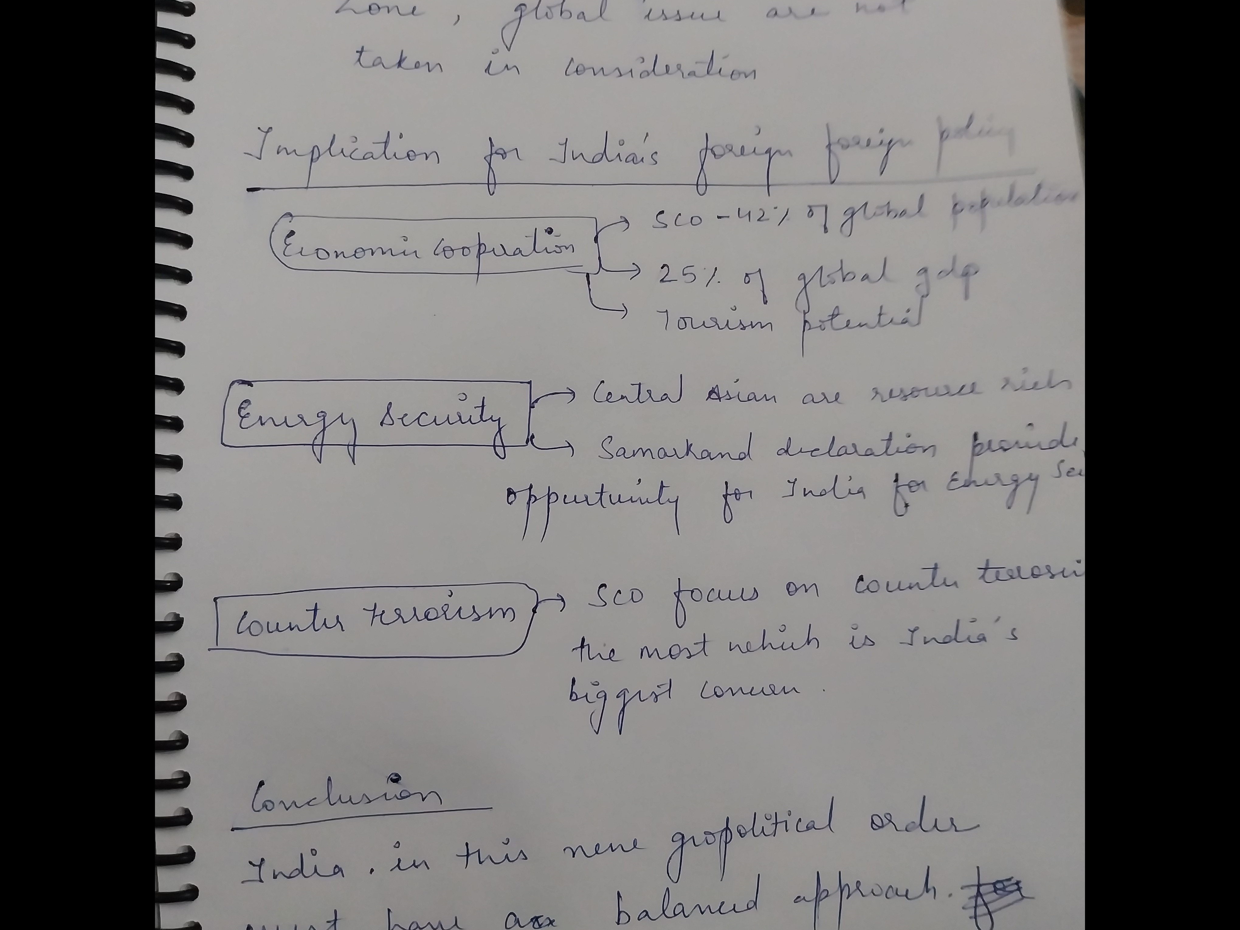 - SCO provides India a platform to neutralize regional threats from religious extremism and terrorism.