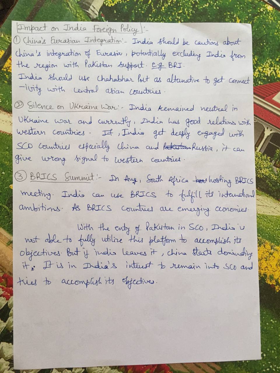- Discuss how India’s increased involvement with the SCO impacts its foreign policy.