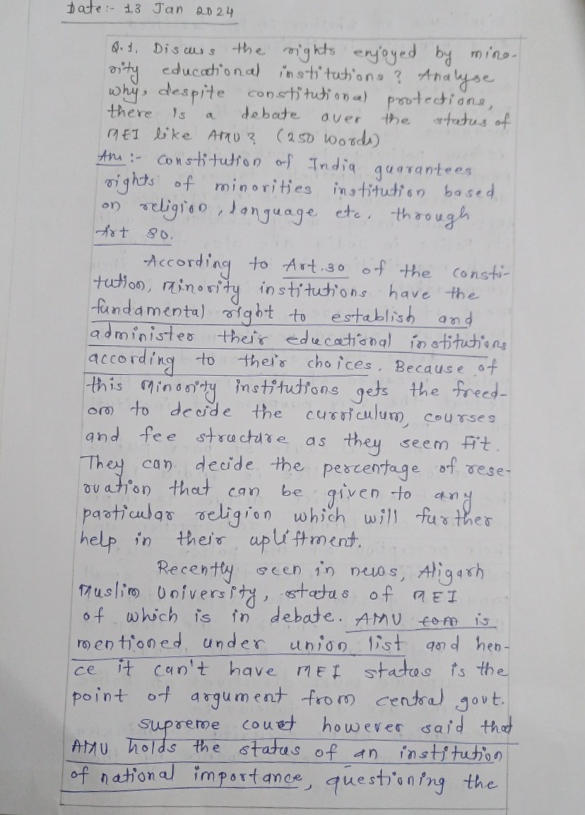 The rights of Minority Educational Institutions are integral to preserving the cultural and linguistic heritage of various communities in India. While the Constitution provides robust protections for these rights, the debate over institutions like AMU underscores the complexities in interpreting these rights. It highlights the ongoing challenge of balancing minority rights with broader national objectives and the evolving jurisprudence in this area. As India continues to grow as a diverse and pluralistic society, the role and rights of MEIs will remain a significant, albeit debated, aspect of its educational and cultural landscape.