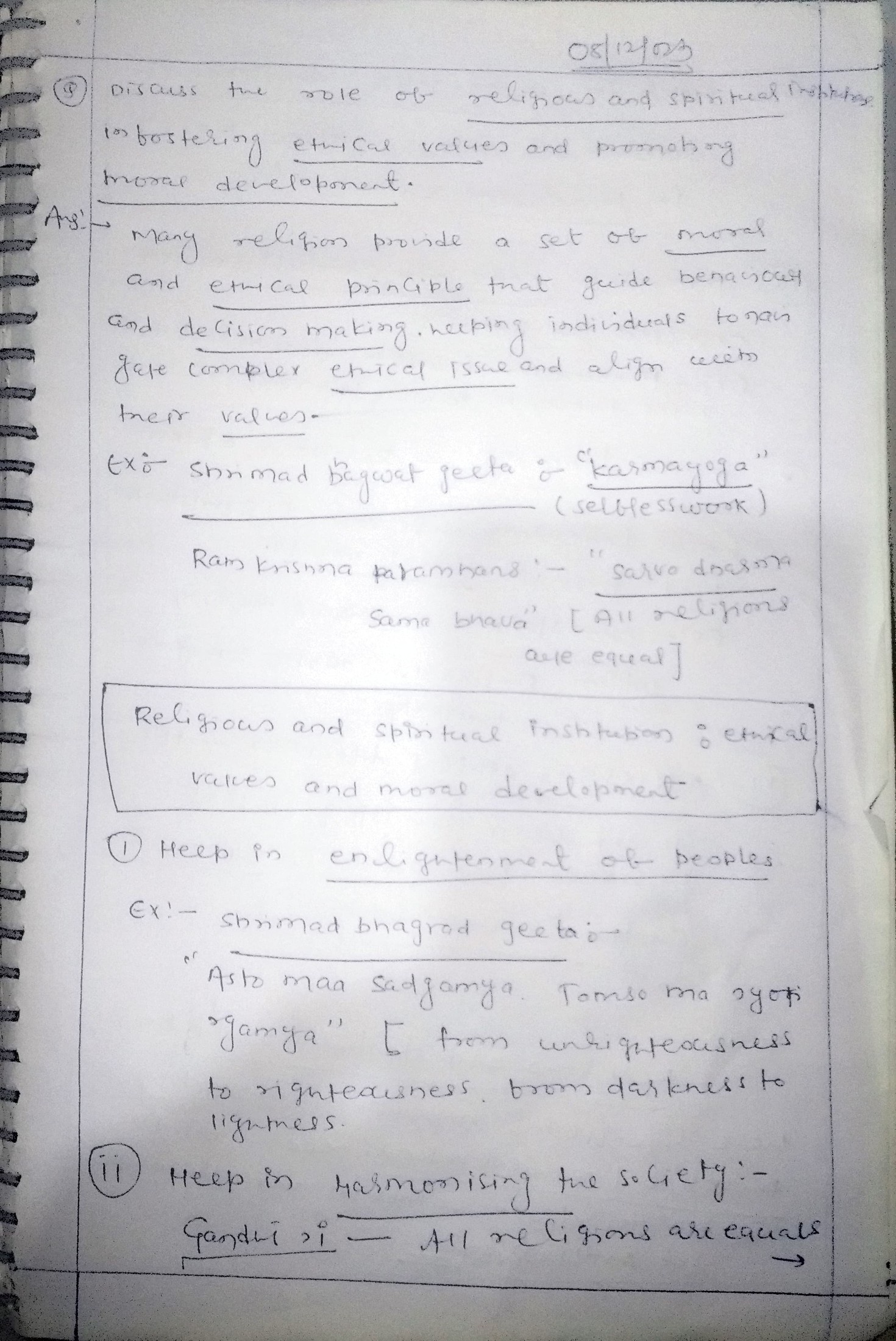 - Write about the role of religious and spiritual institutions in fostering ethical values and promoting moral development.