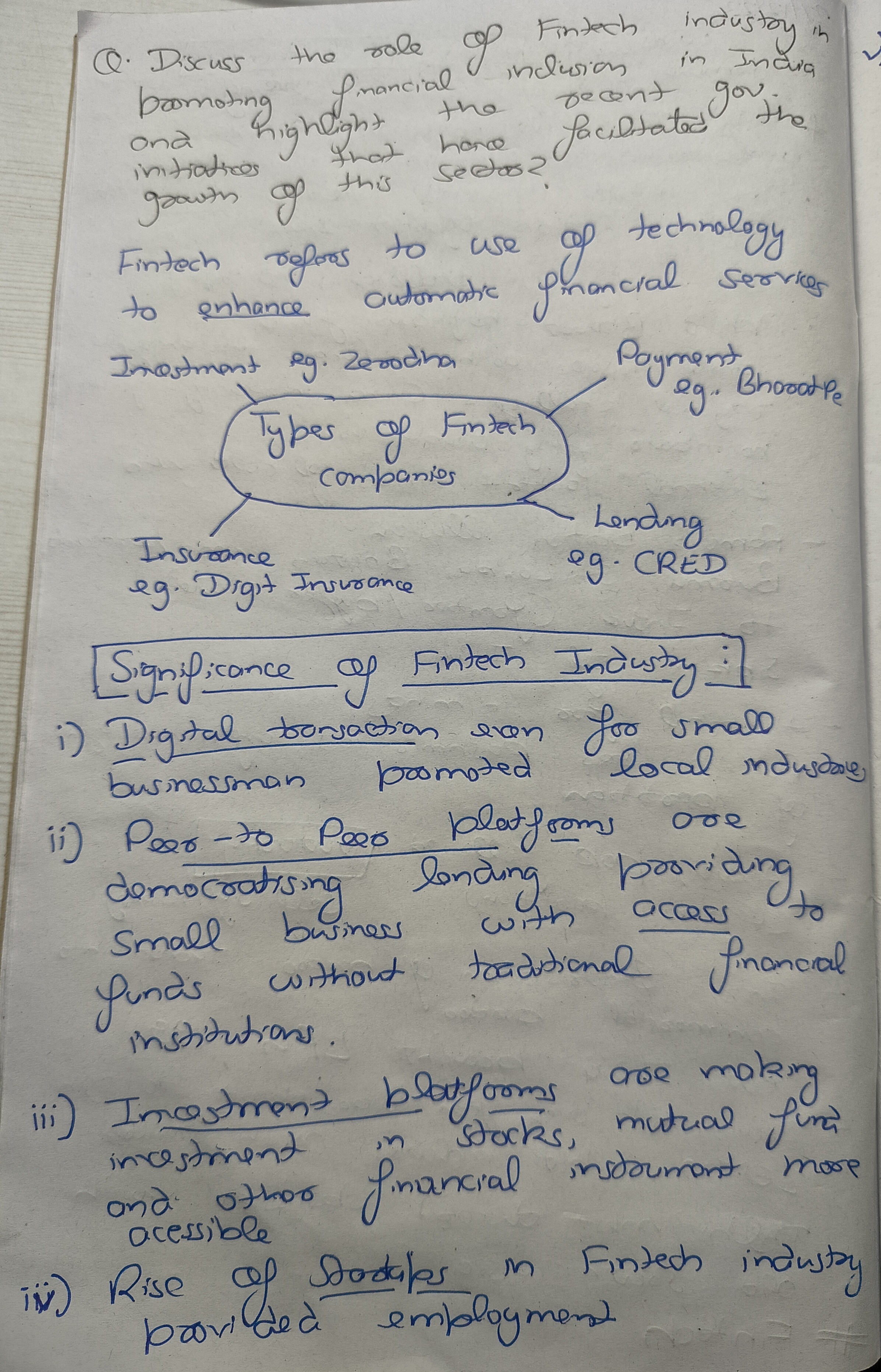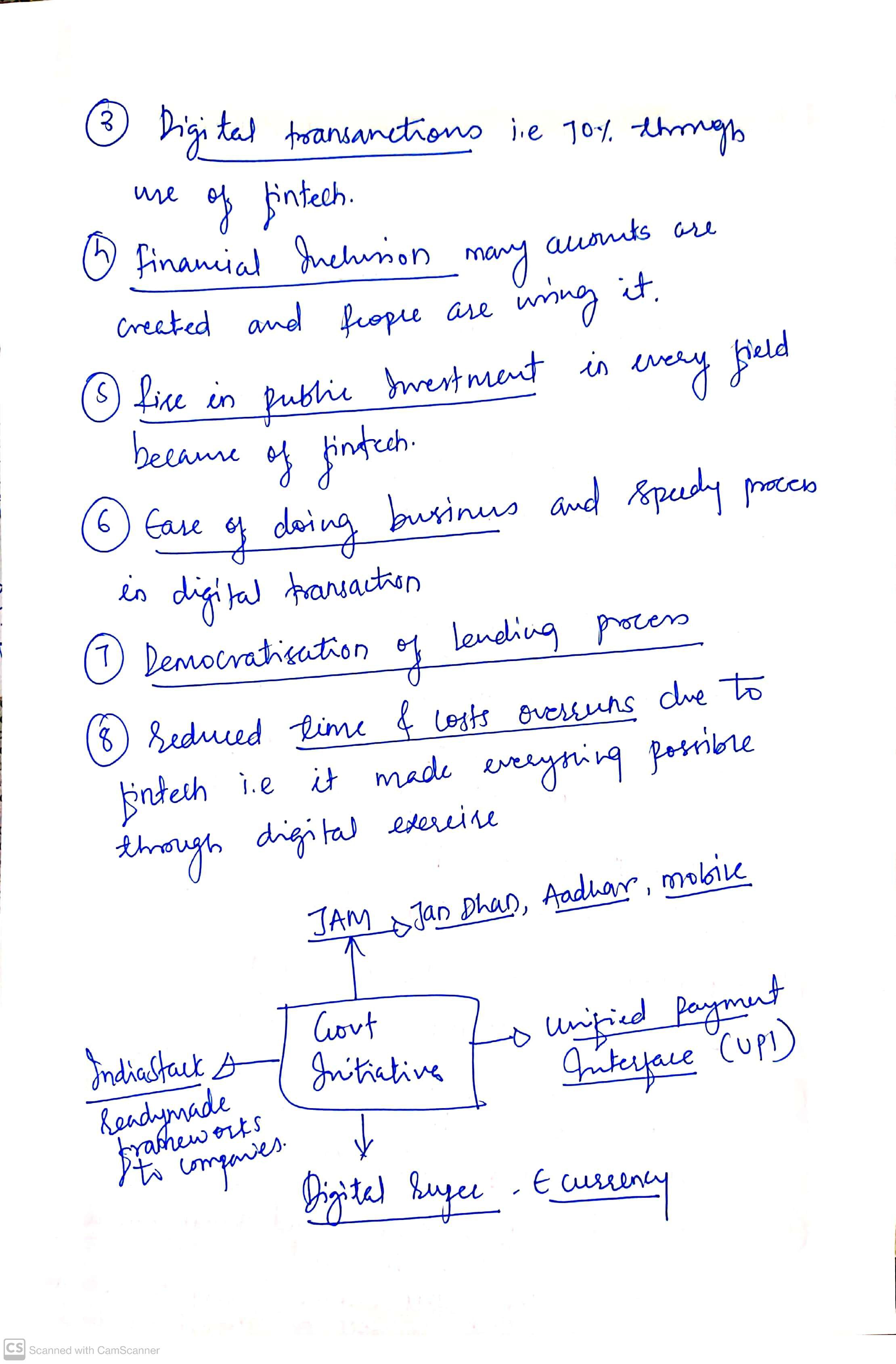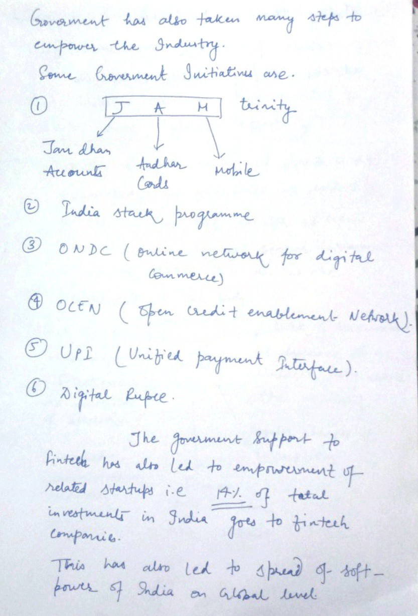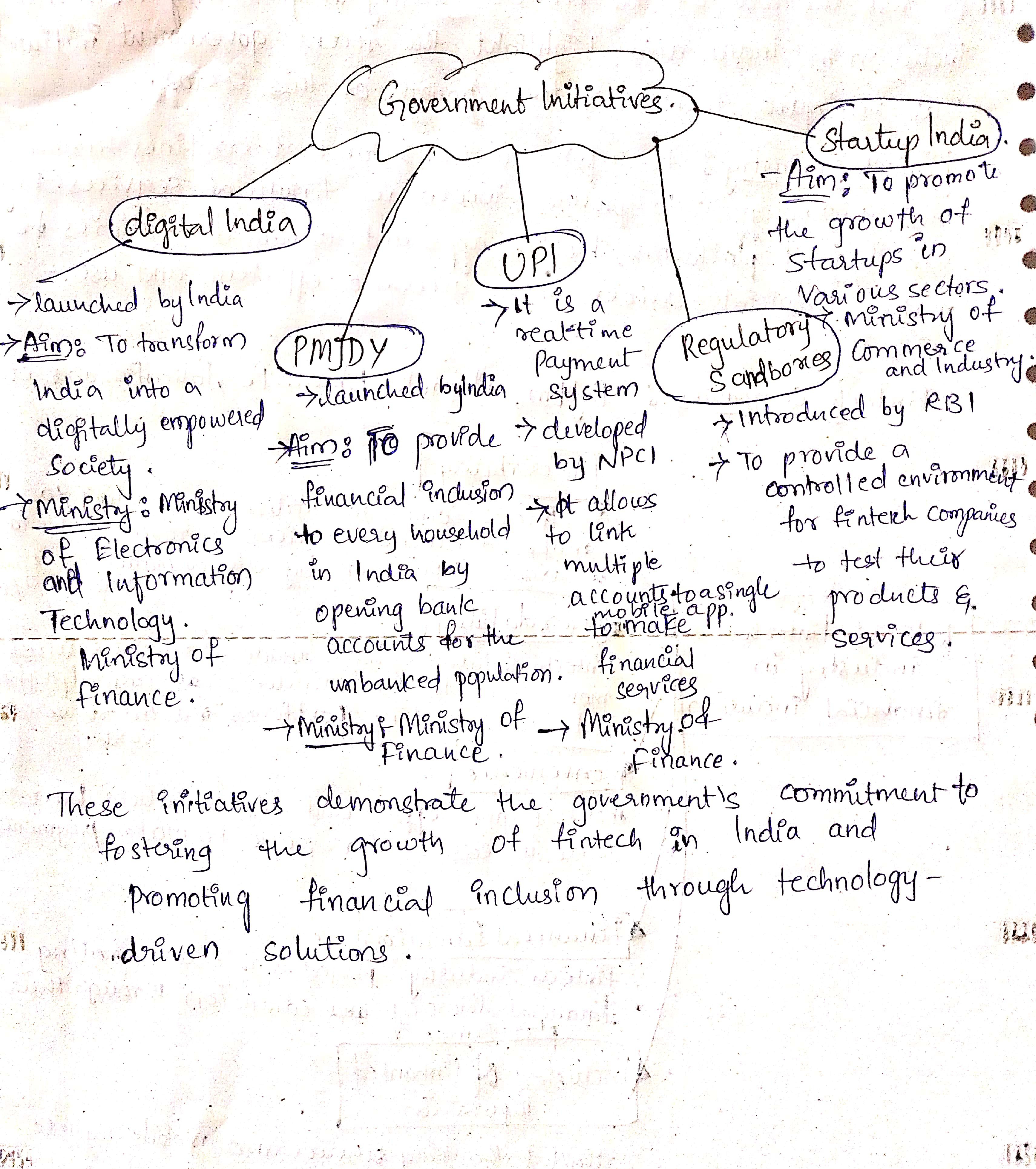 - Outline key government policies and programs that have supported fintech growth, such as Jan DhanYojana, Aadhar, UPI, regulatory reforms, and infrastructure initiatives.
