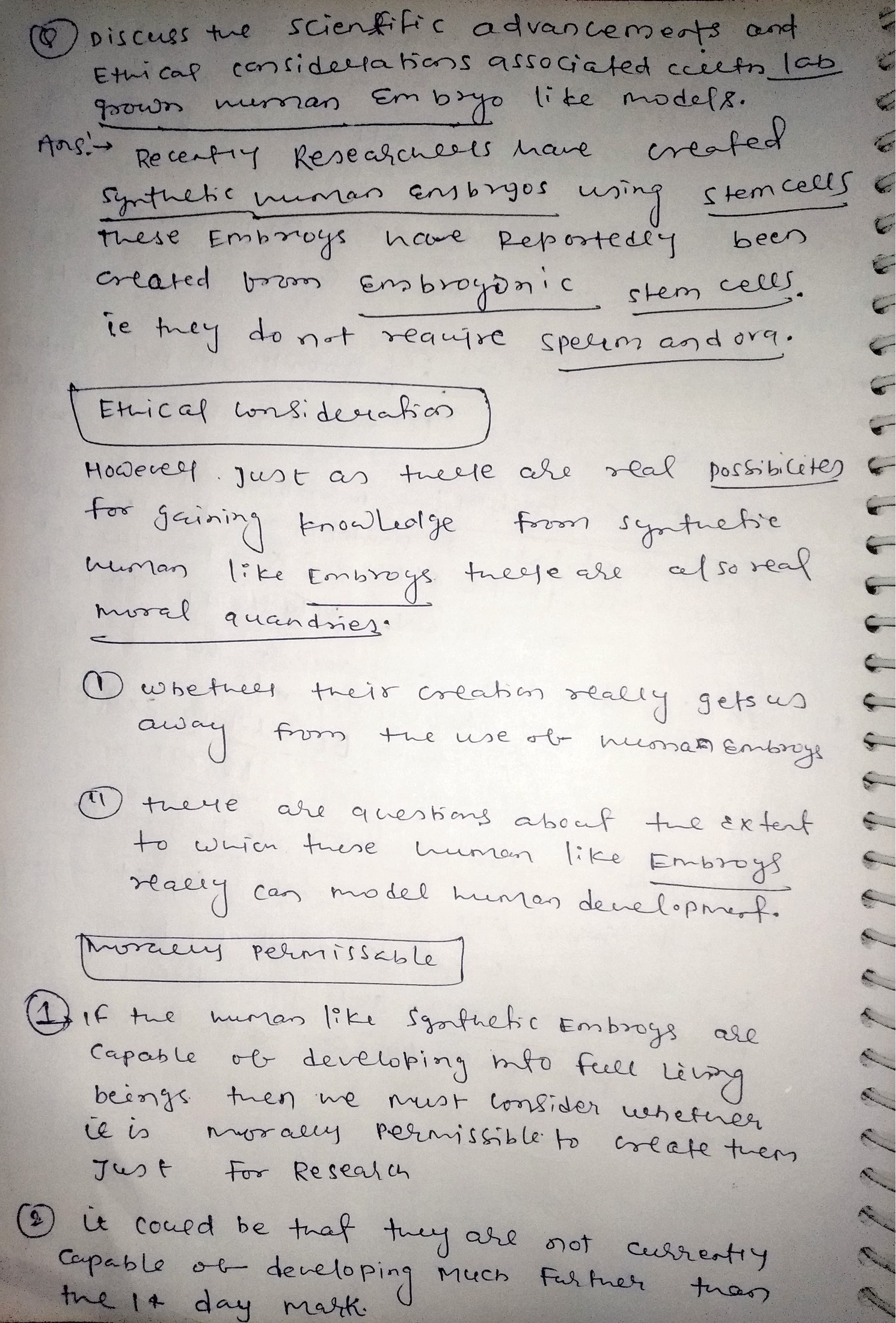 - Detail the recent development of the embryo models without traditional reproductive methods.