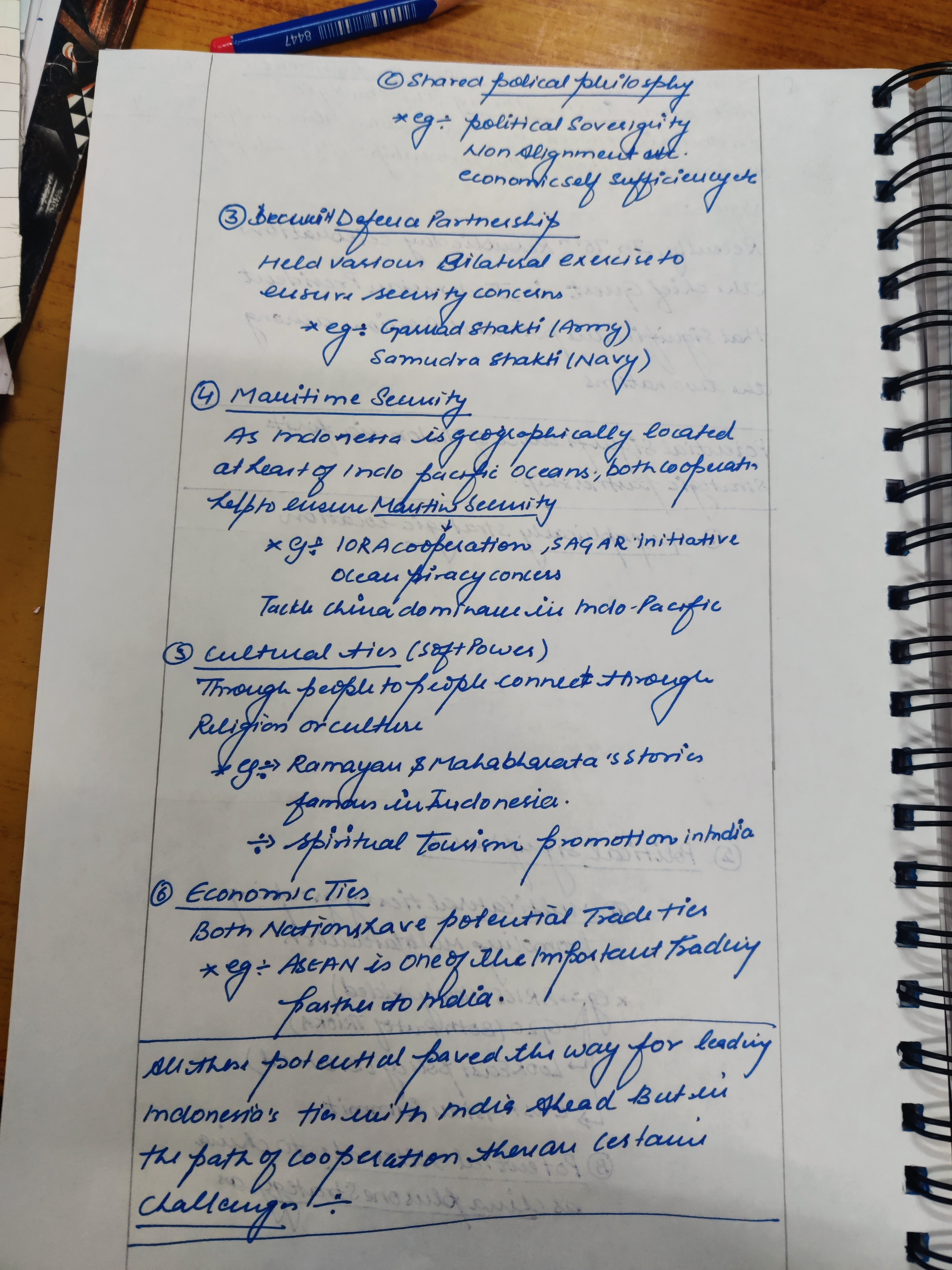 For example: India and Indonesia aligning on ASEAN outlook on Indo Pacific (AOIP) and IPOI frameworks.