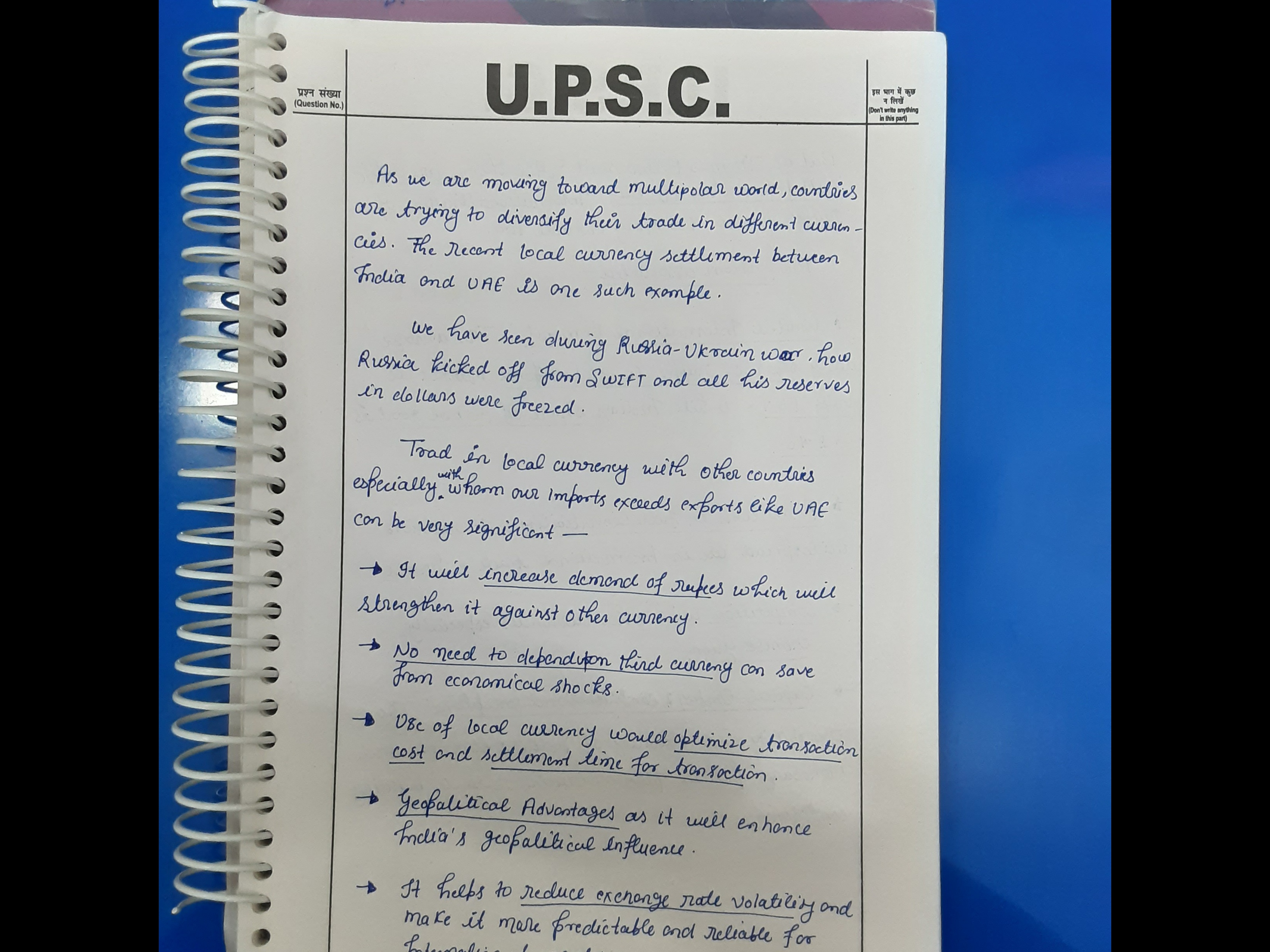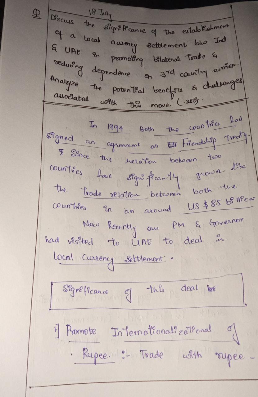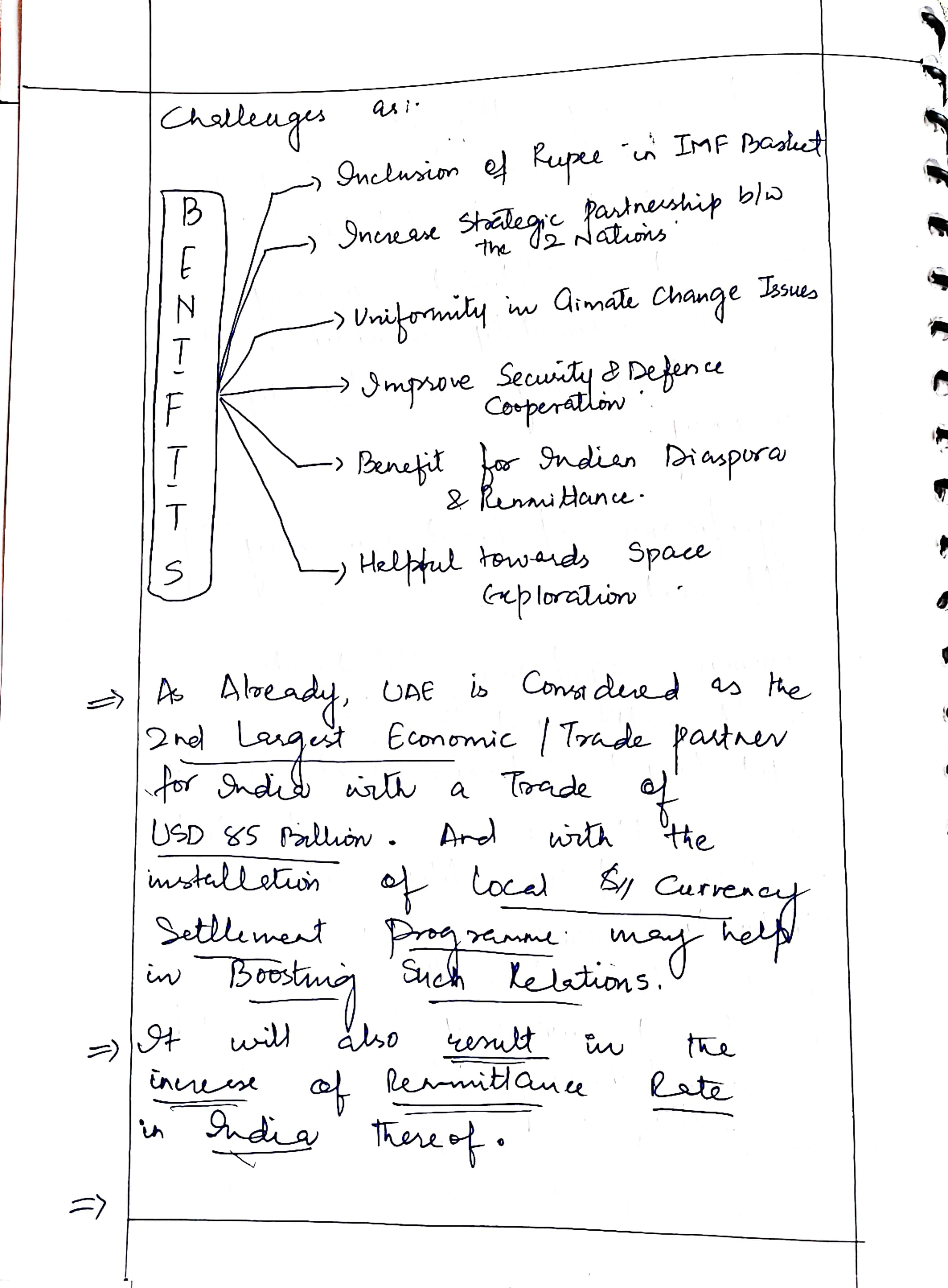 - The reduction of transaction costs and settlement time through the use of domestic currencies would stimulate commerce, especially in sectors like crude oil, where India is a significant importer from the UAE.