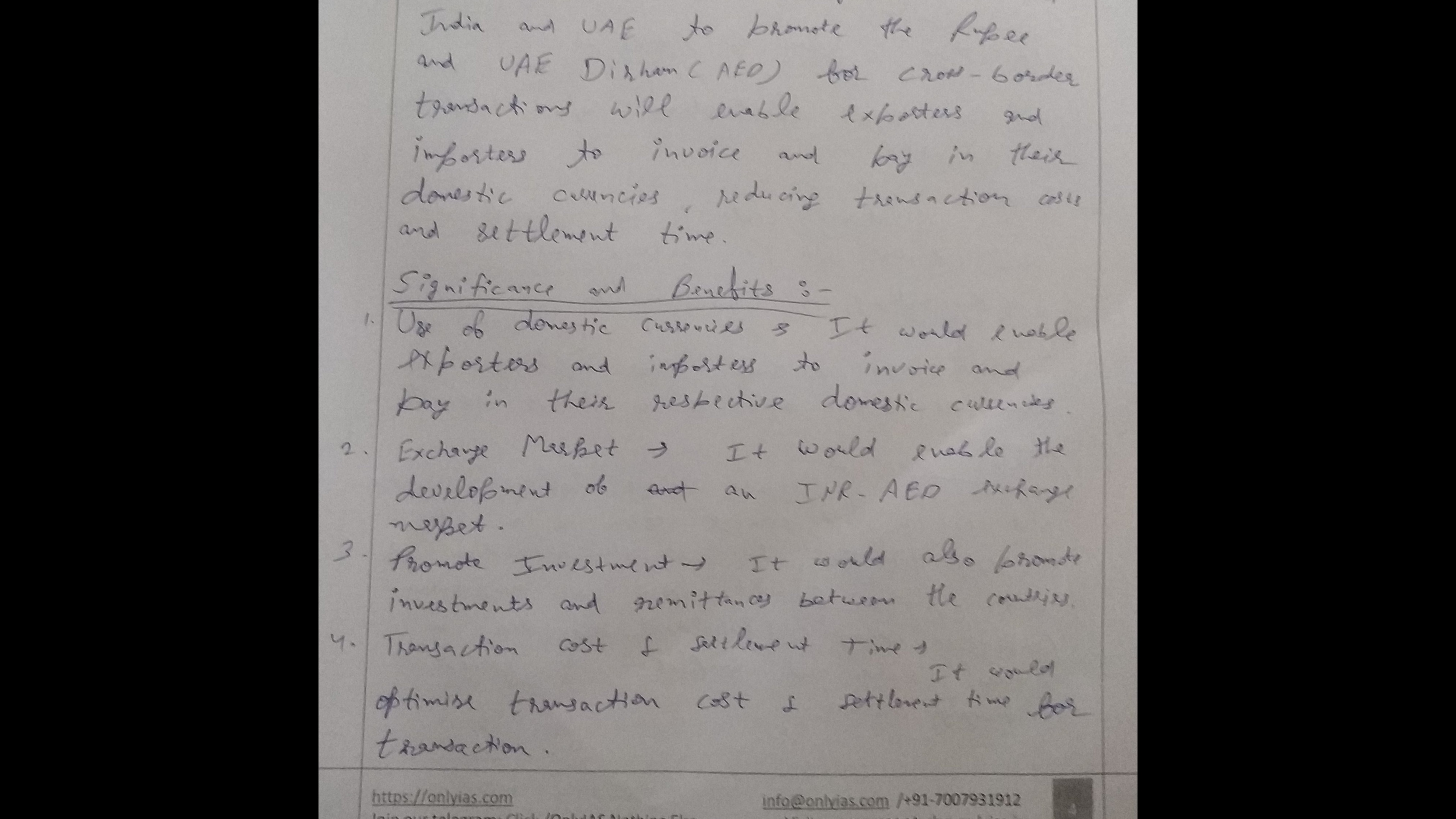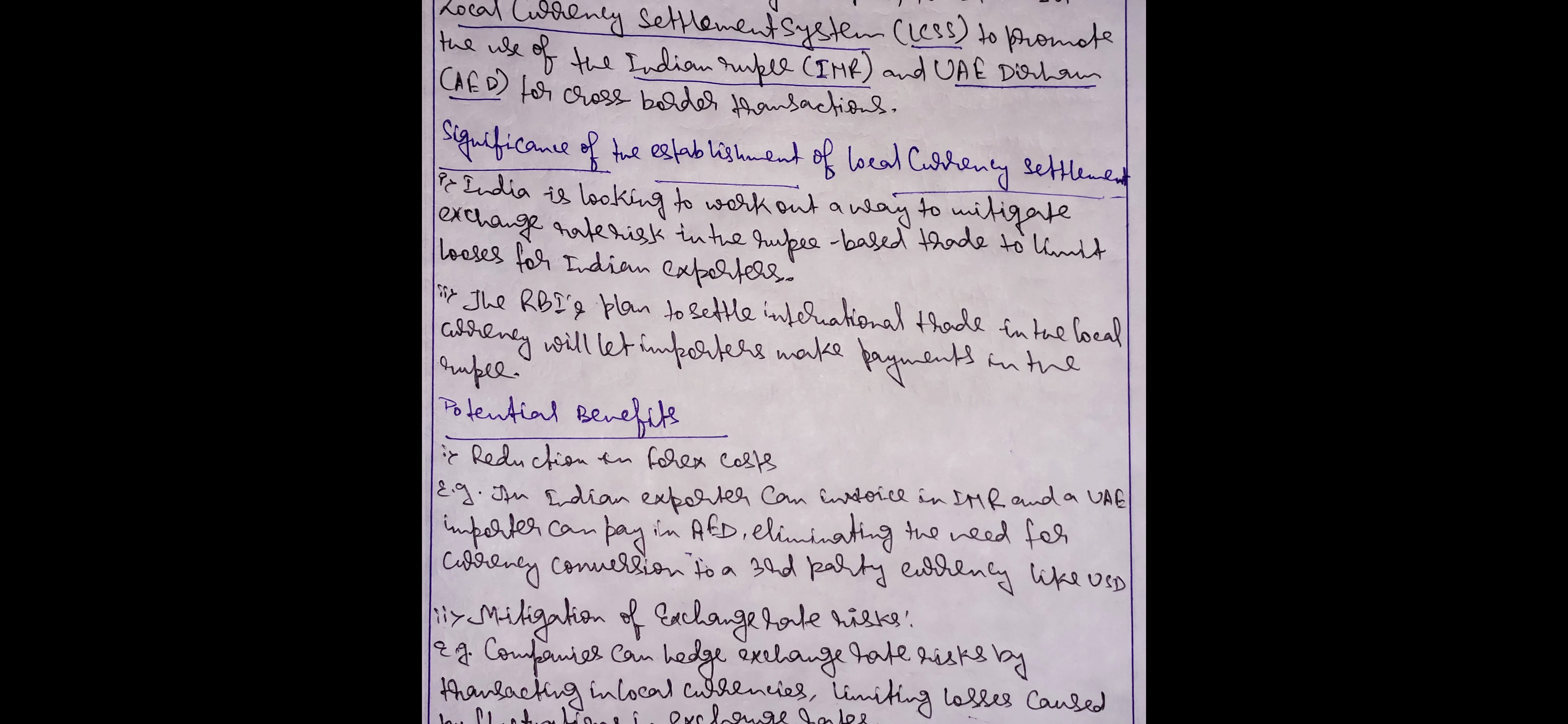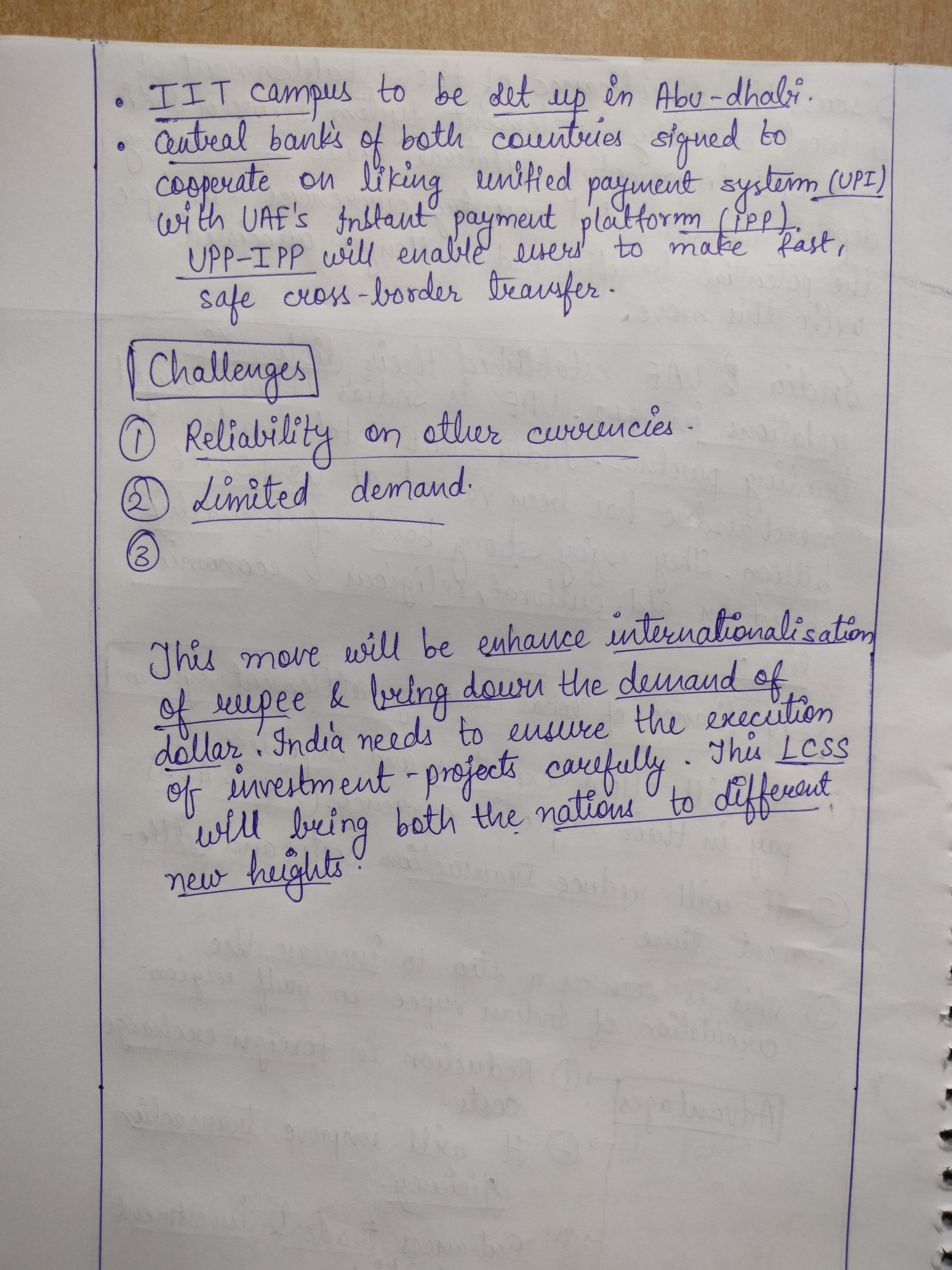 - The LCSS would enable the formation of an INR-AED foreign exchange market, promoting investments and remittances between the two nations and creating a new sphere of financial interactions.