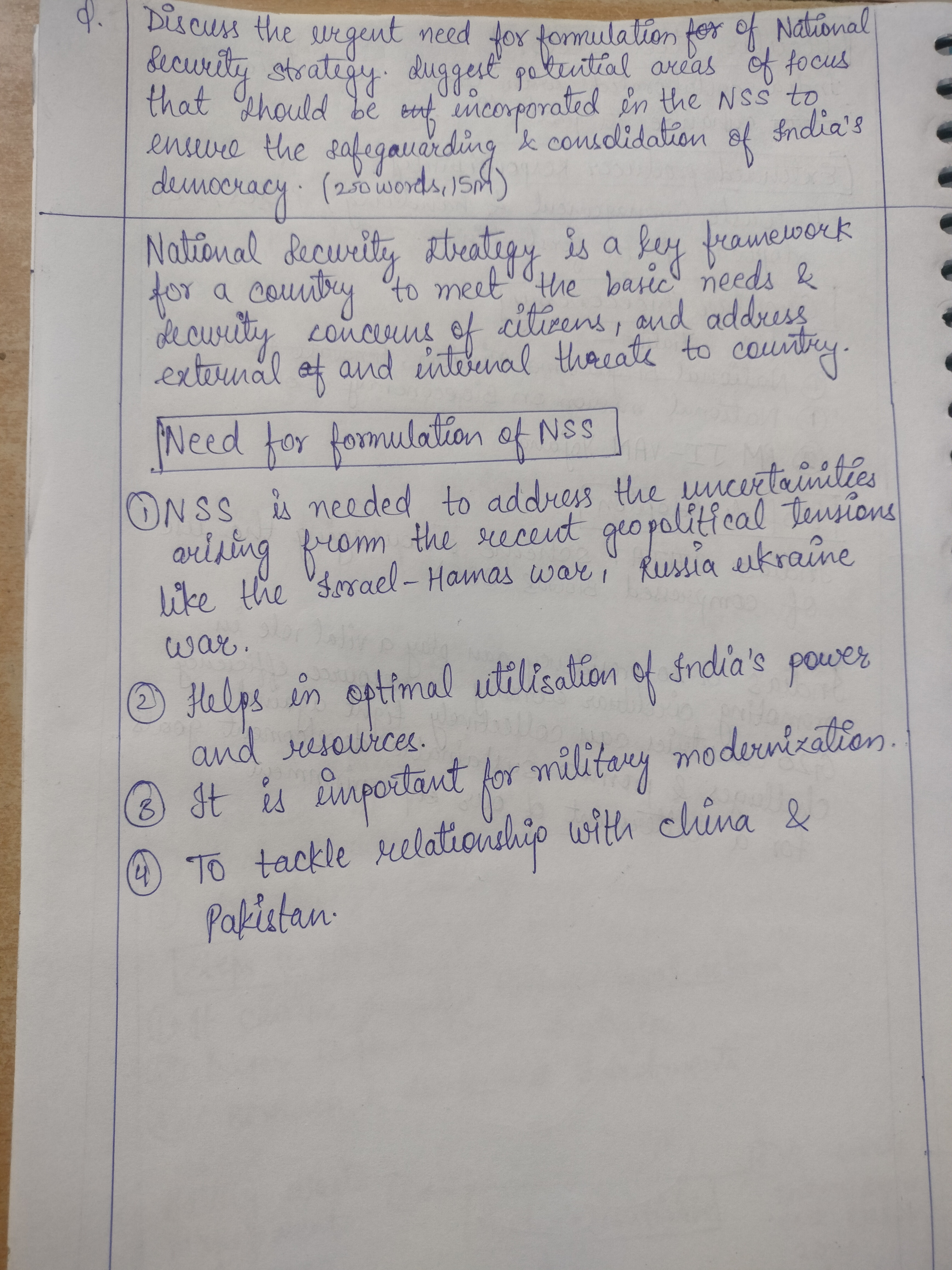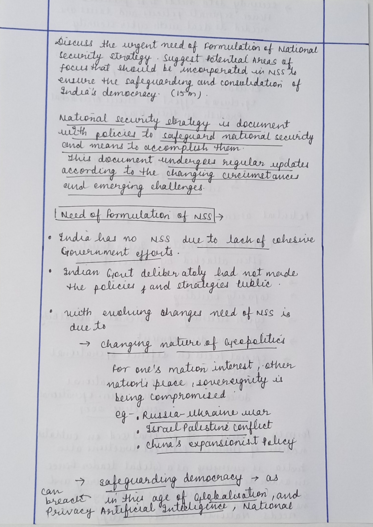 - Conclusion: Conclude by asserting the importance of the NSS in aligning India’s security protocols with contemporary challenges, thereby safeguarding national interests and reinforcing the foundations of its democracy.