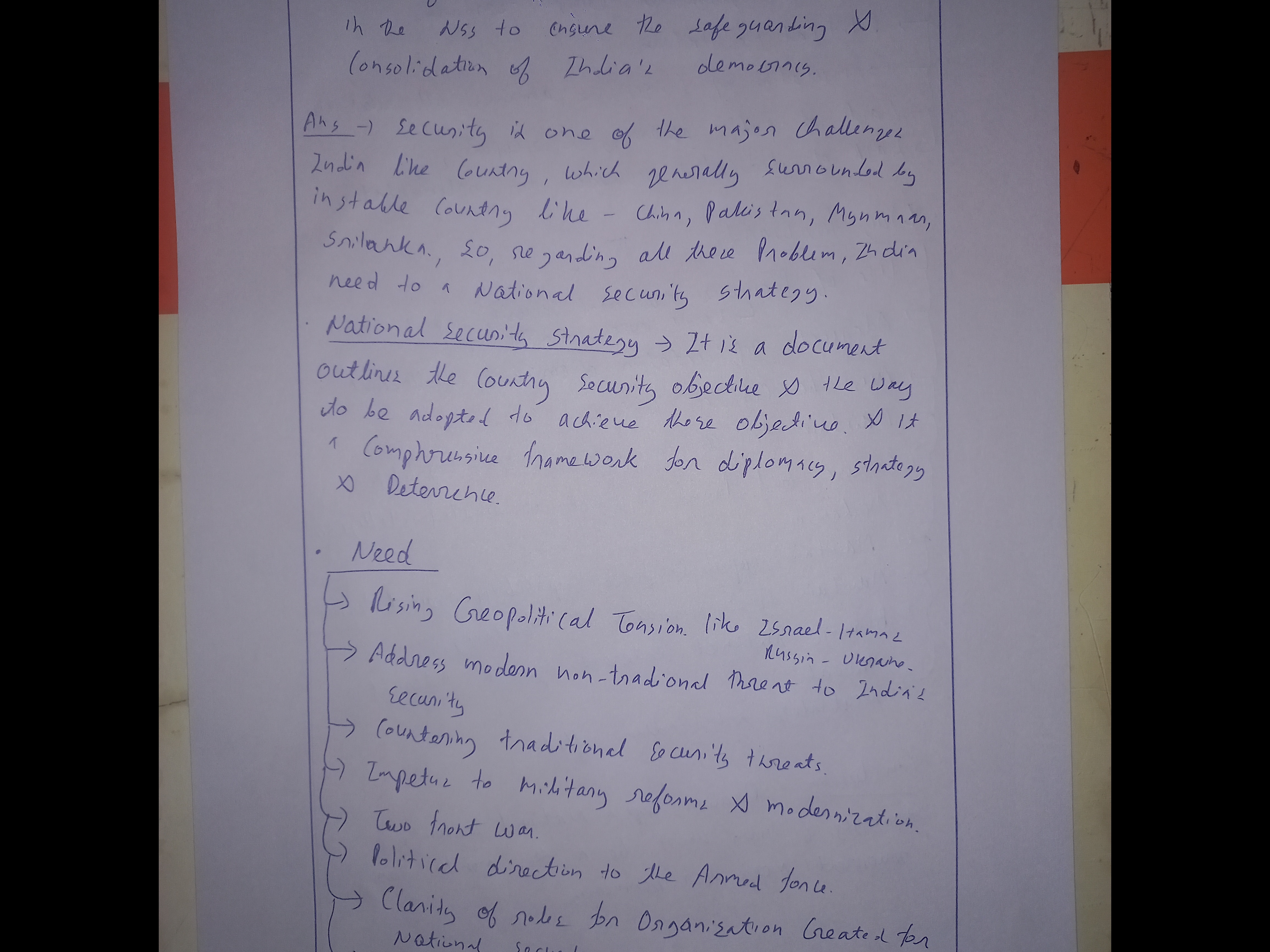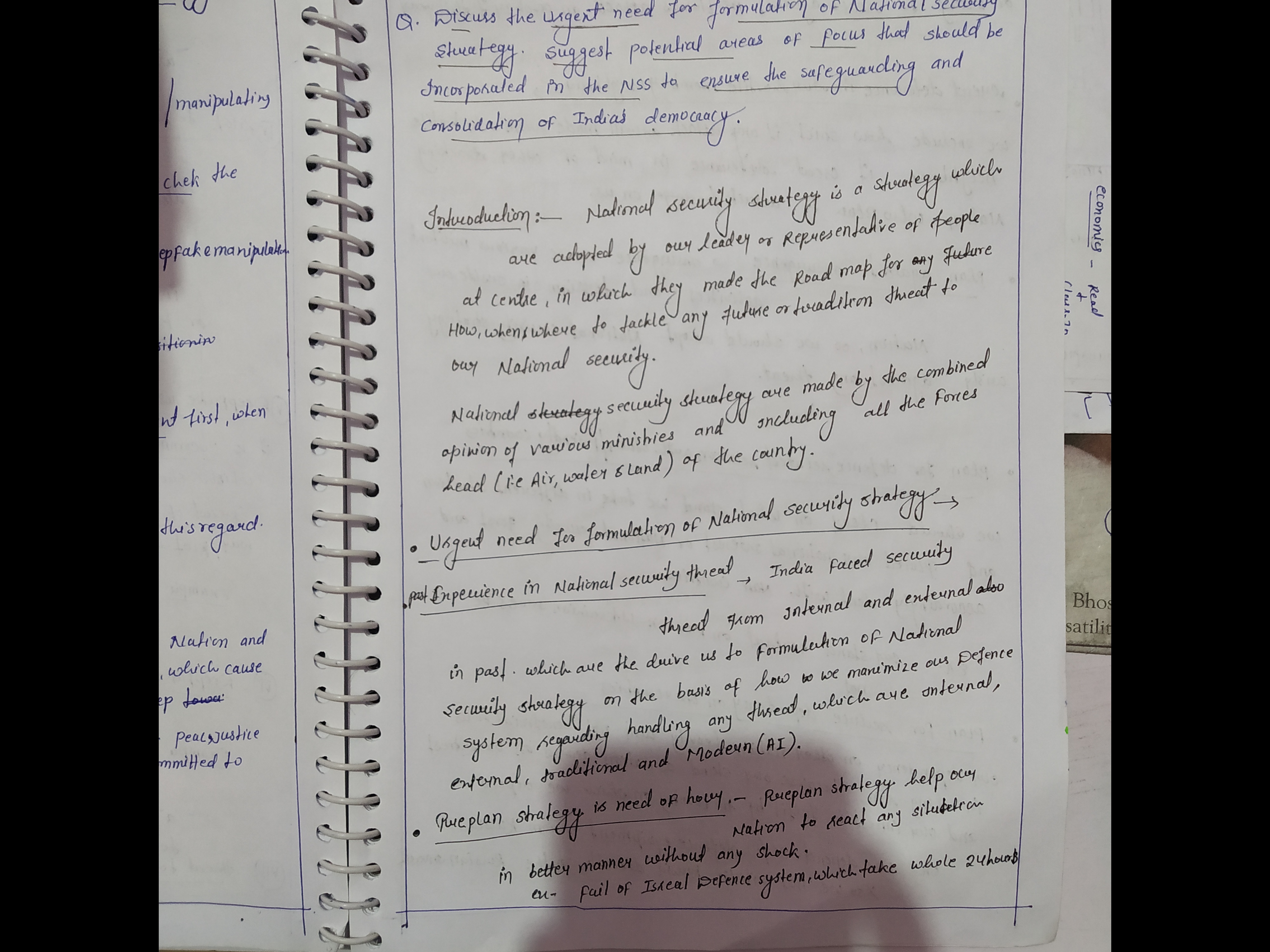 - Introduction: State the importance of India’s initiation into formulating its own National Security Strategy (NSS).