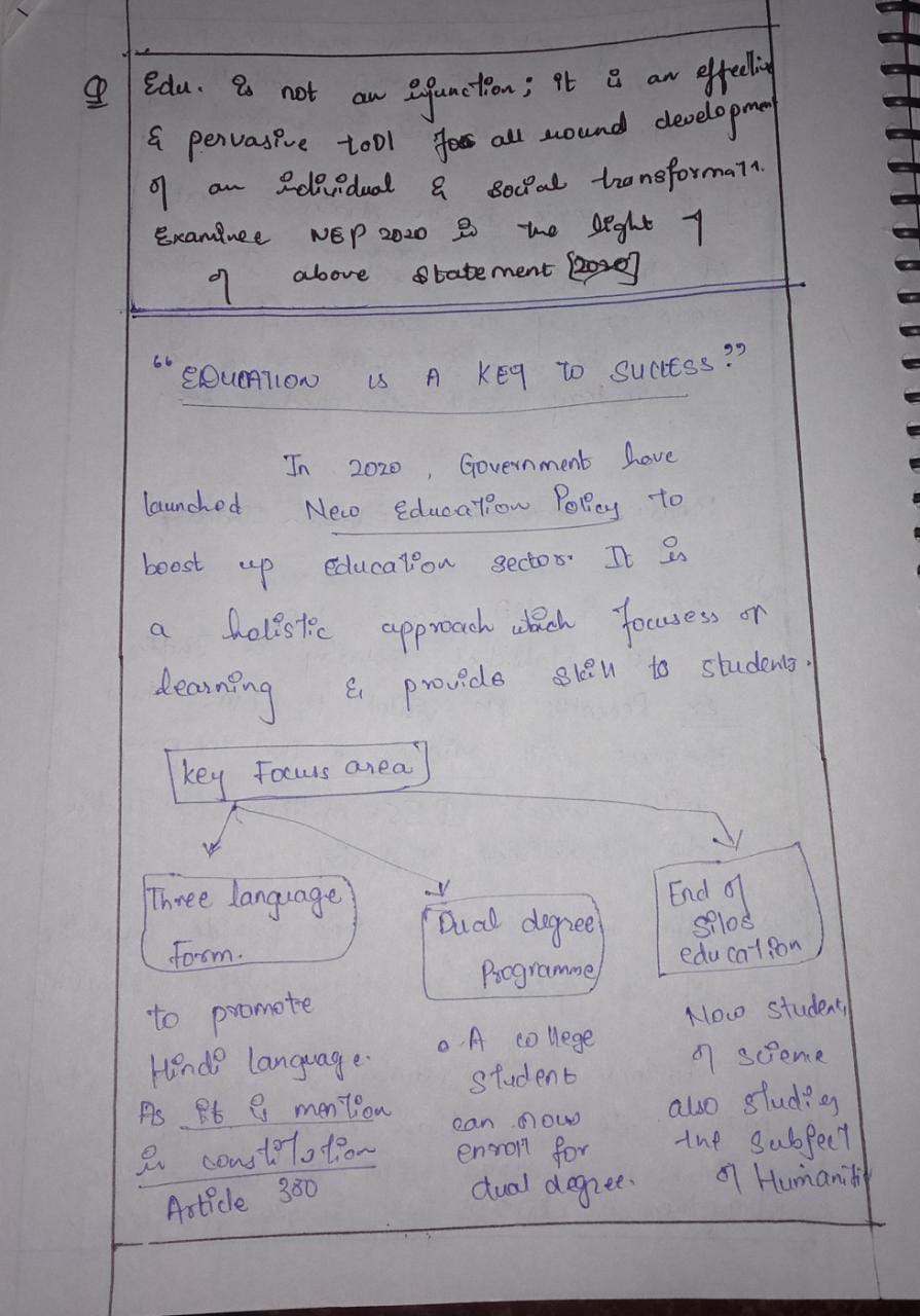 - Introduction: Begin with the broader role and significance of education in both individual and societal development. Introduce the New Education Policy, 2020 as a transformative effort in this direction.