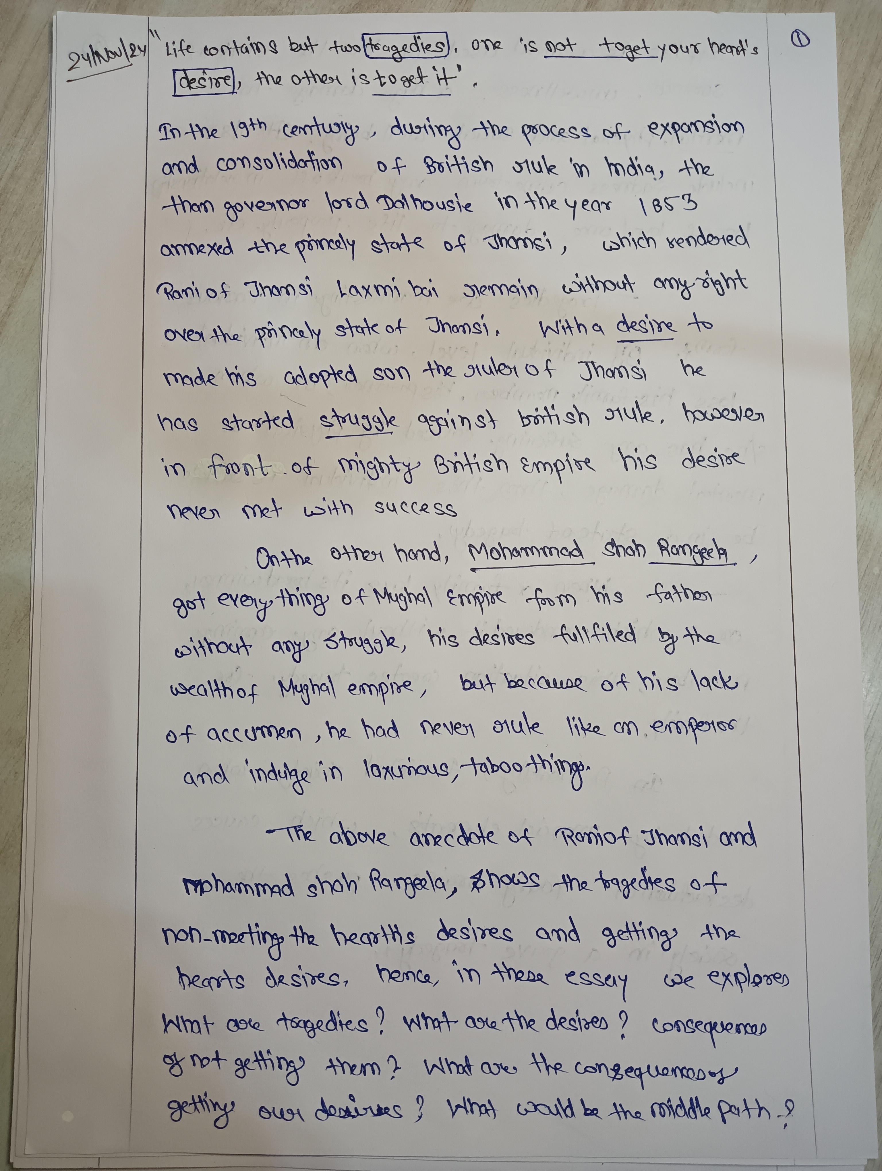 The essay explores the meaning of the above quote, examining the tragedies of unfulfilled and fulfilled desires, and ultimately, it delves into the concept of finding joy independent of external circumstances.