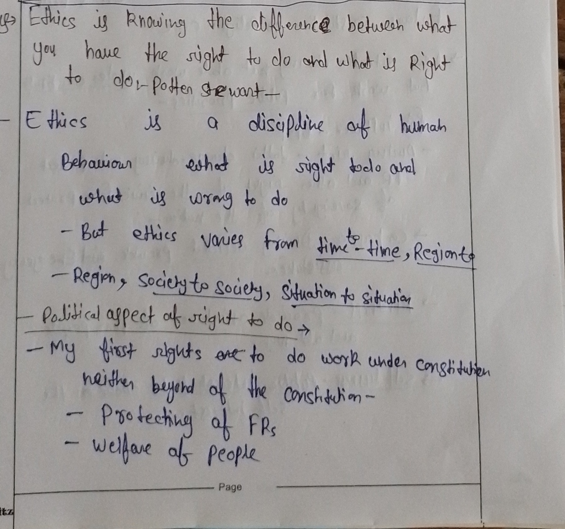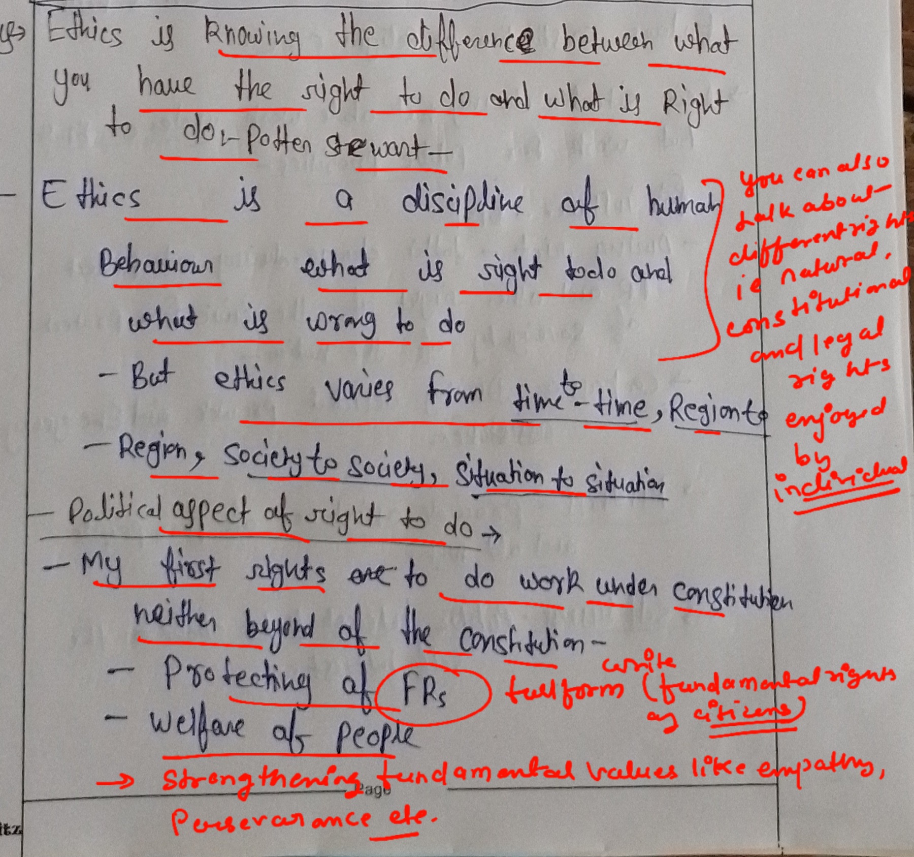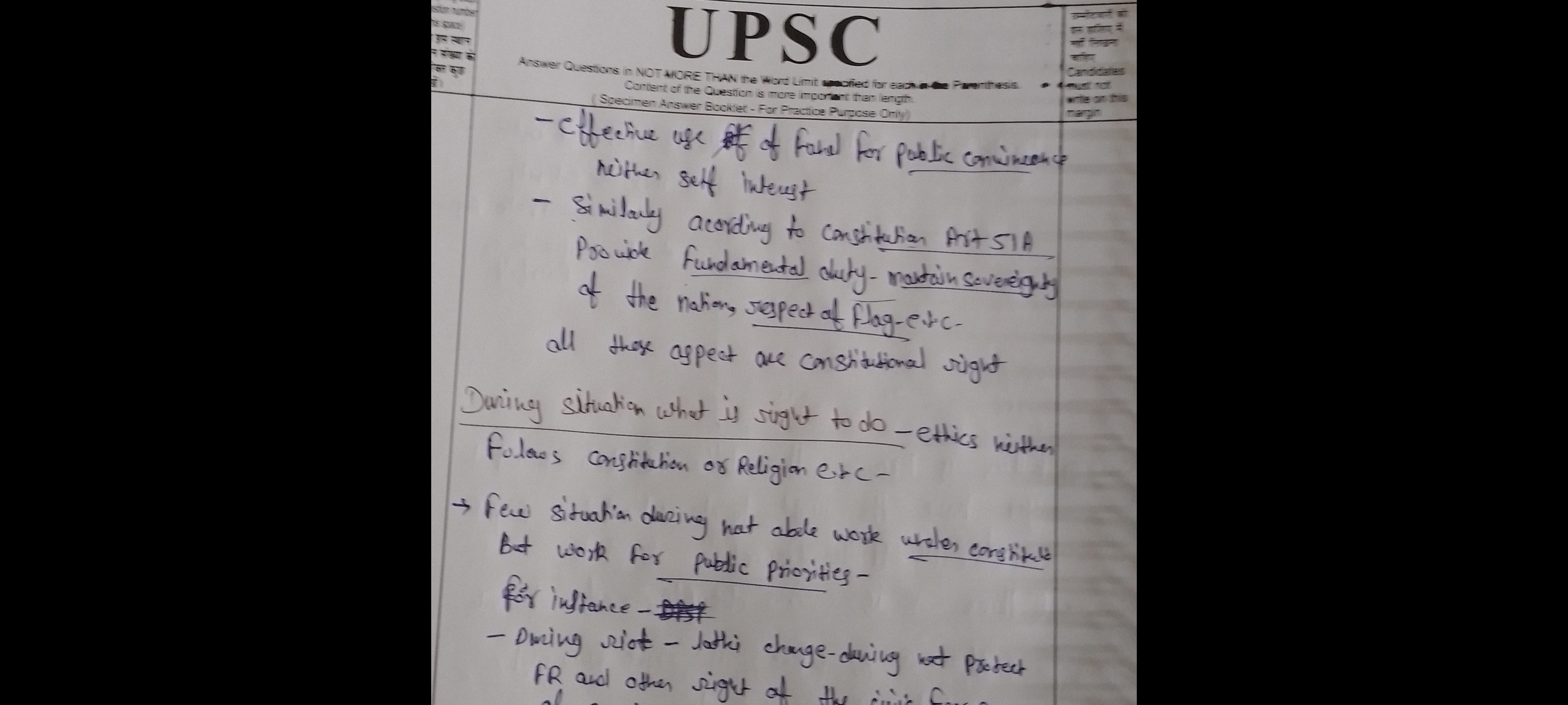 For instance, when activist Medha Patkar leads peaceful protests against unjust land acquisitions and displacement, she exercises her right to protest while adhering to ethical principles of non-violence and respect for public safety.