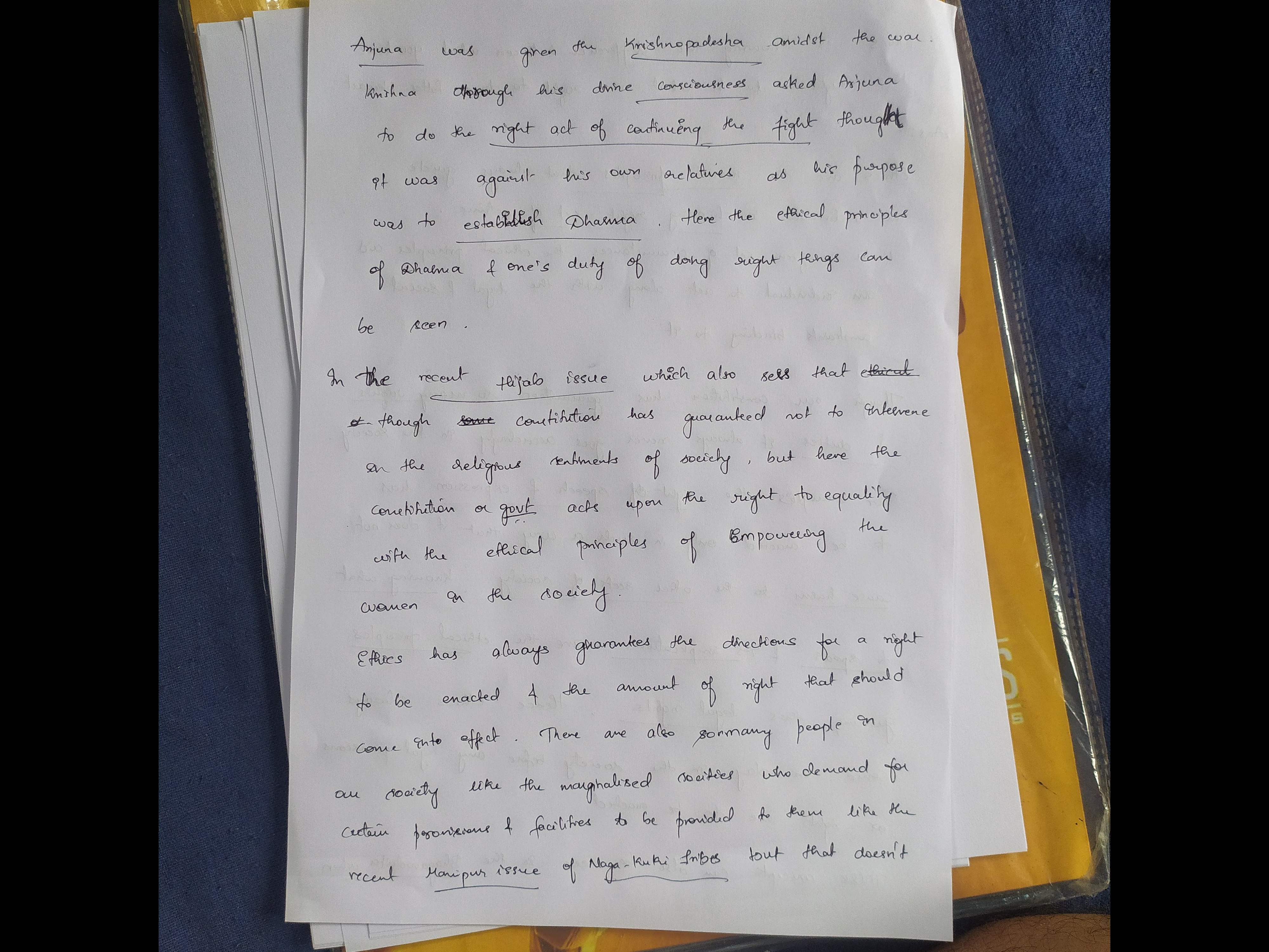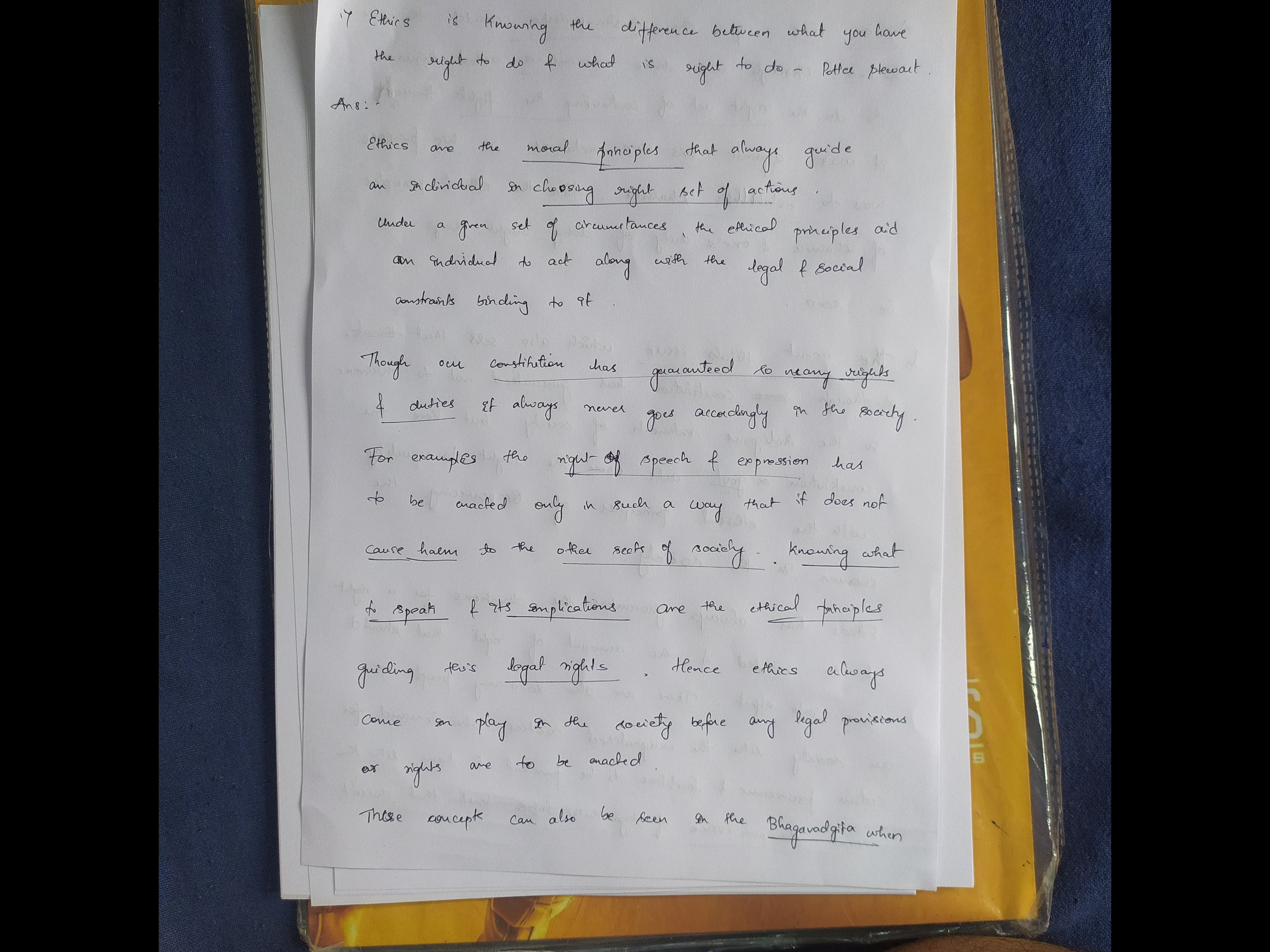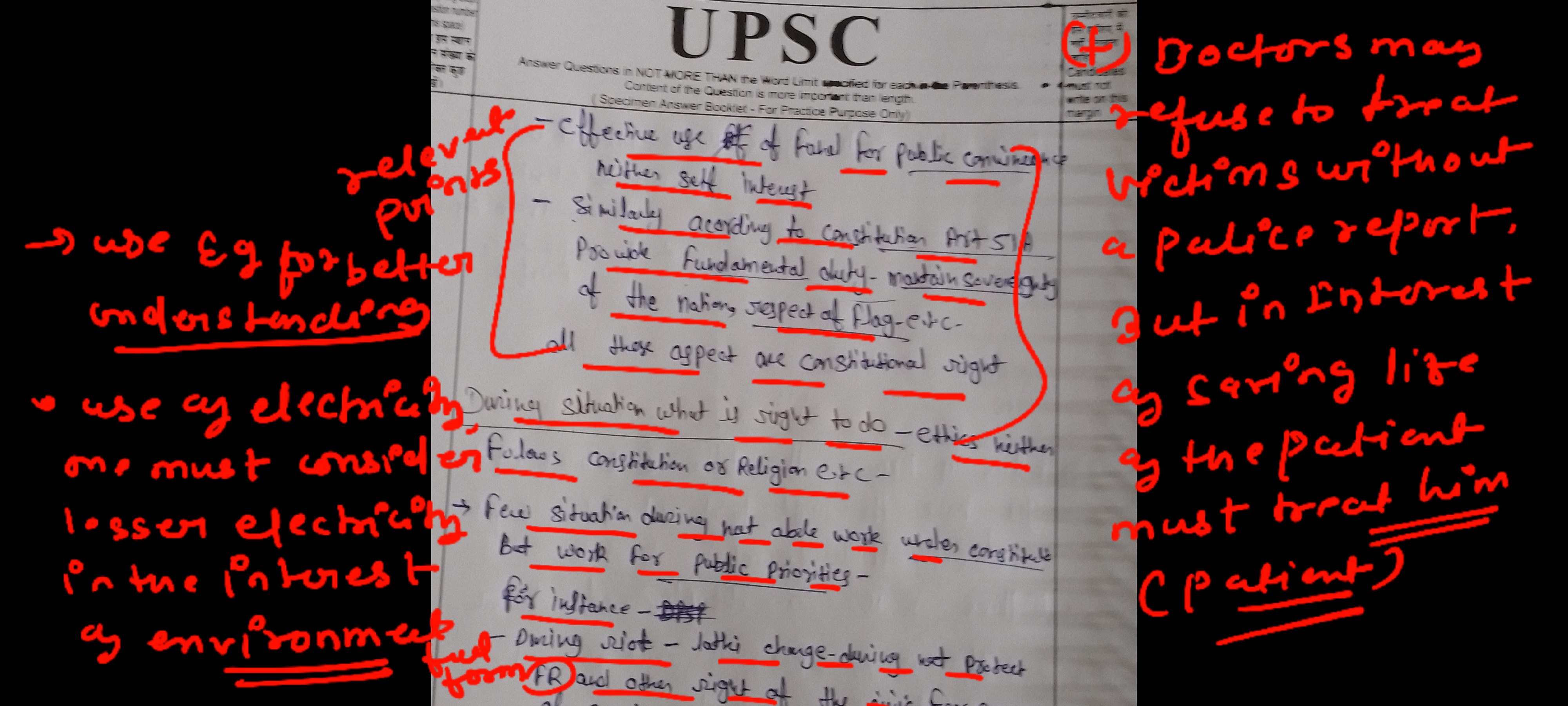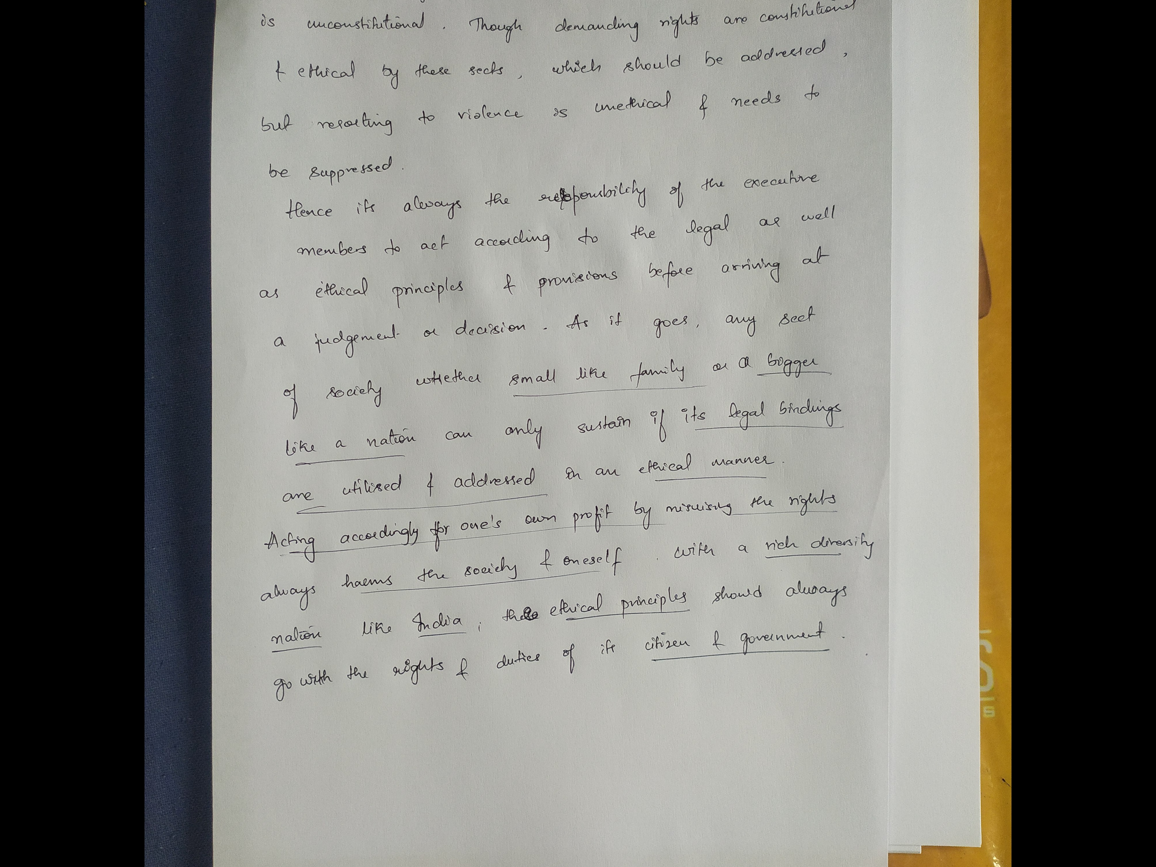 For instance, when activist Medha Patkar leads peaceful protests against unjust land acquisitions and displacement, she exercises her right to protest while adhering to ethical principles of non-violence and respect for public safety.