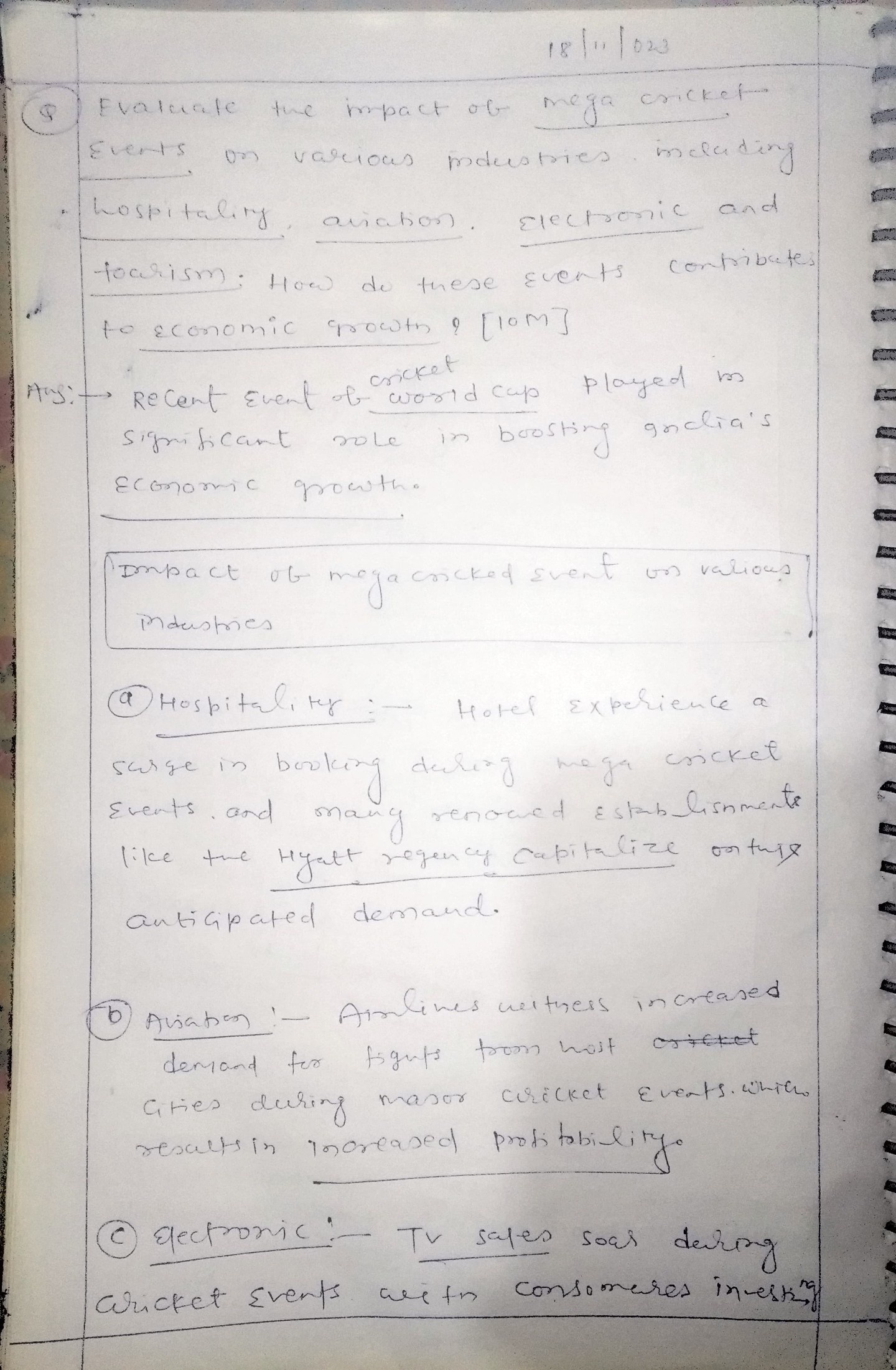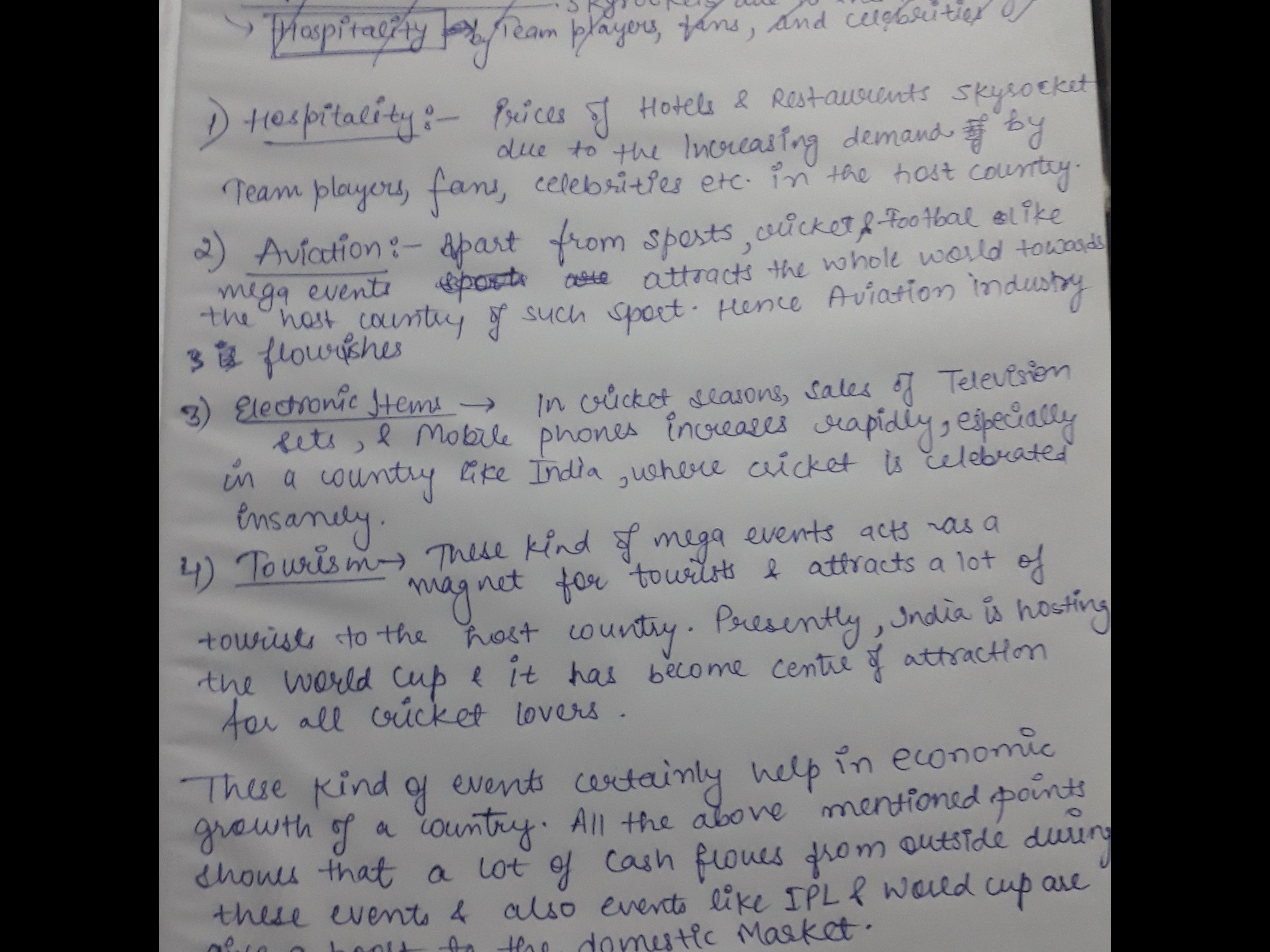 Mega cricket events have a substantial and multi-faceted economic impact on various industries. They not only boost direct revenue in sectors like hospitality, aviation, electronics, and tourism but also contribute to broader economic growth through the multiplier effect, employment generation, and infrastructure development. Additionally, the global exposure and brand enhancement for host cities or countries are invaluable. As such, these events are significant not just for sports enthusiasts but also for the economic health and global standing of the host nations.