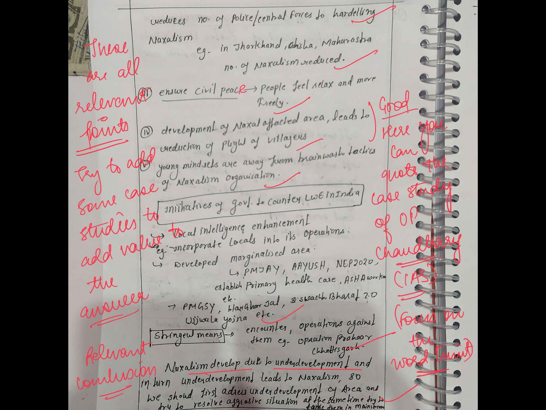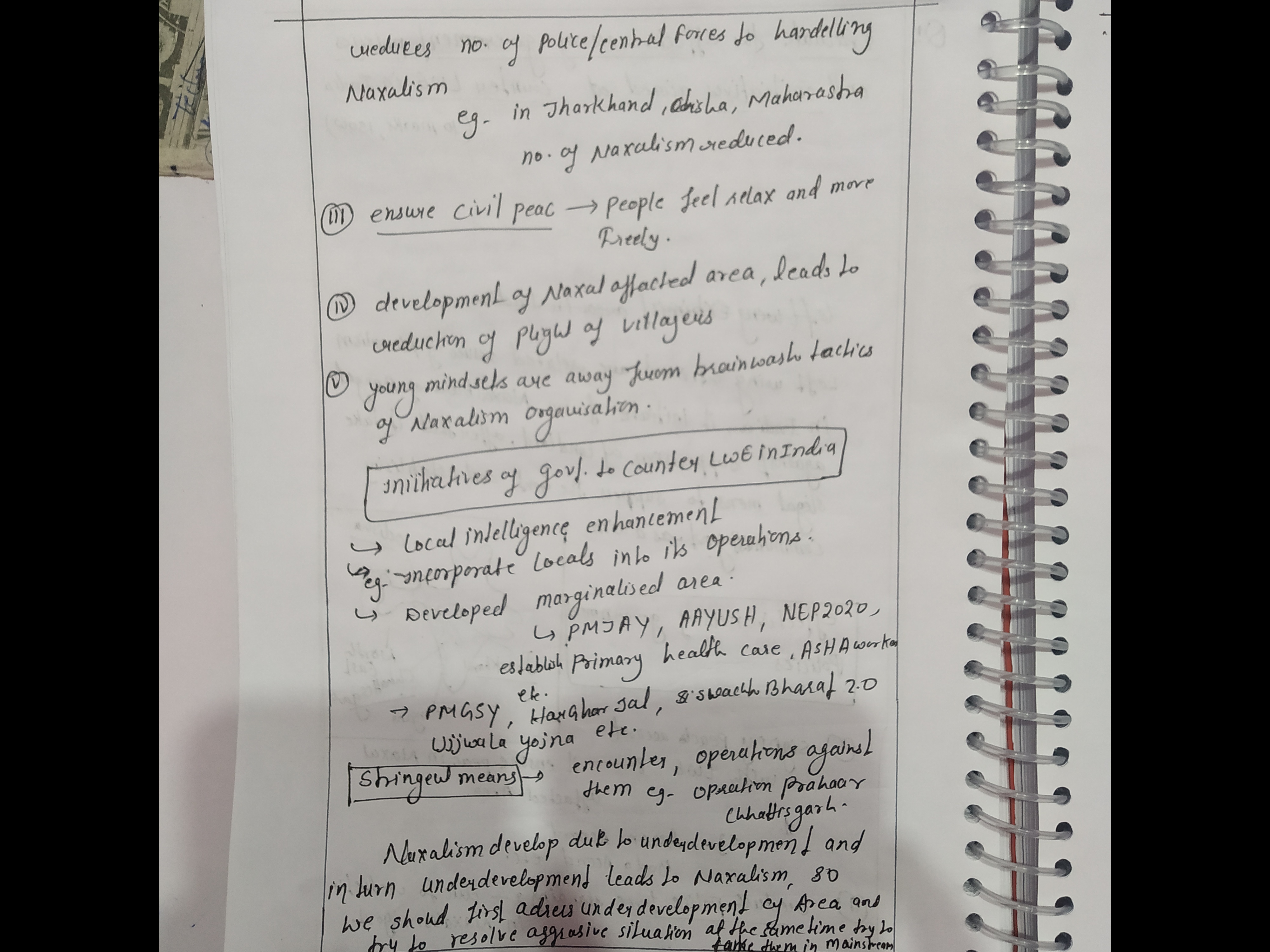 For example: The Pradhan Mantri Gram Sadak Yojana built 35,000 km of roads in Maoist-affected regions, improving accessibility and reducing Maoist influence.