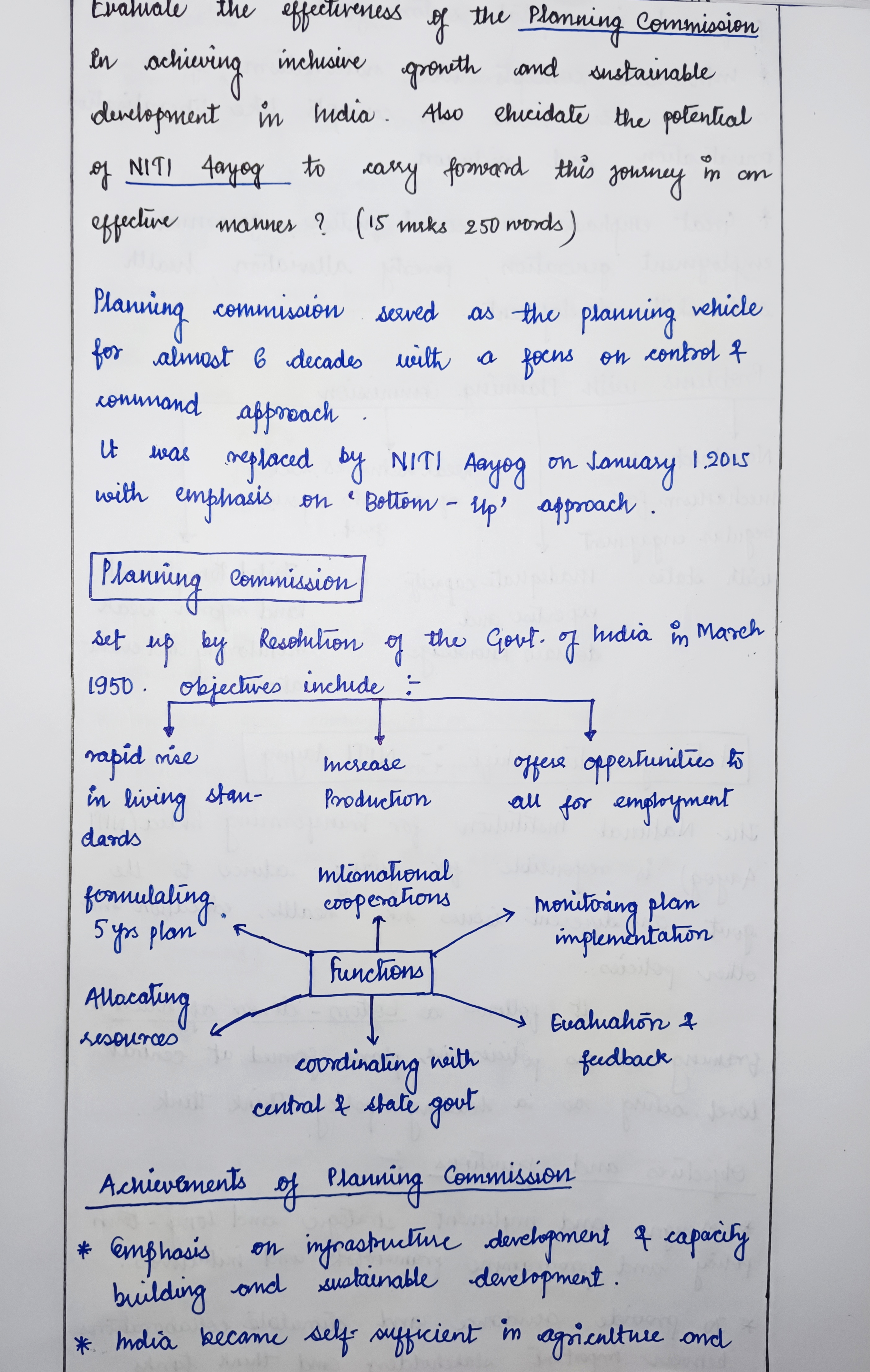 - Describe the effectiveness of the Planning Commission in the achievement of sustainable development.
