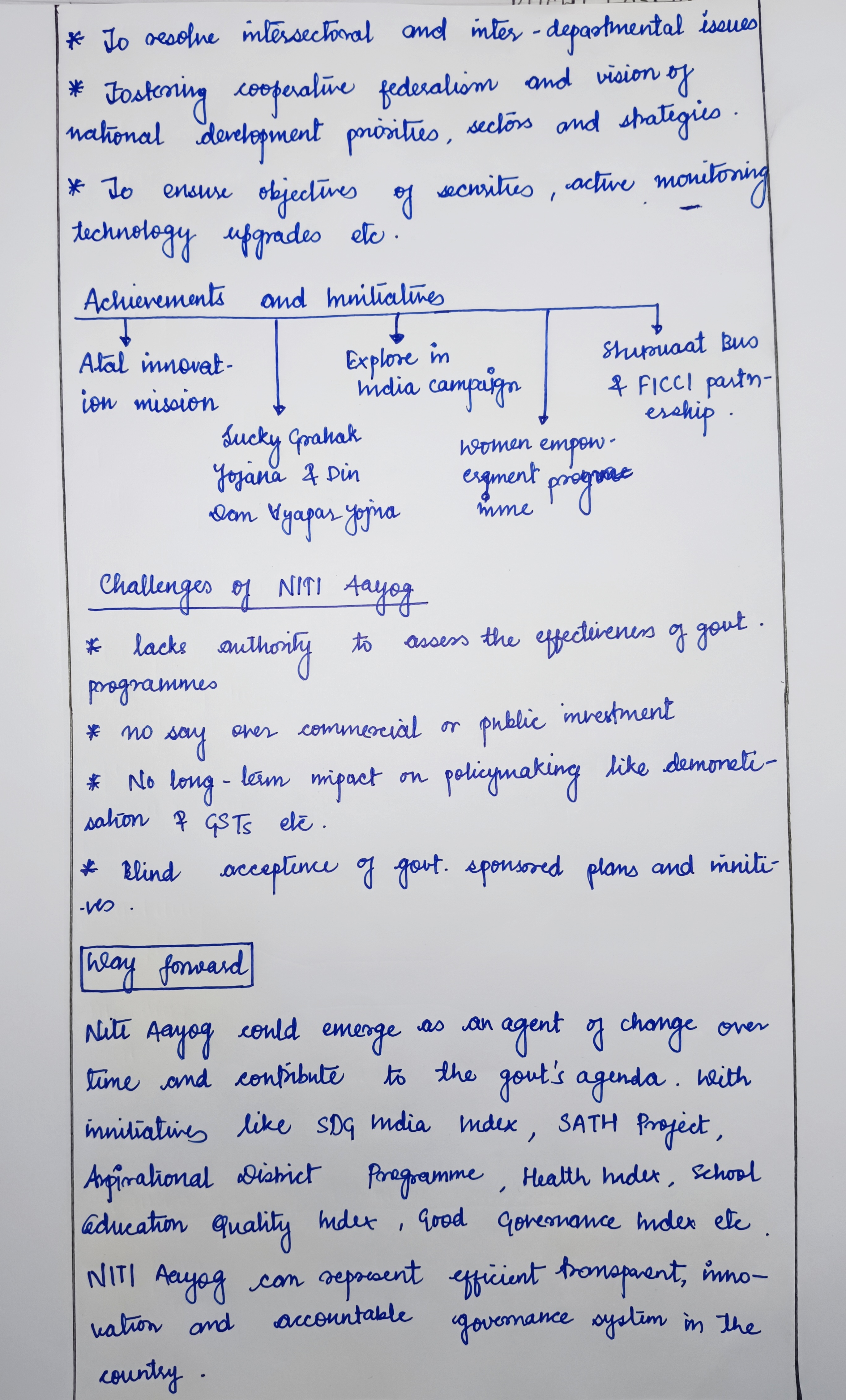 - Cooperative Federalism: NITI Aayog’s approach fosters collaboration with states, aligning policies with local needs. For example, the Aspirational Districts Programme tailors interventions based on local requirements.