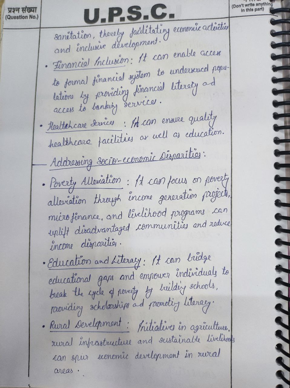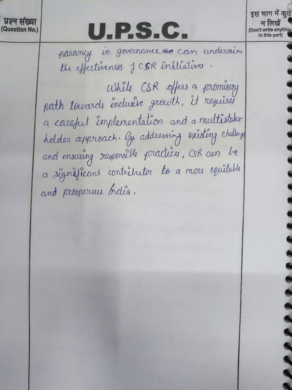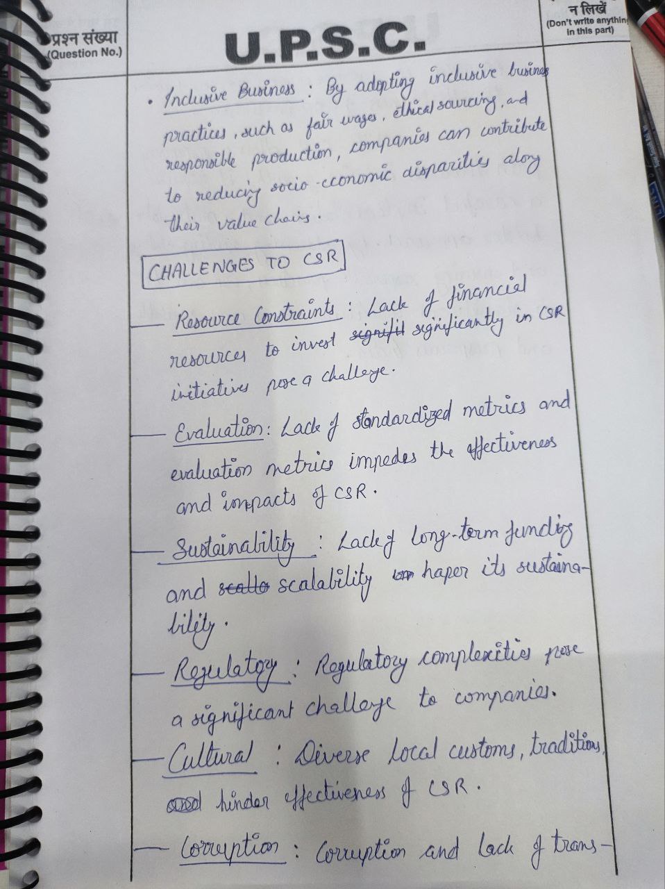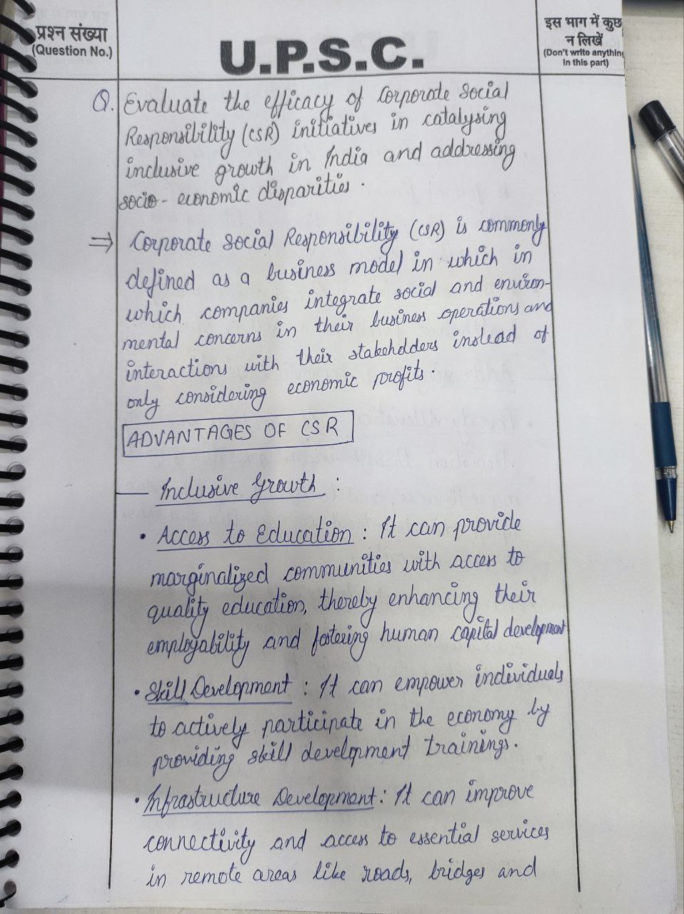 - Write the efficacy of CSR initiatives in catalysing inclusive growth and addressing socio-economic disparities