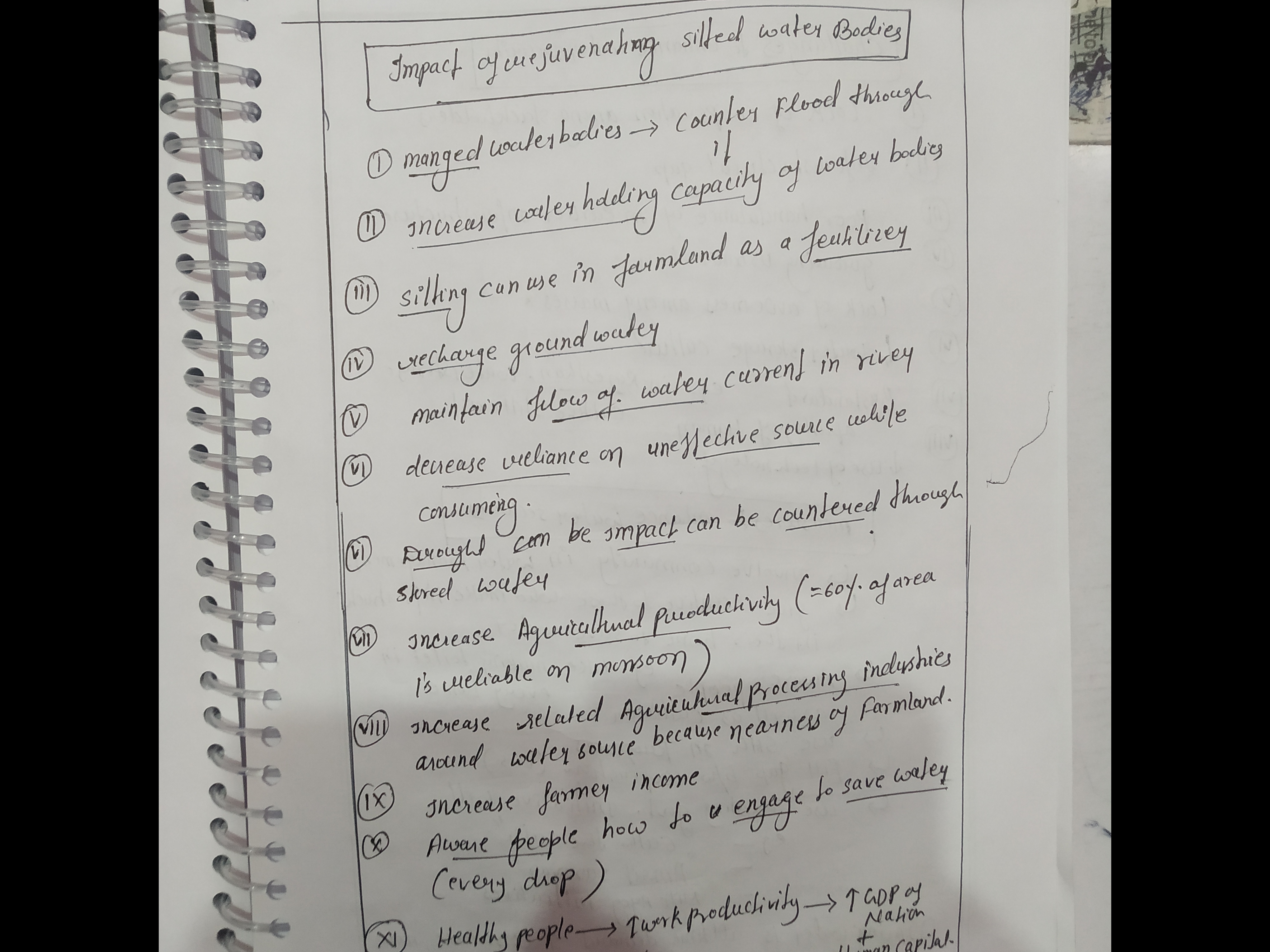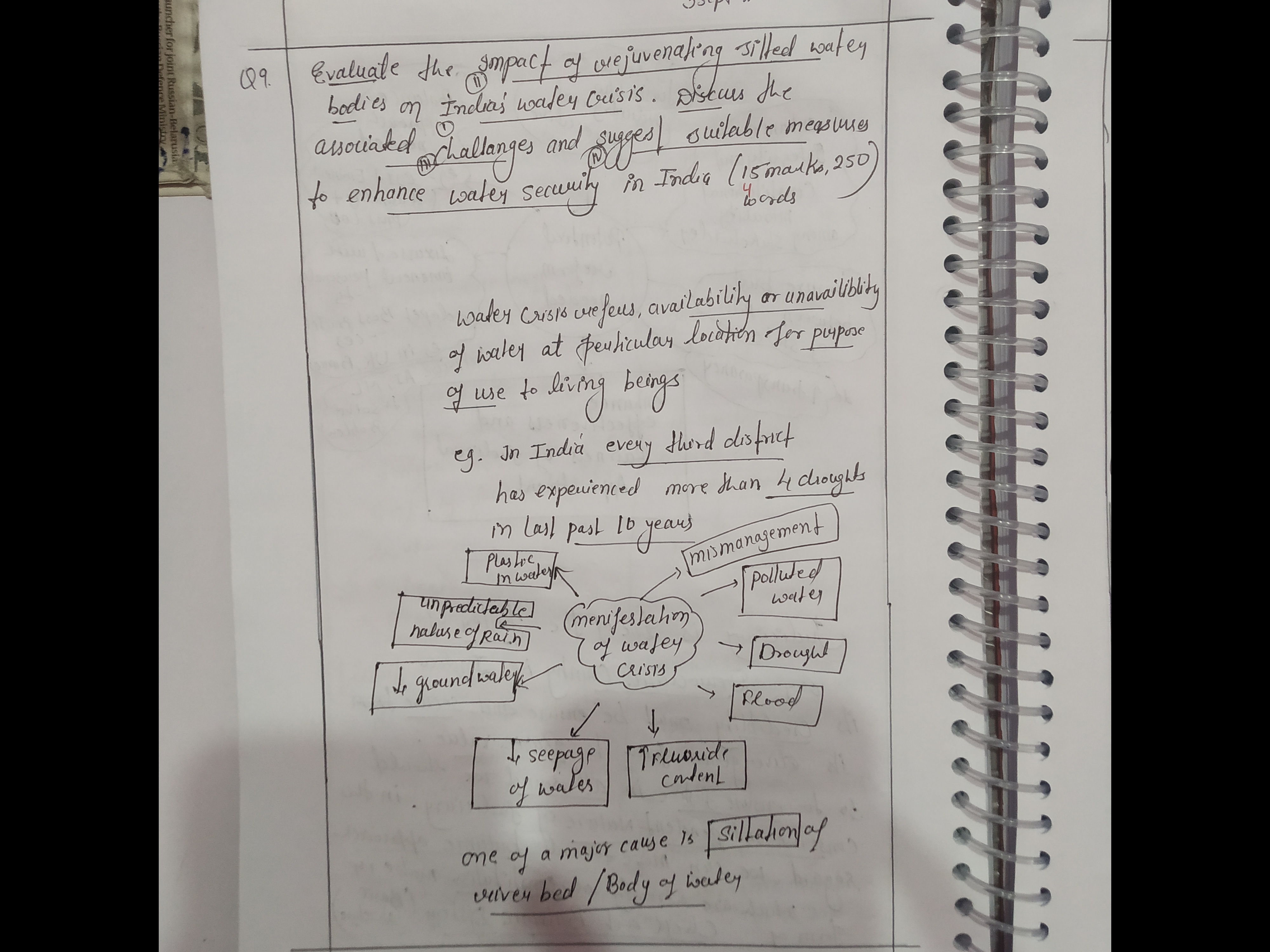 - Evaluate the negative impact of rejuvenating silted water bodies on India’s water crisis.