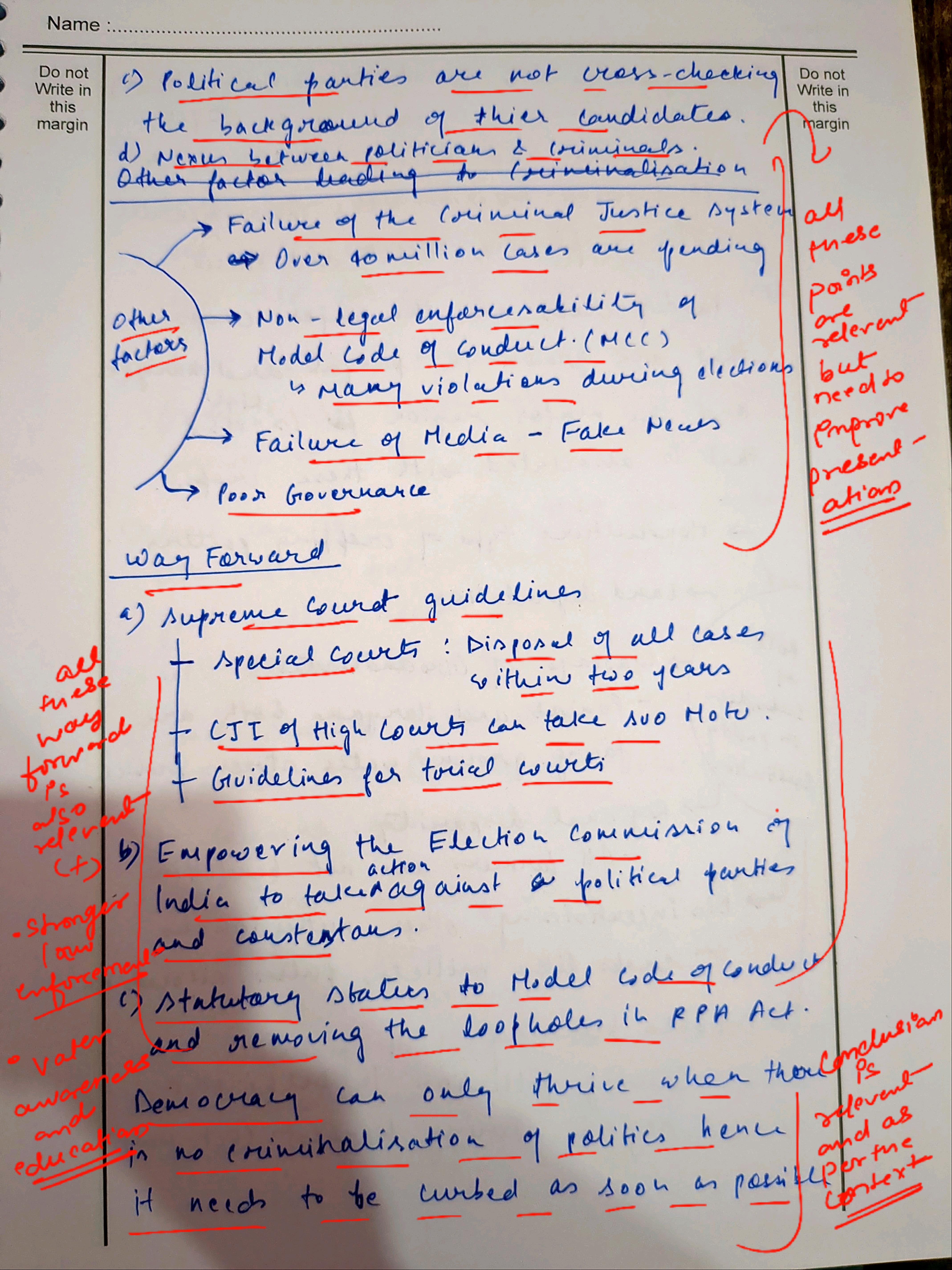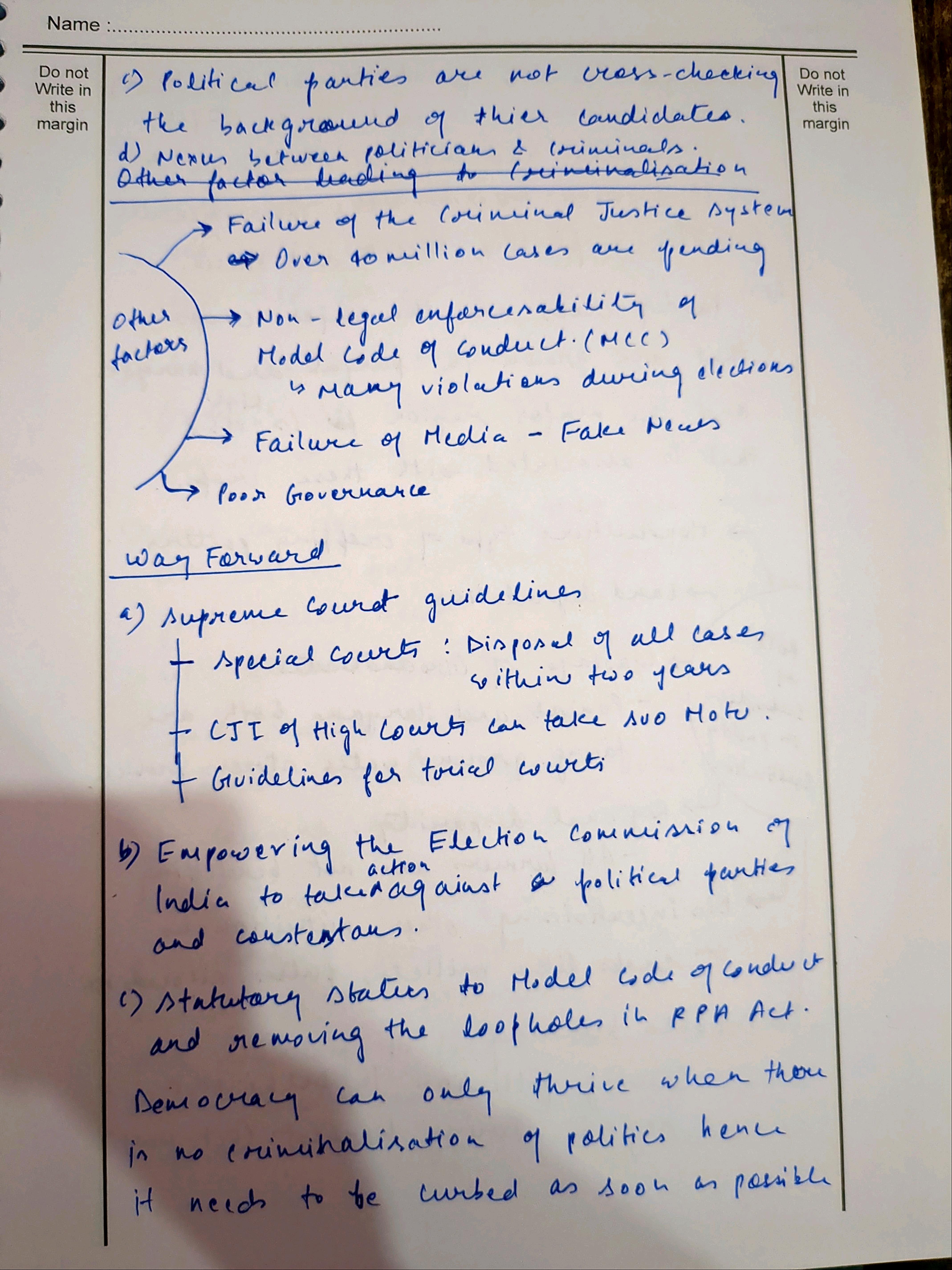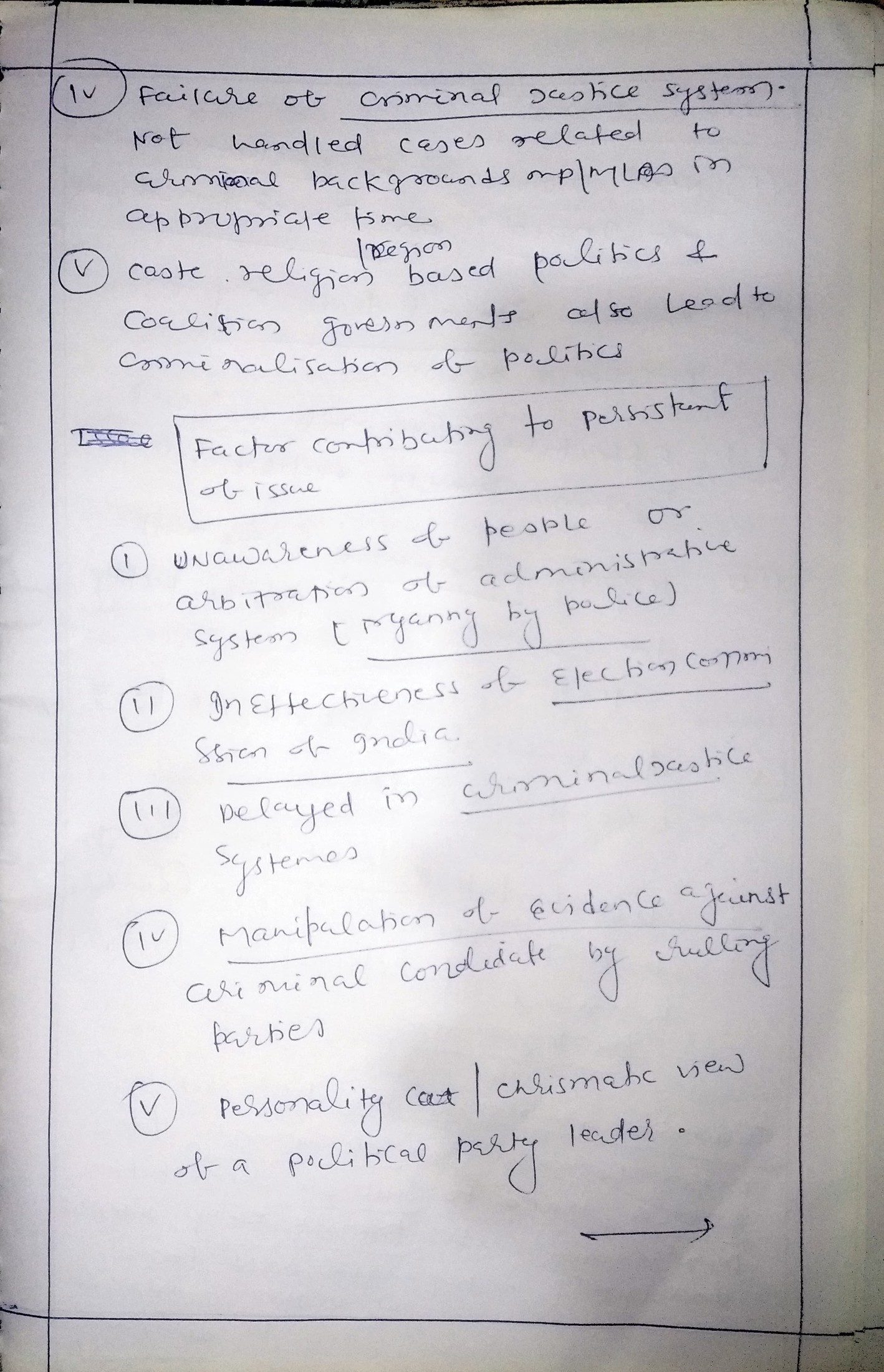 - Discuss various factors like electoral success, voter behaviour, weak law enforcement, and political culture that contribute to this problem.