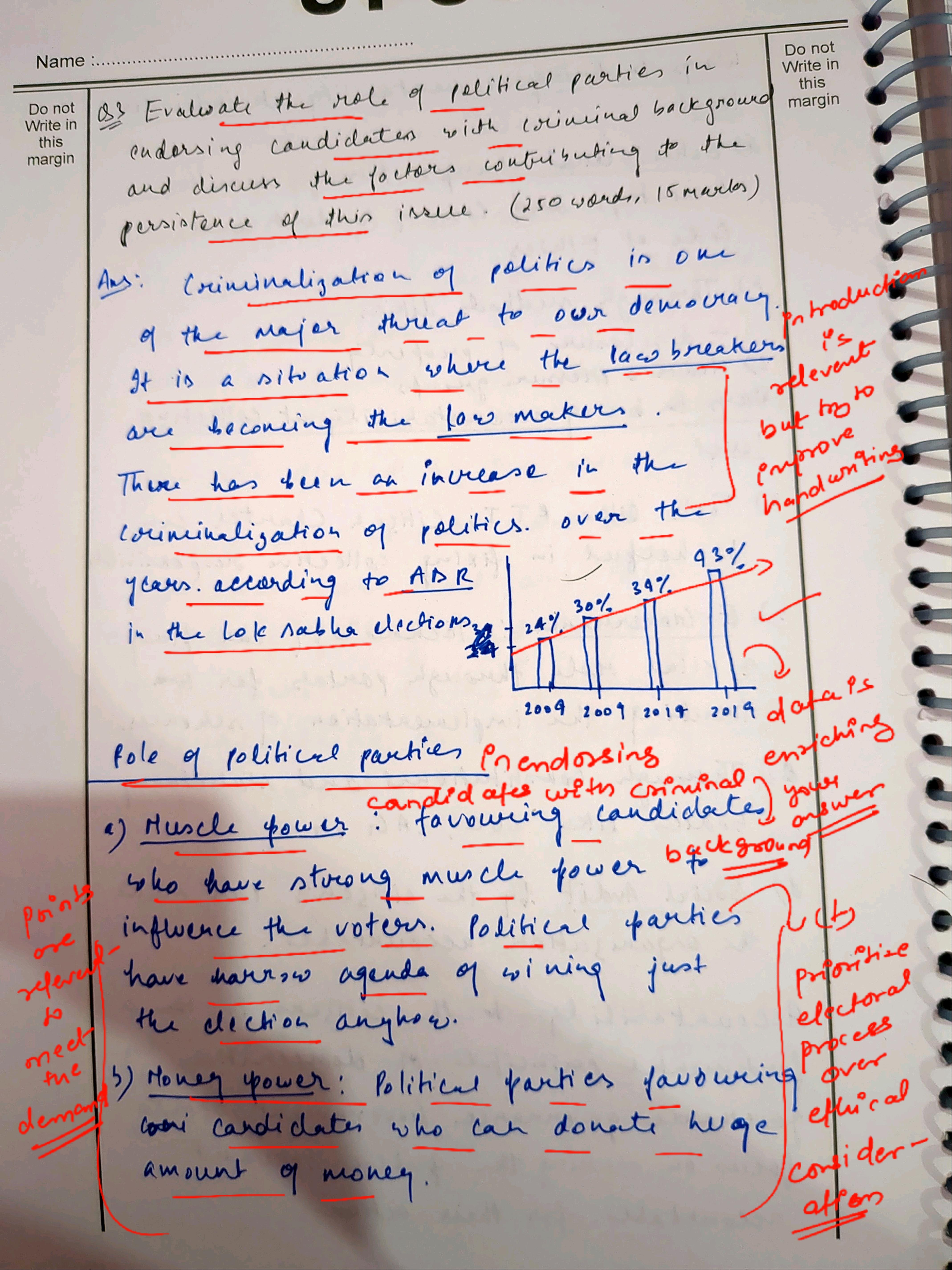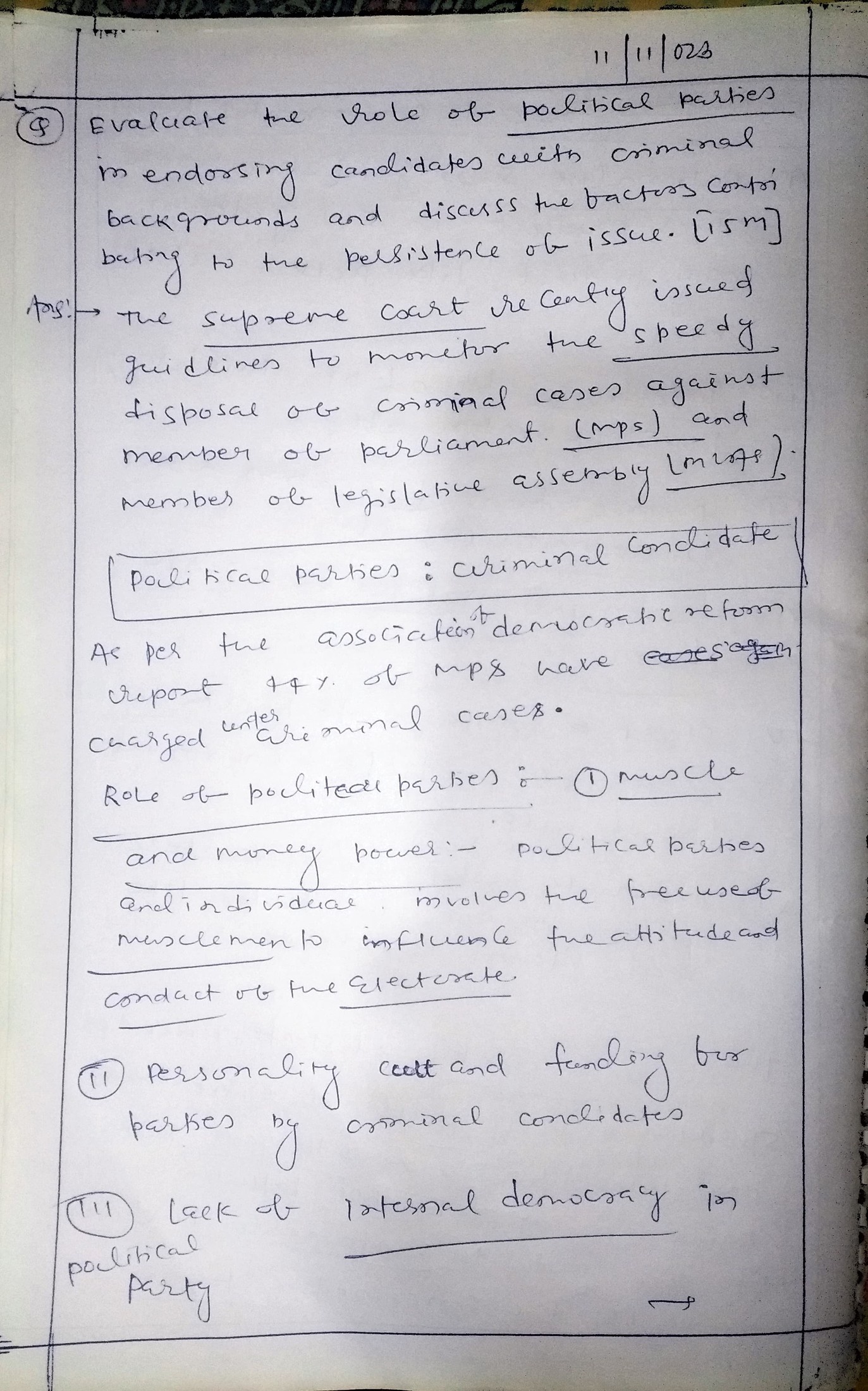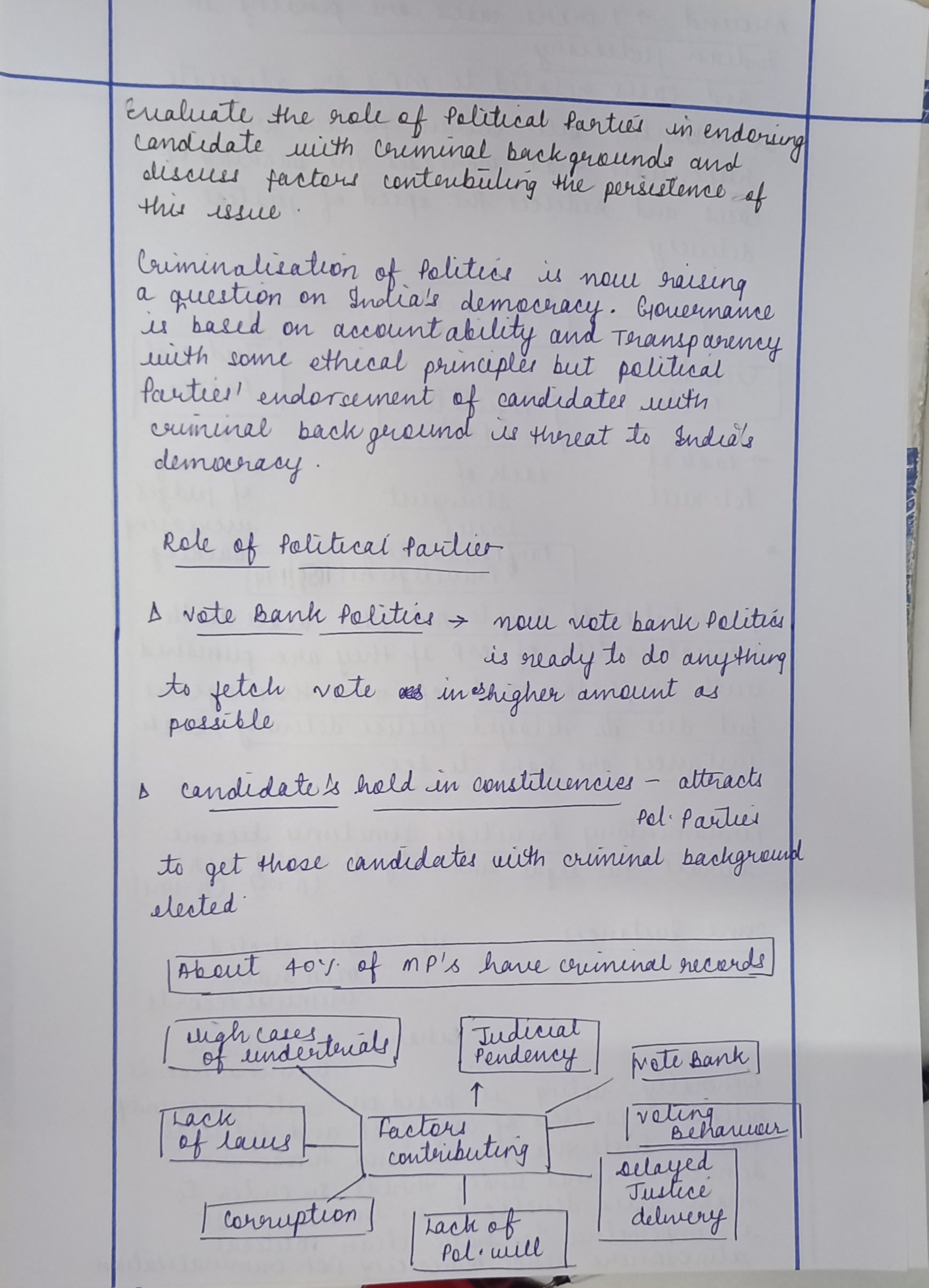 - Political parties often prioritize electoral success over ethical considerations. Candidates with criminal backgrounds are perceived to have a stronghold in their constituencies, often due to their ability to influence voters through money, muscle power, or caste dynamics