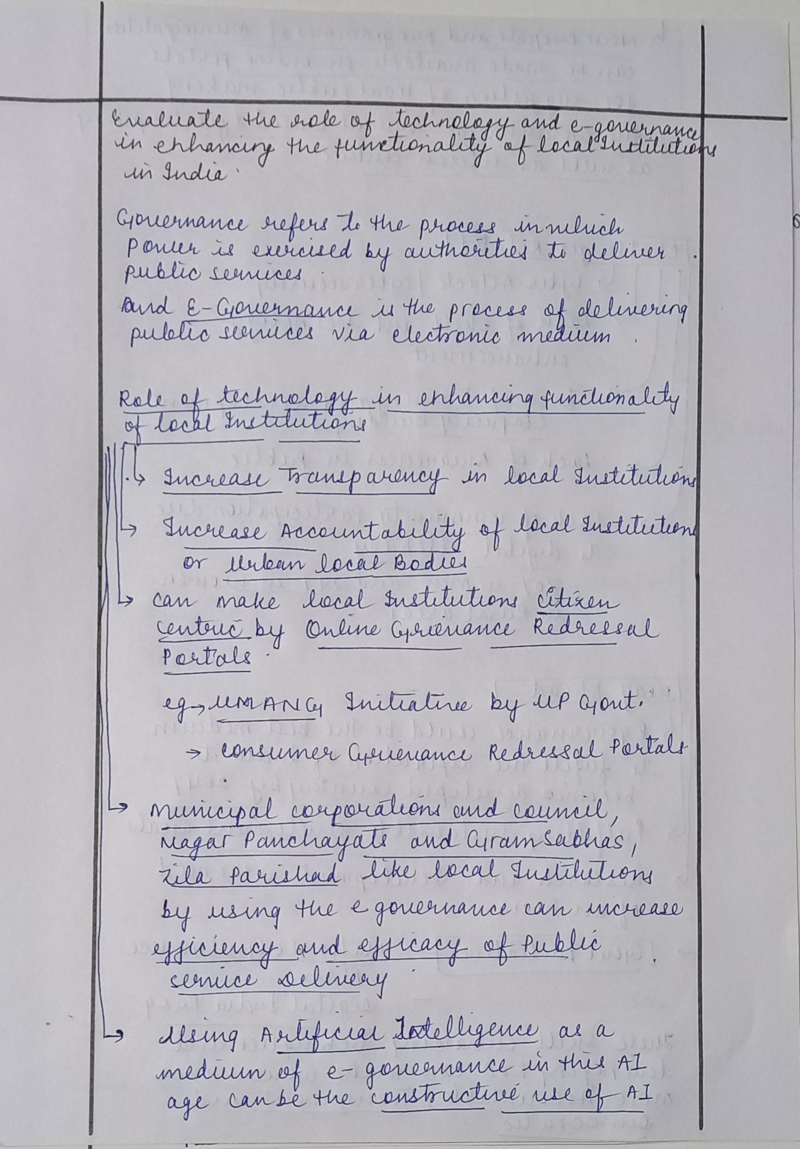 - Write briefly about ULBs and the role of technology and e-governance in enhancing the functionality of local institutions.