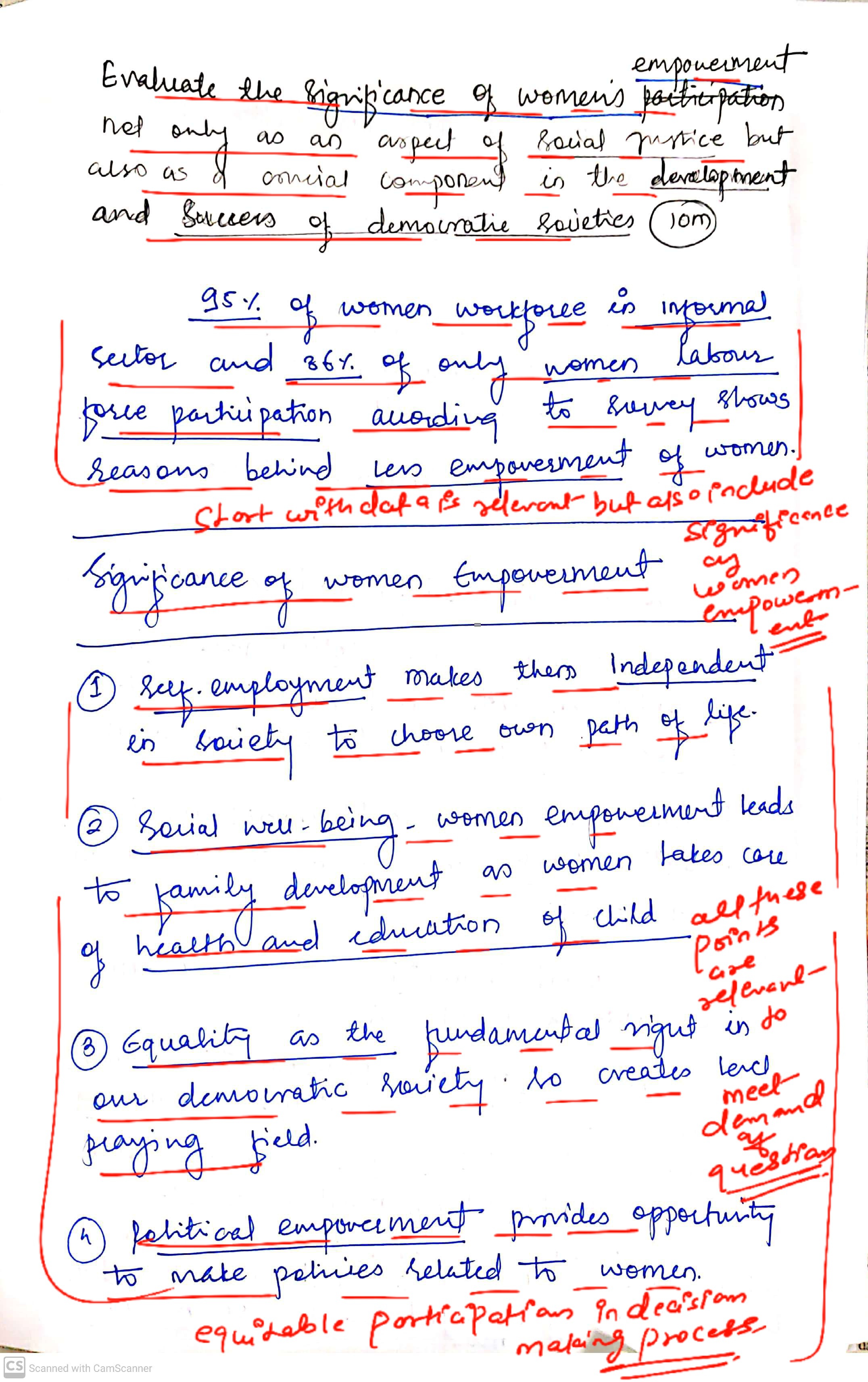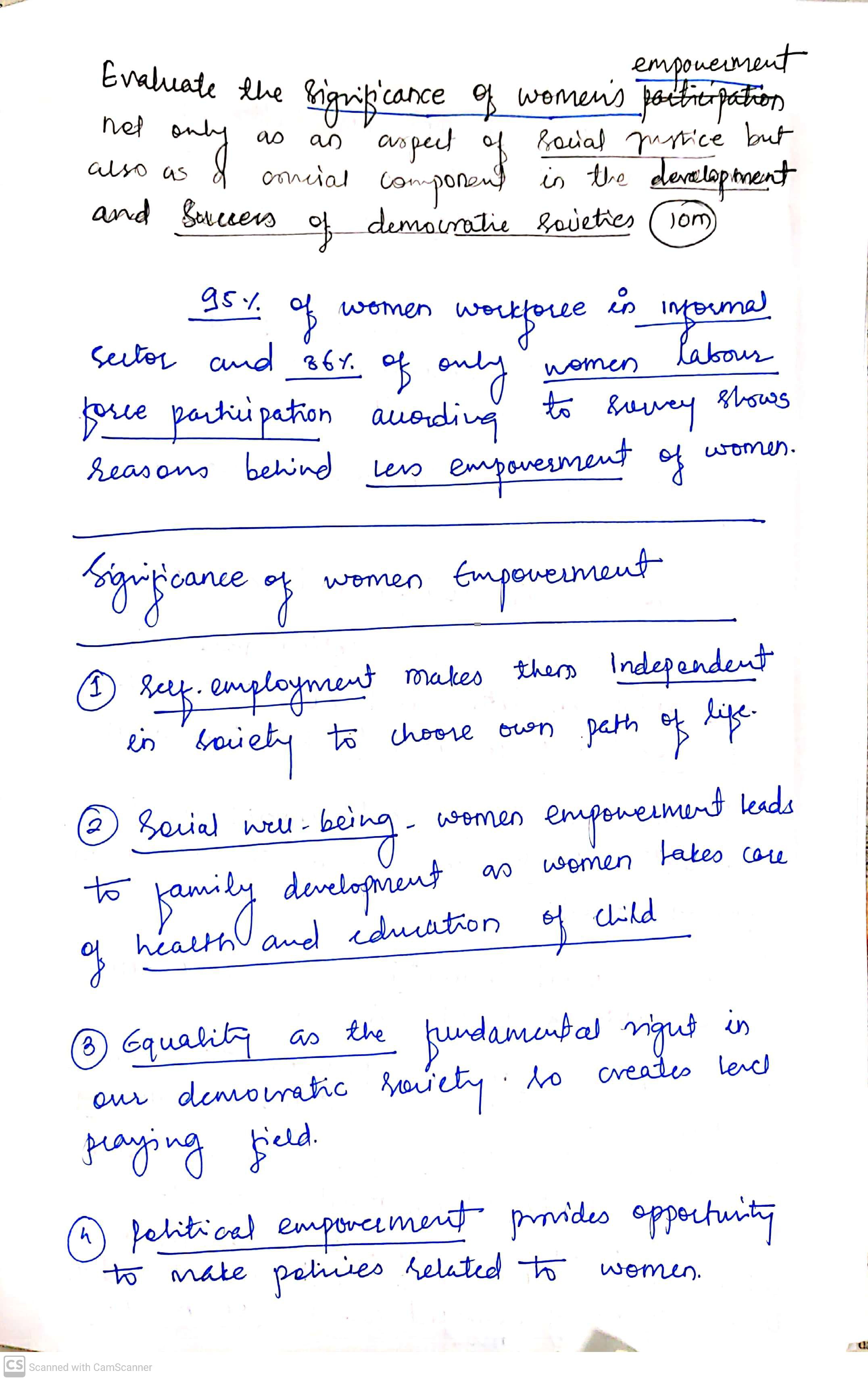 - Outline the importance of economic independence for women in contributing to society and democracy.