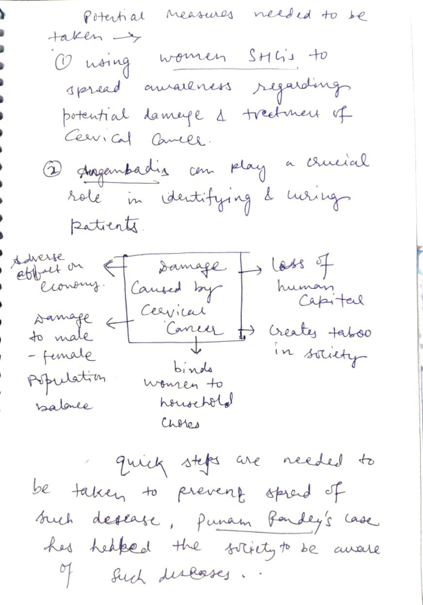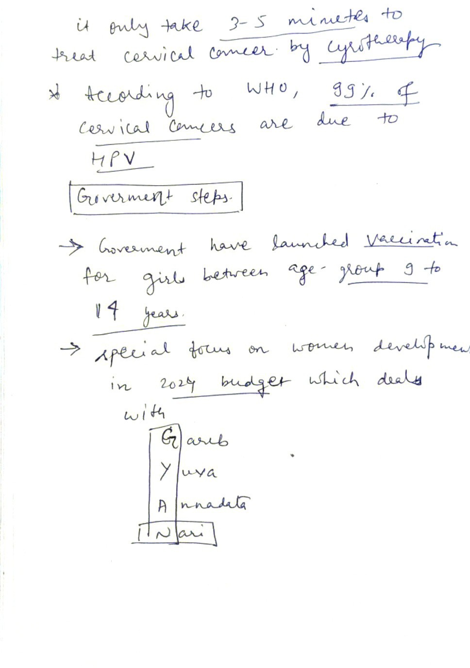 - Prevention through Vaccination: The HPV vaccine is crucial in preventing cervical cancer. India should aim to vaccinate 90% of girls by the age of 15, offering long-term protection against the primary cause of cervical cancer.